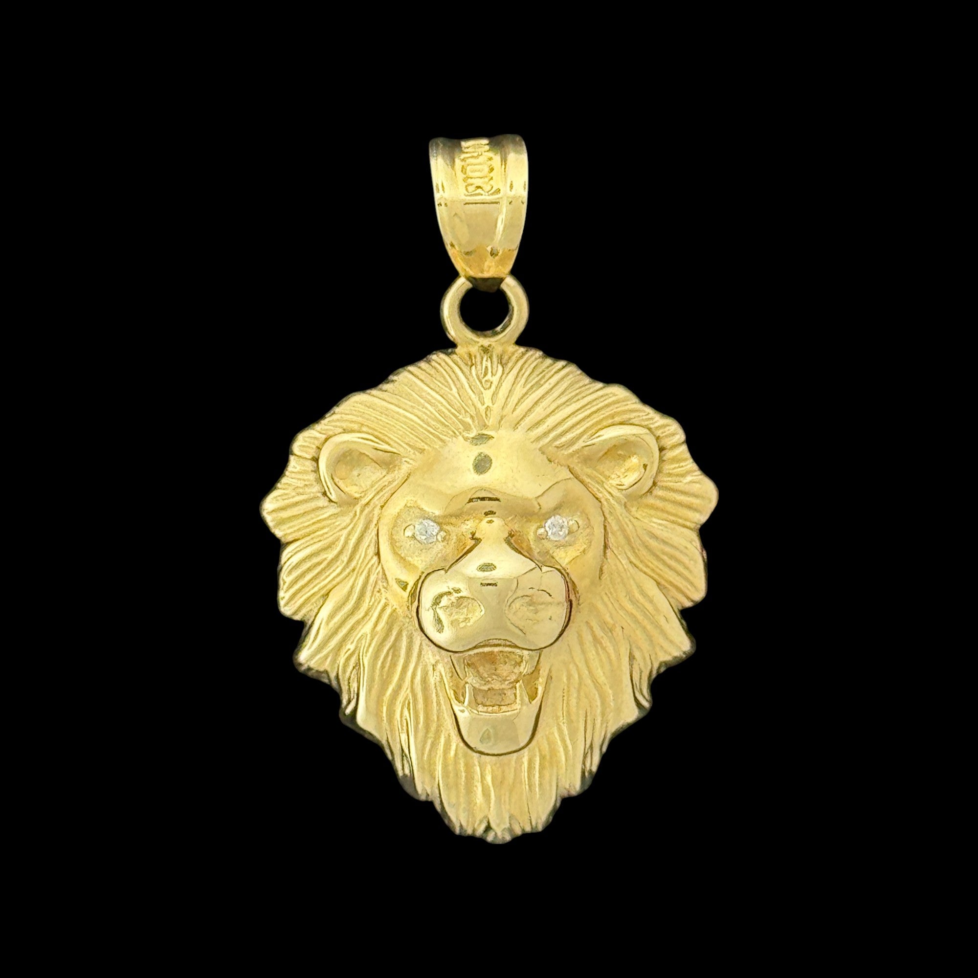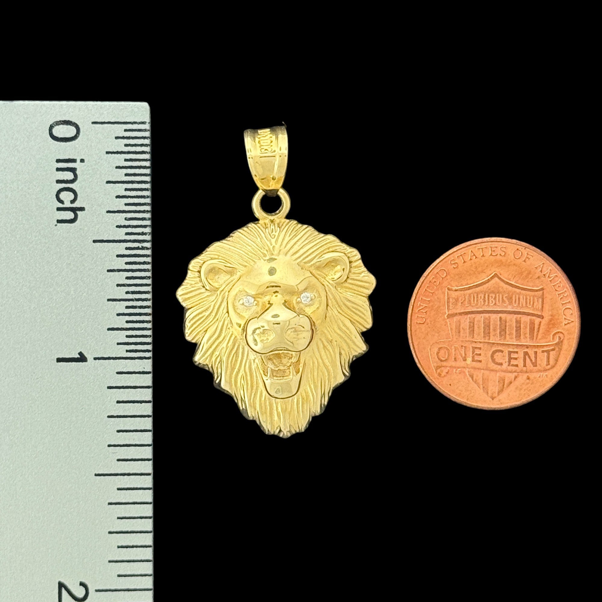 10KT Yellow Gold Lion with Stone Eyes Pendant, Brand New
