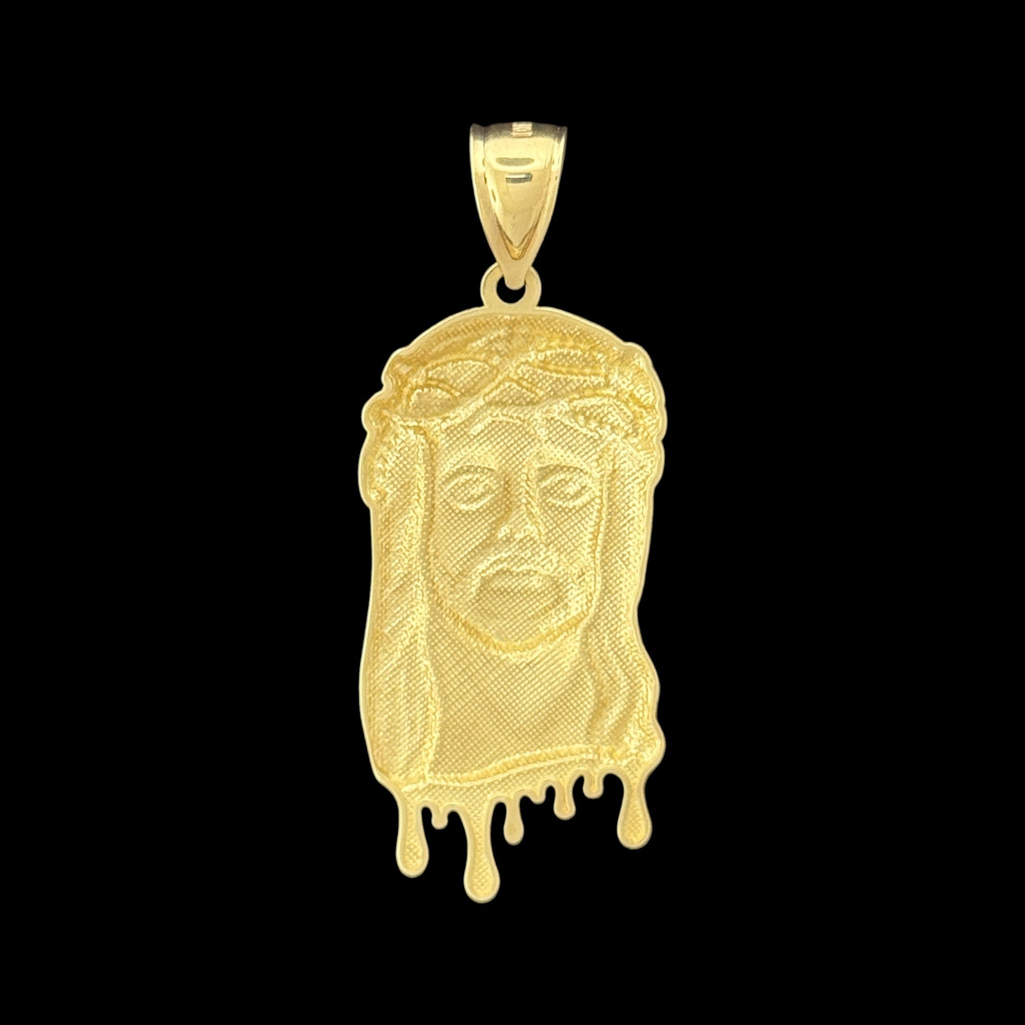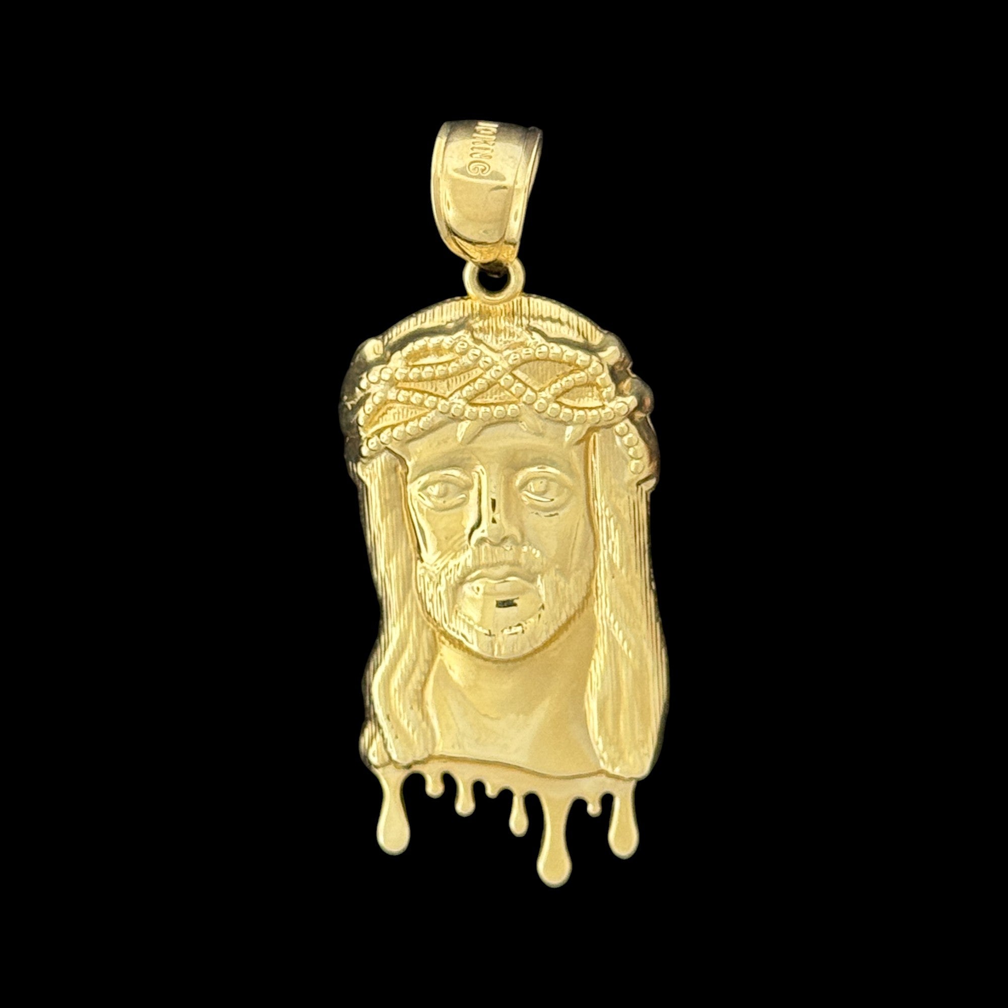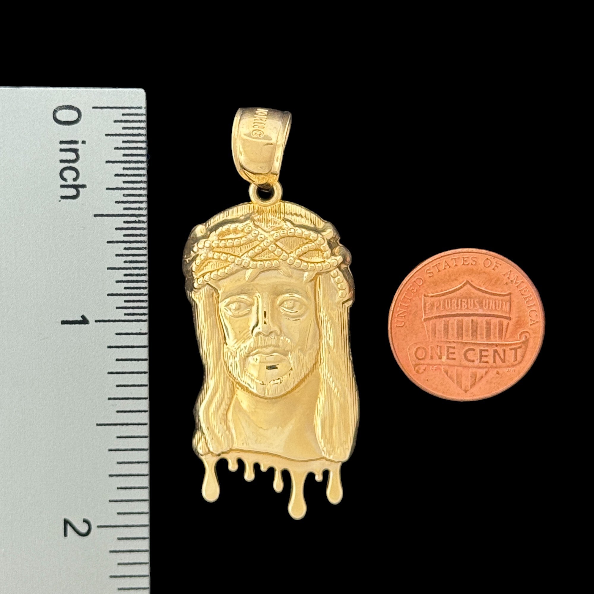 10KT Yellow Gold Dripping Jesus Face Pendant, Brand New