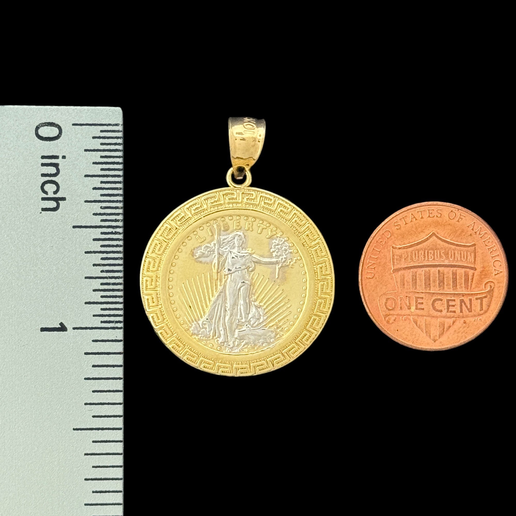 10KT Yellow Gold Liberty Coin Pendant, Brand New