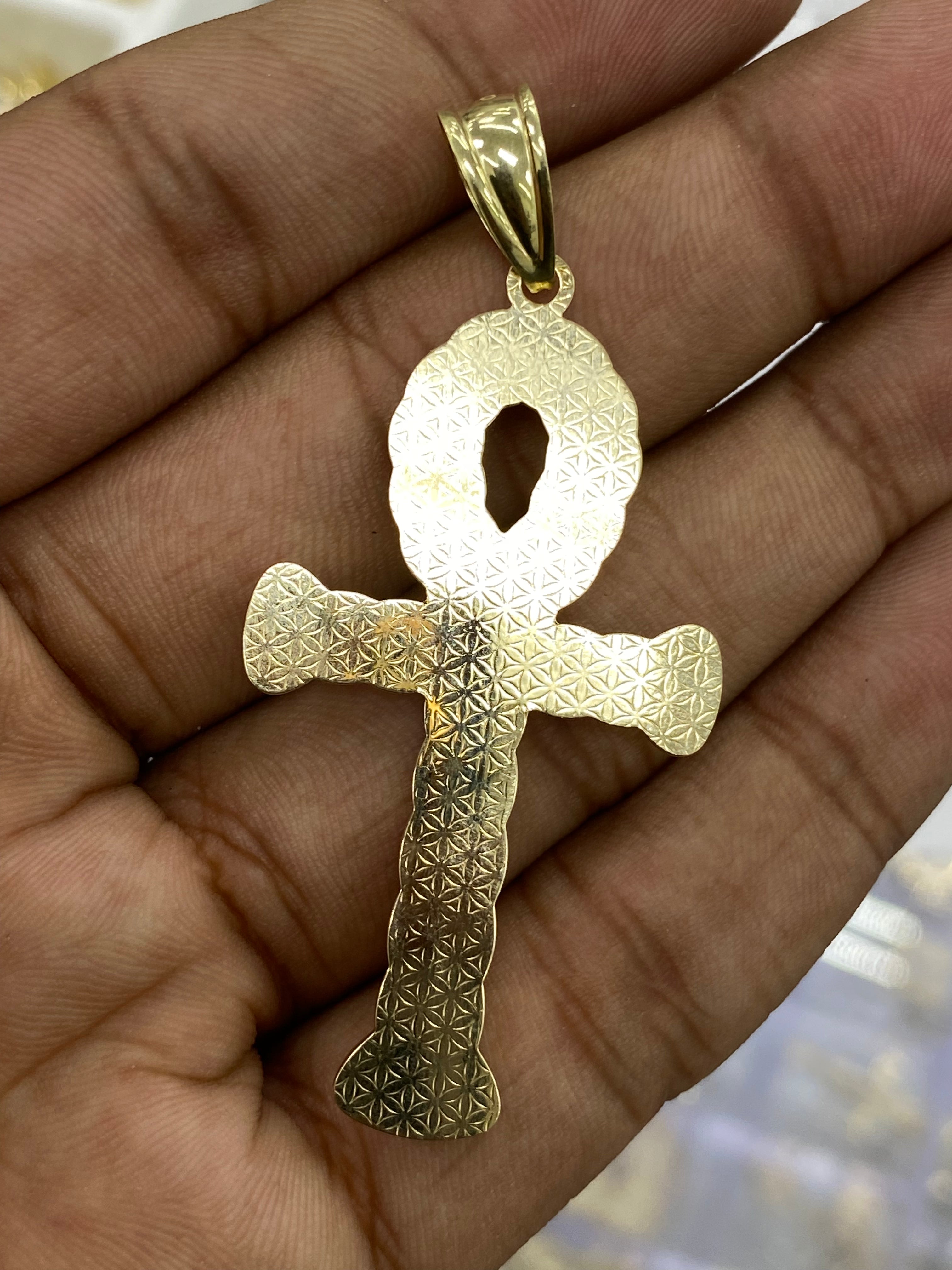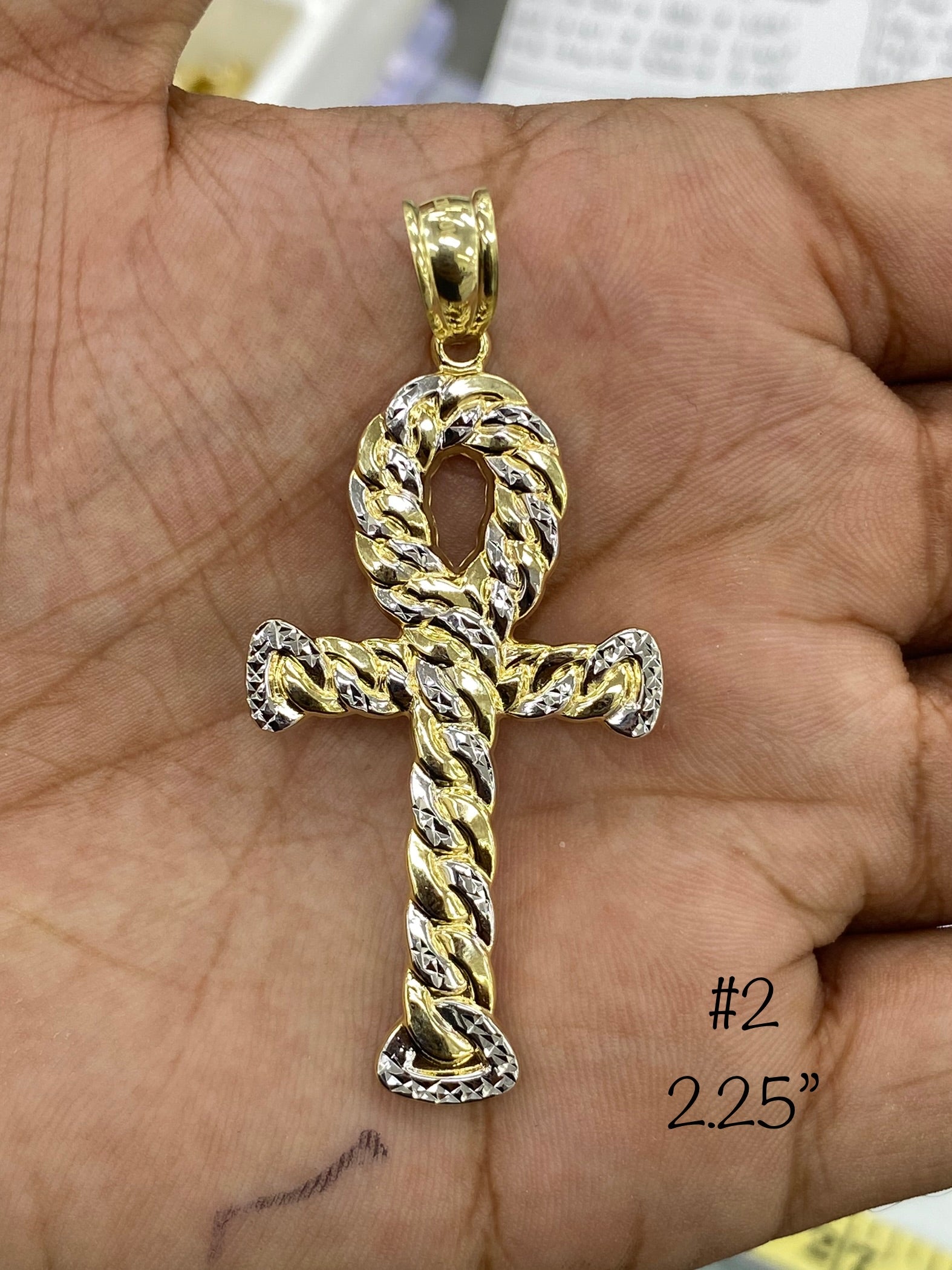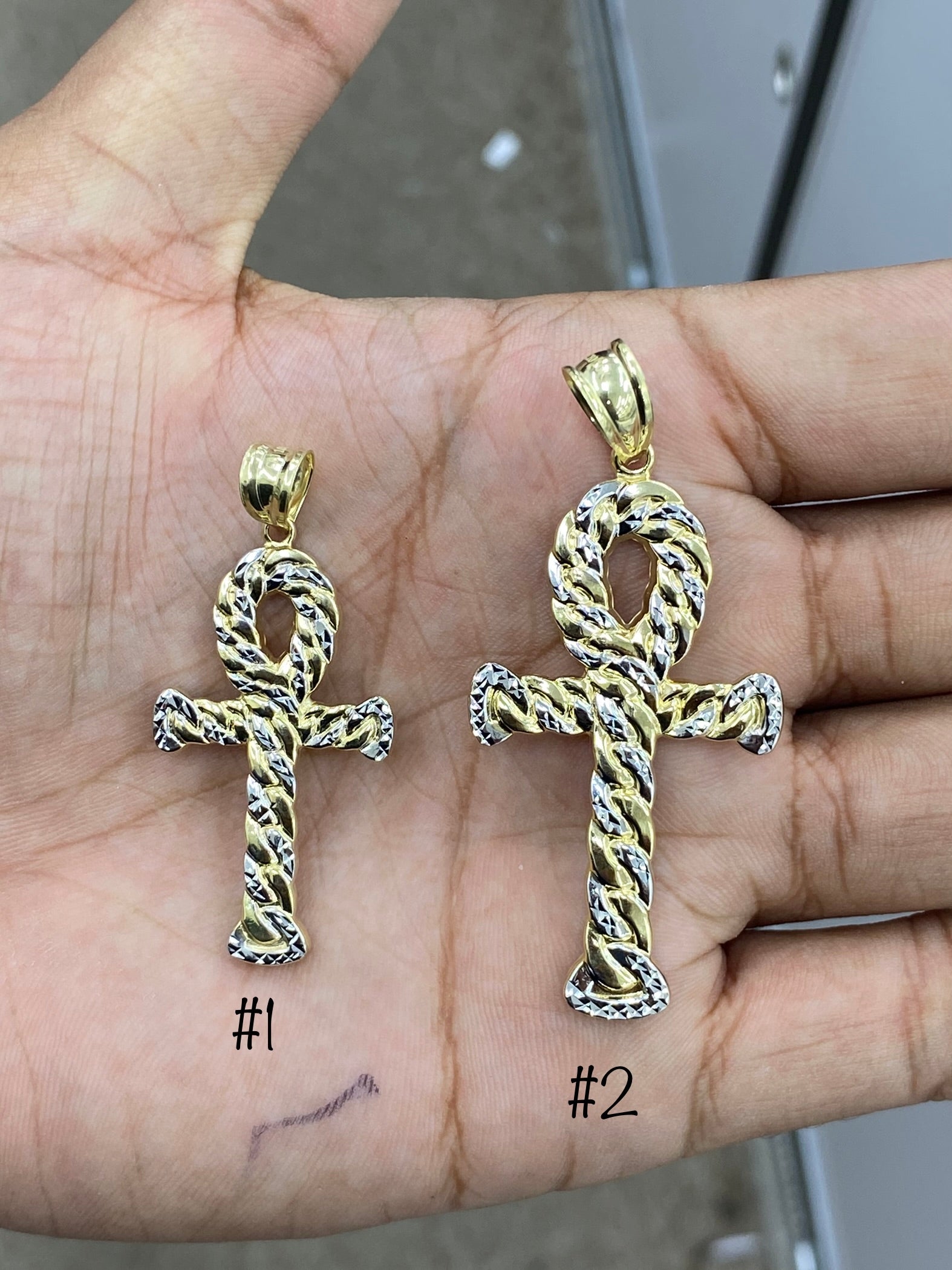 10KT 2-Tone Pave Ankh Cross Pendant (2 Sizes)
