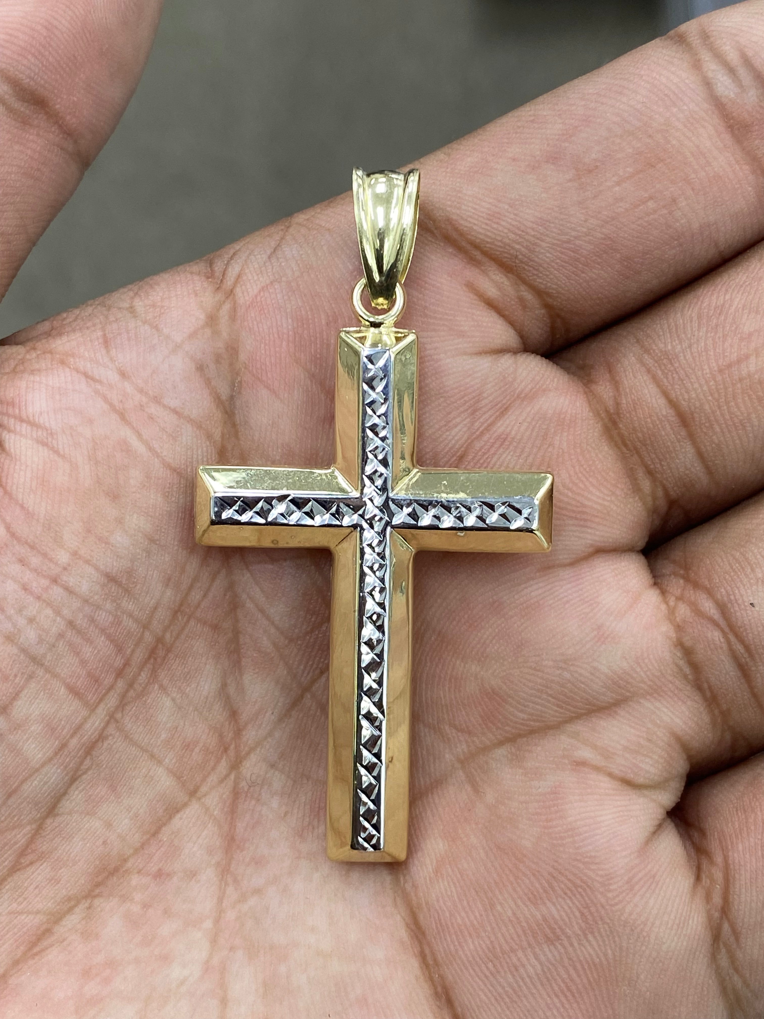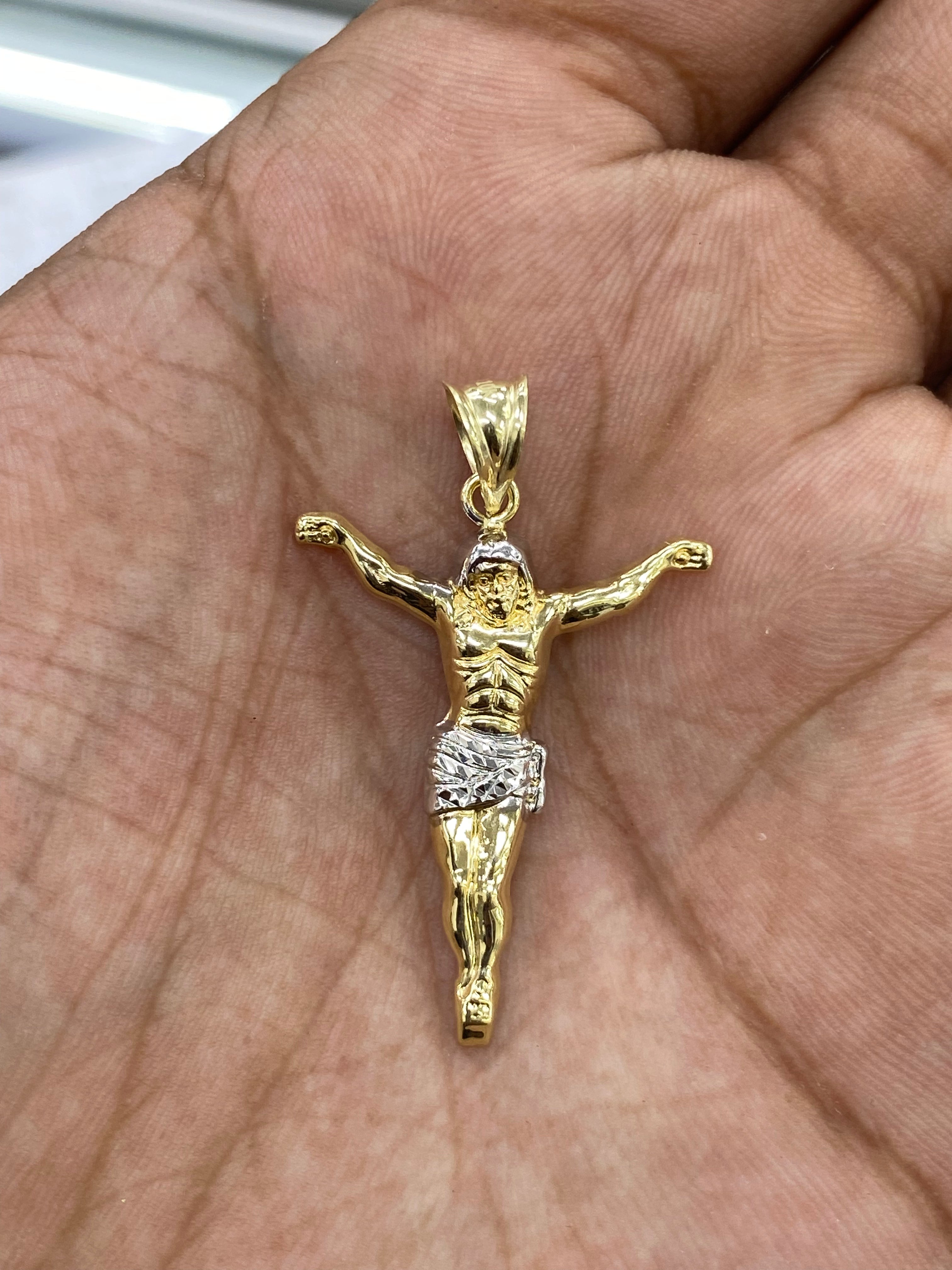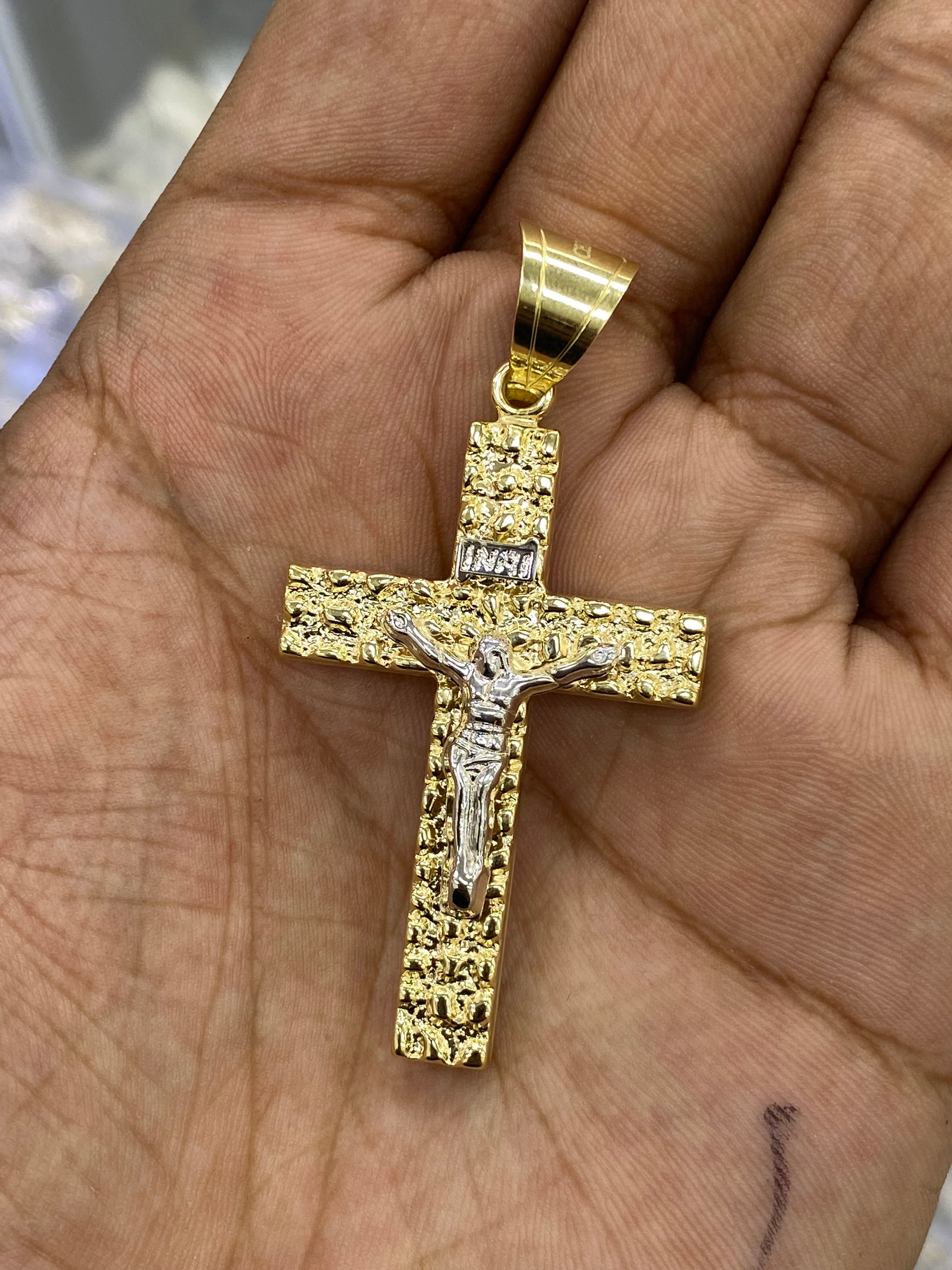 10KT 2-Tone Pave Nugget Crucifix Cross Pendant