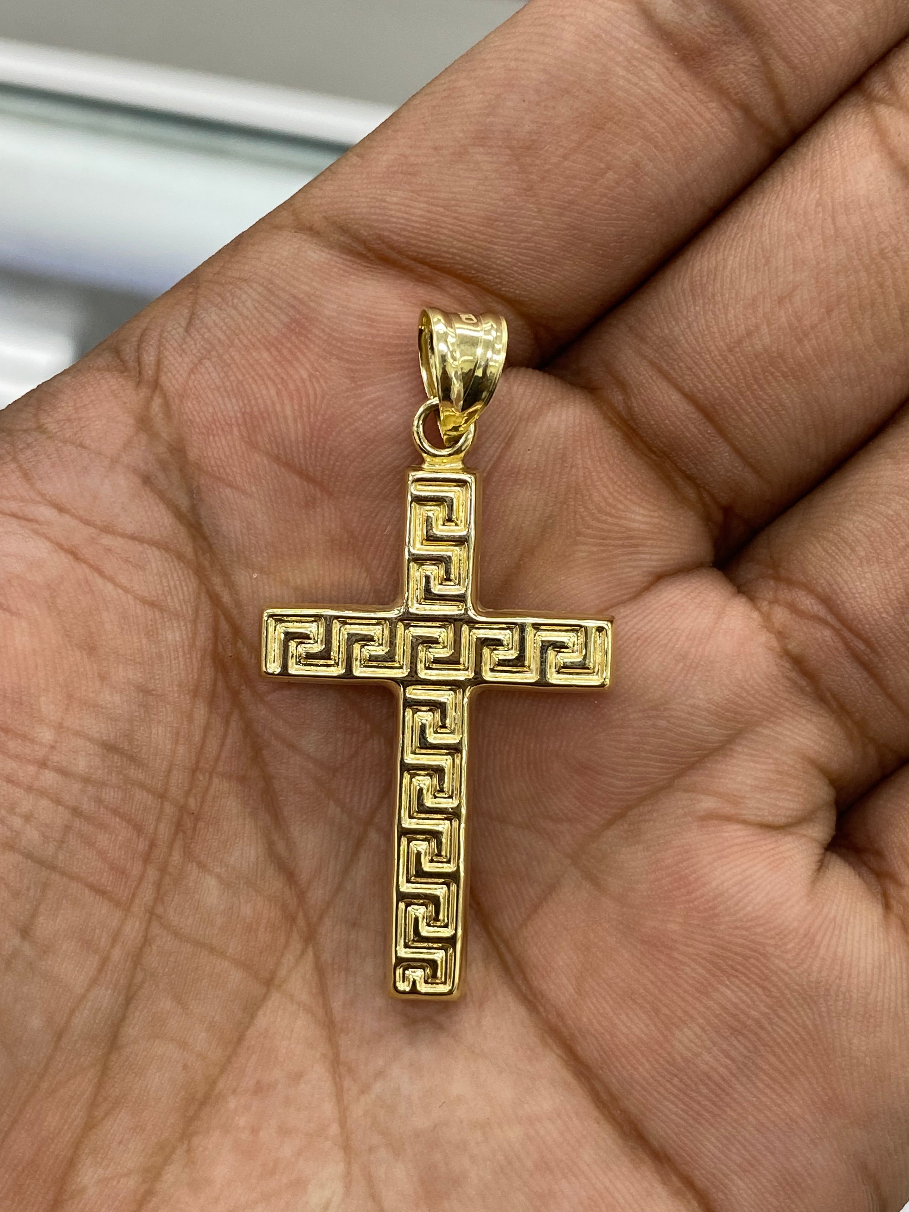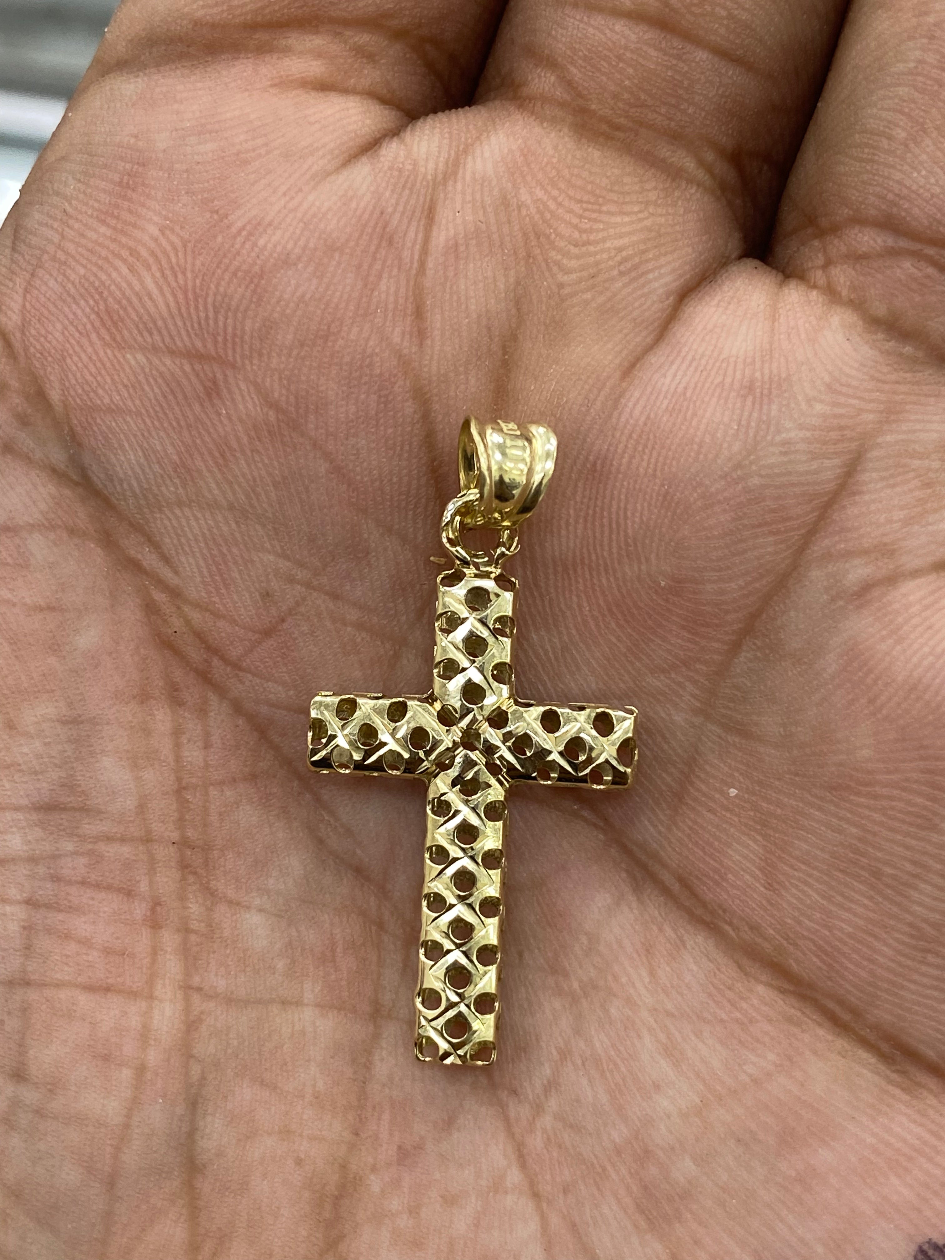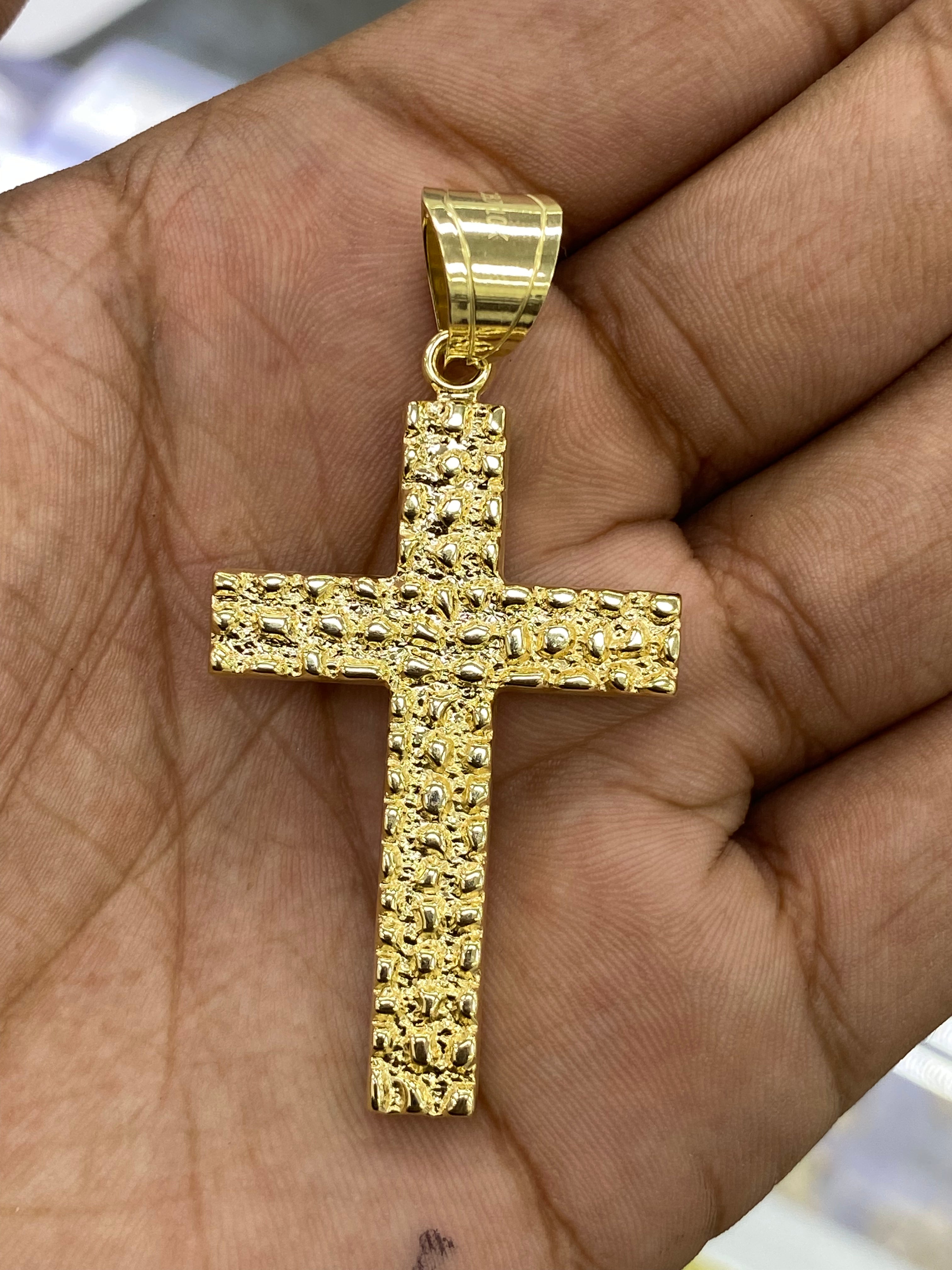10KT 2-Tone Pave Nugget Crucifix Cross Pendant