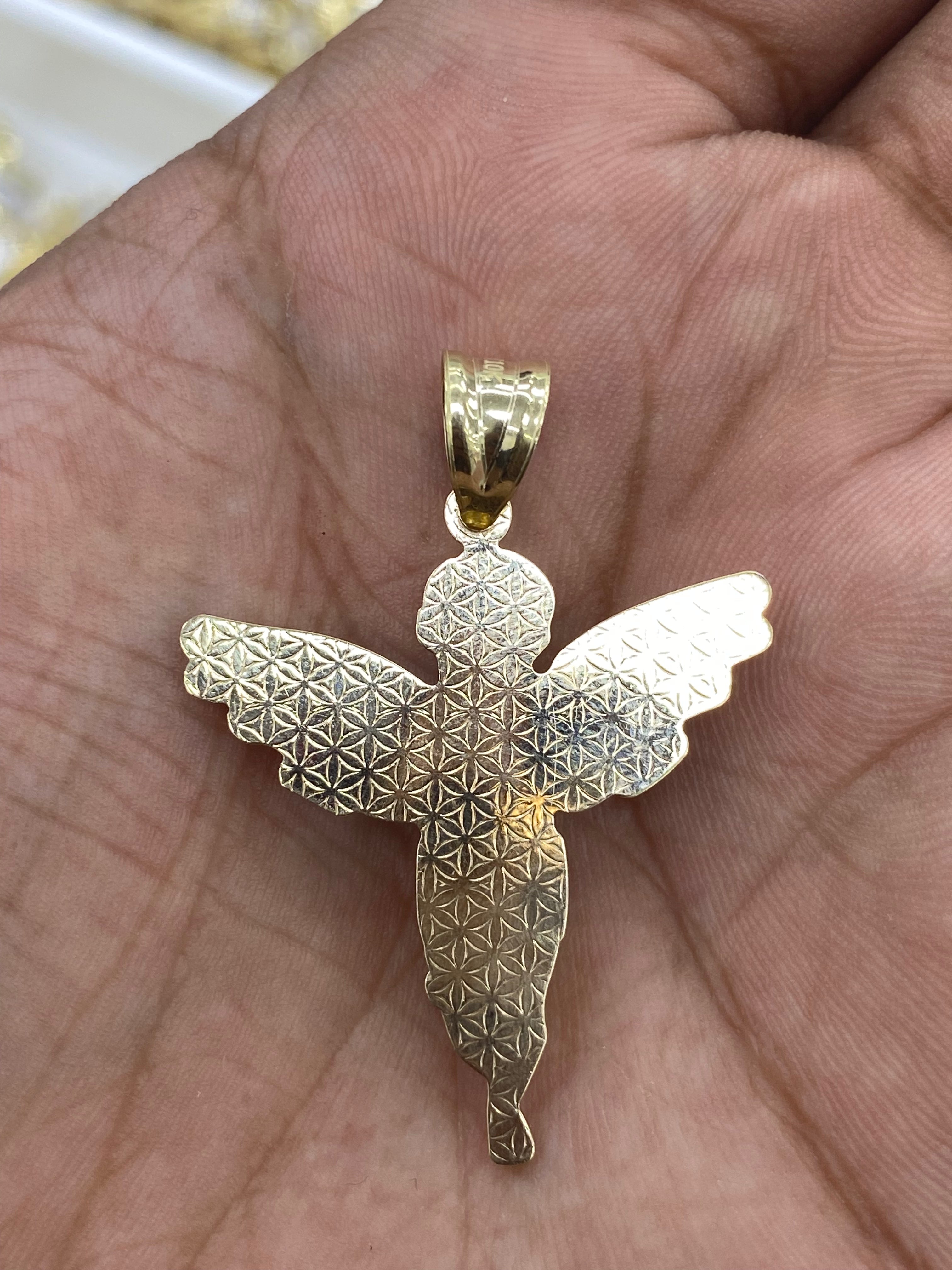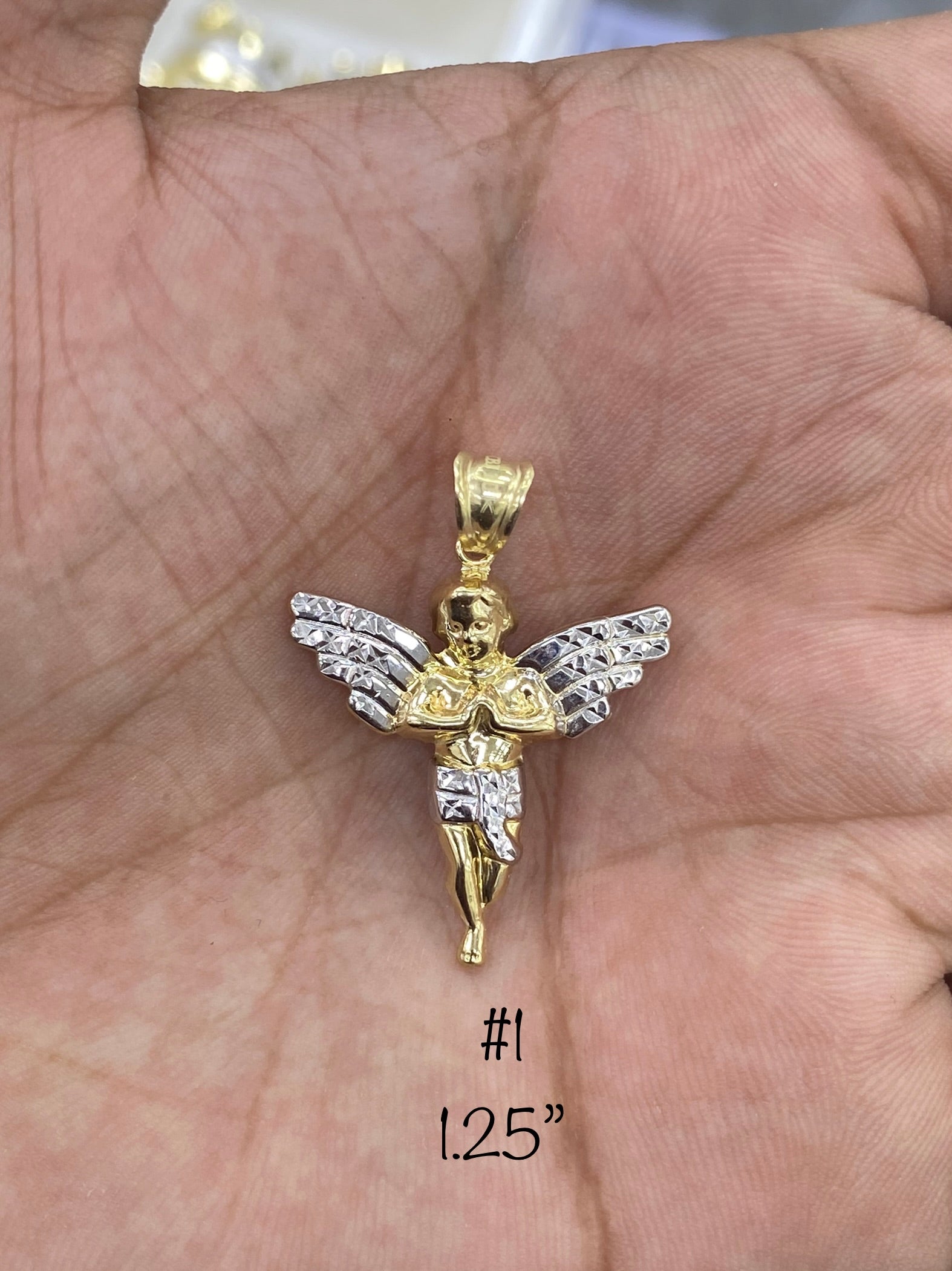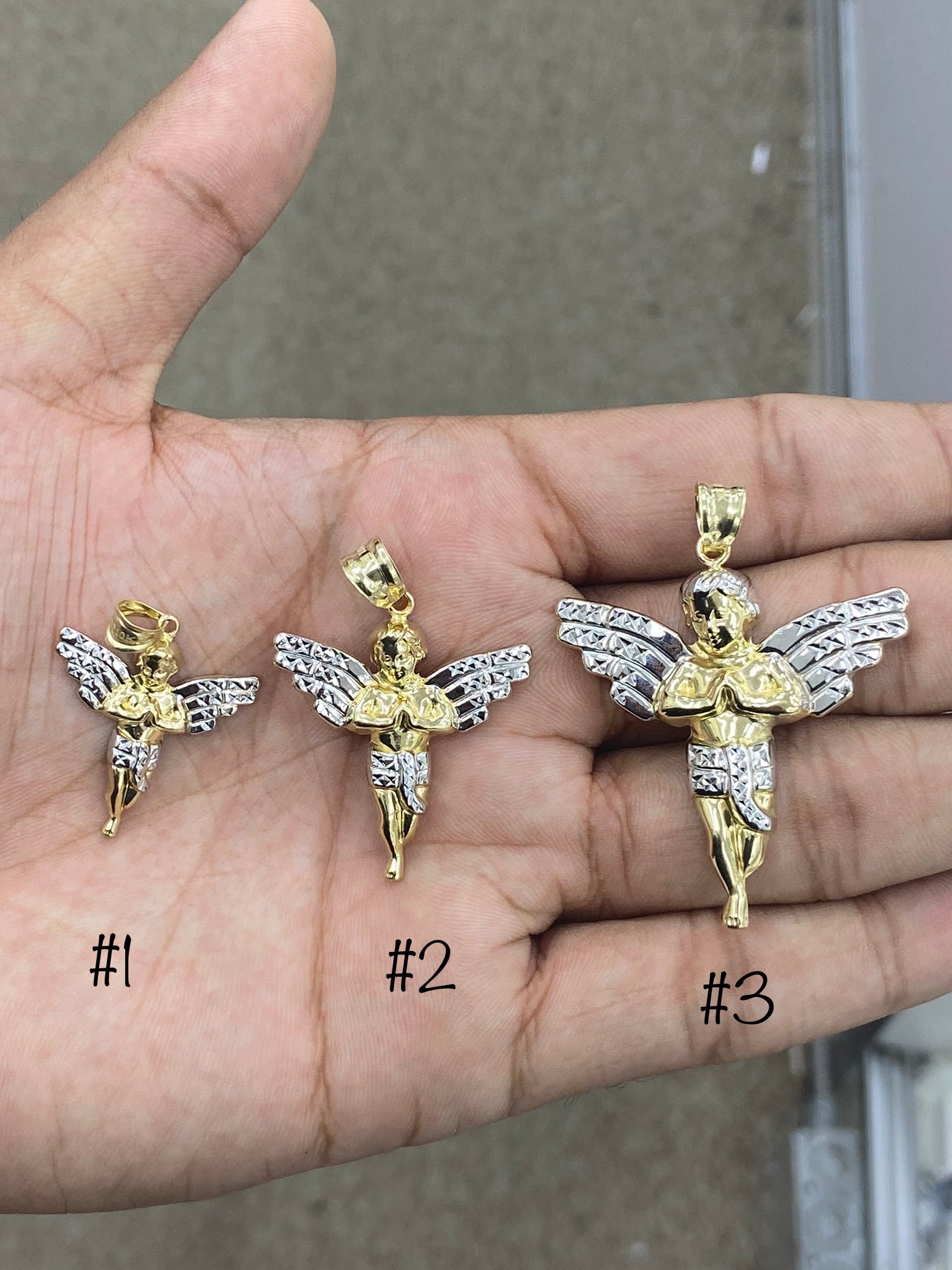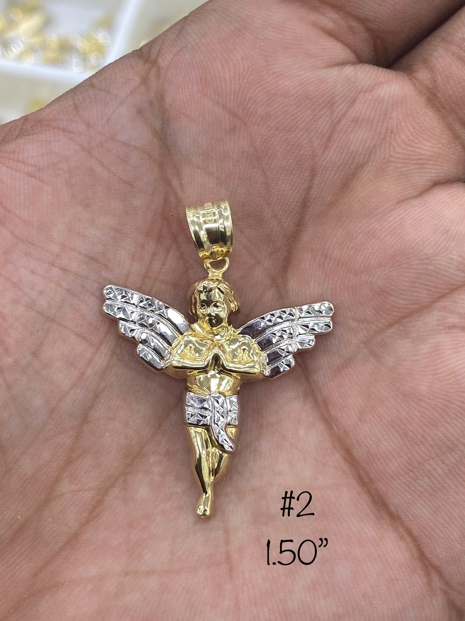 10KT 2-Tone Pave Angel Pendant ( 3 Sizes)