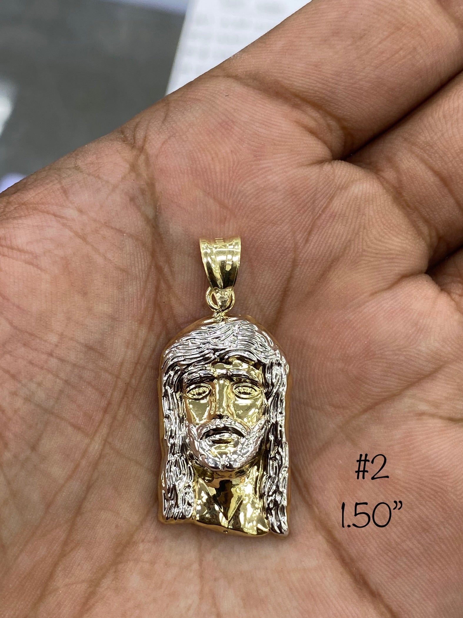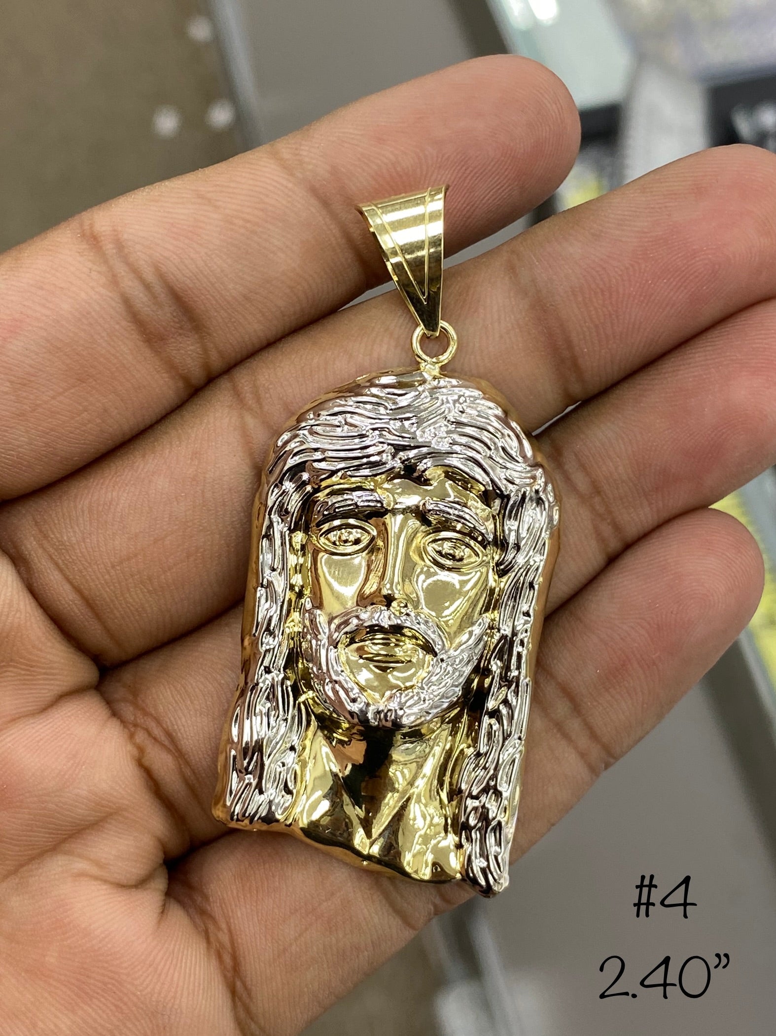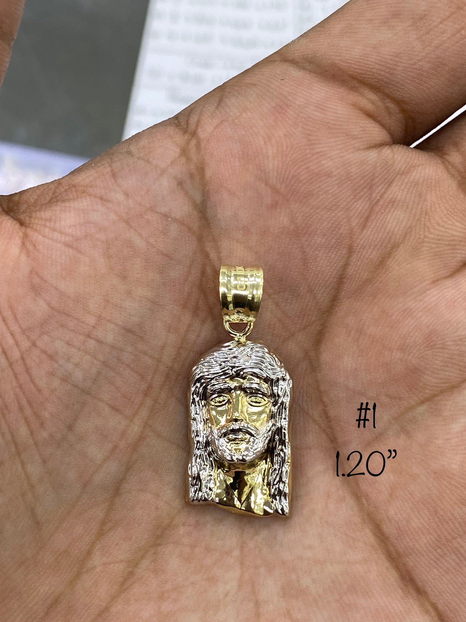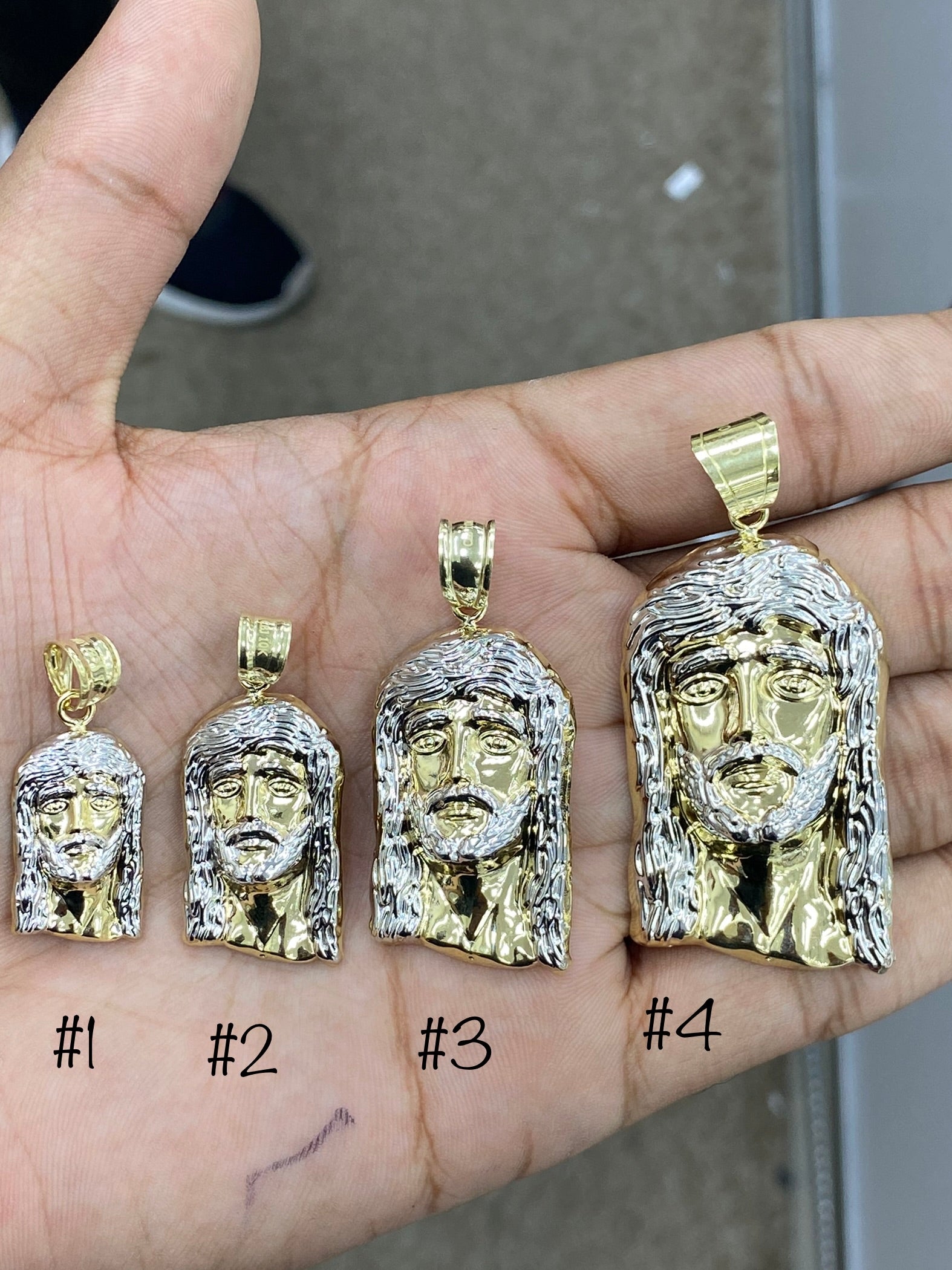 10KT 2-Tone Pave Jesus Head Pendant (4 Sizes) (Best Seller)