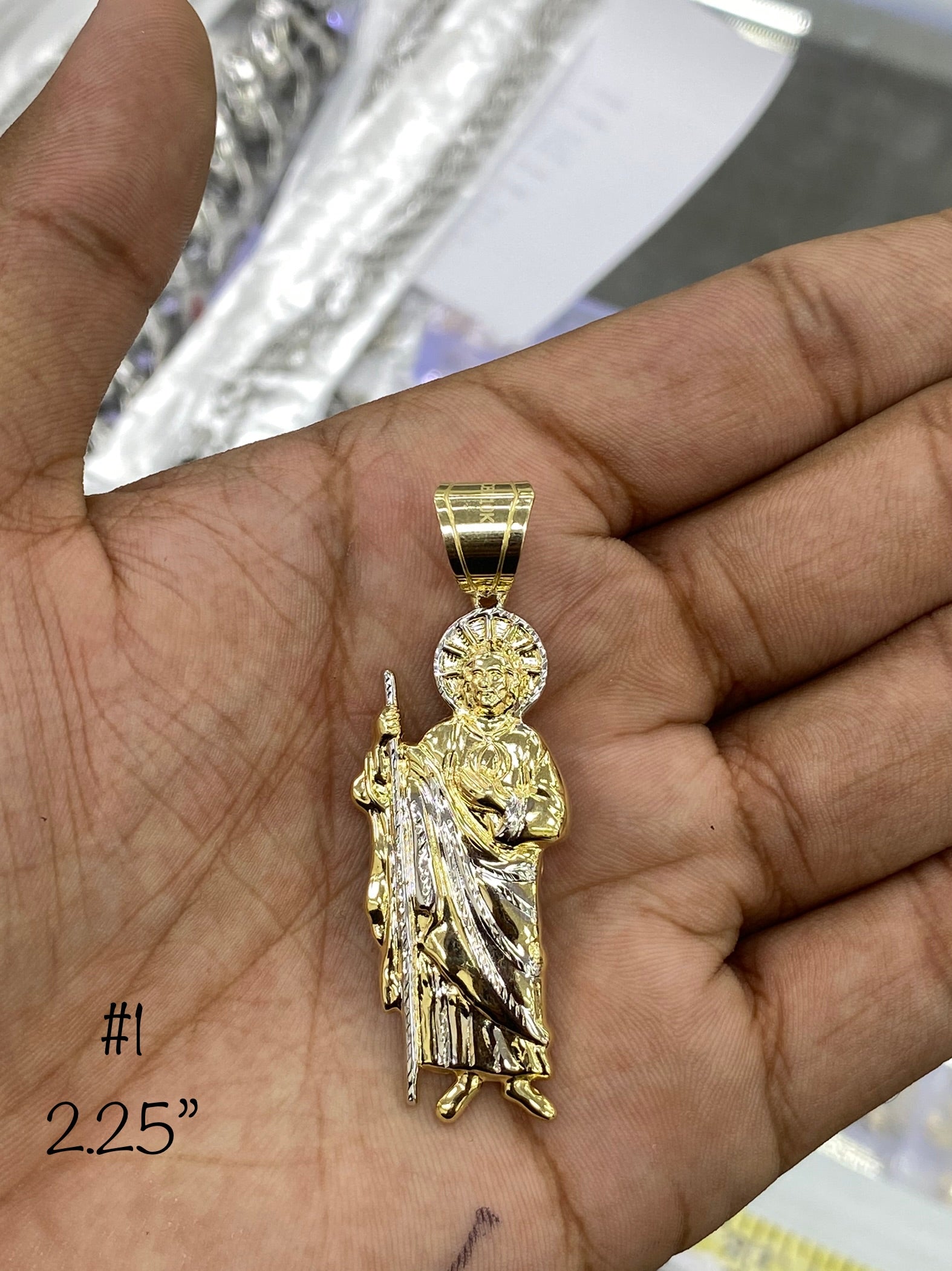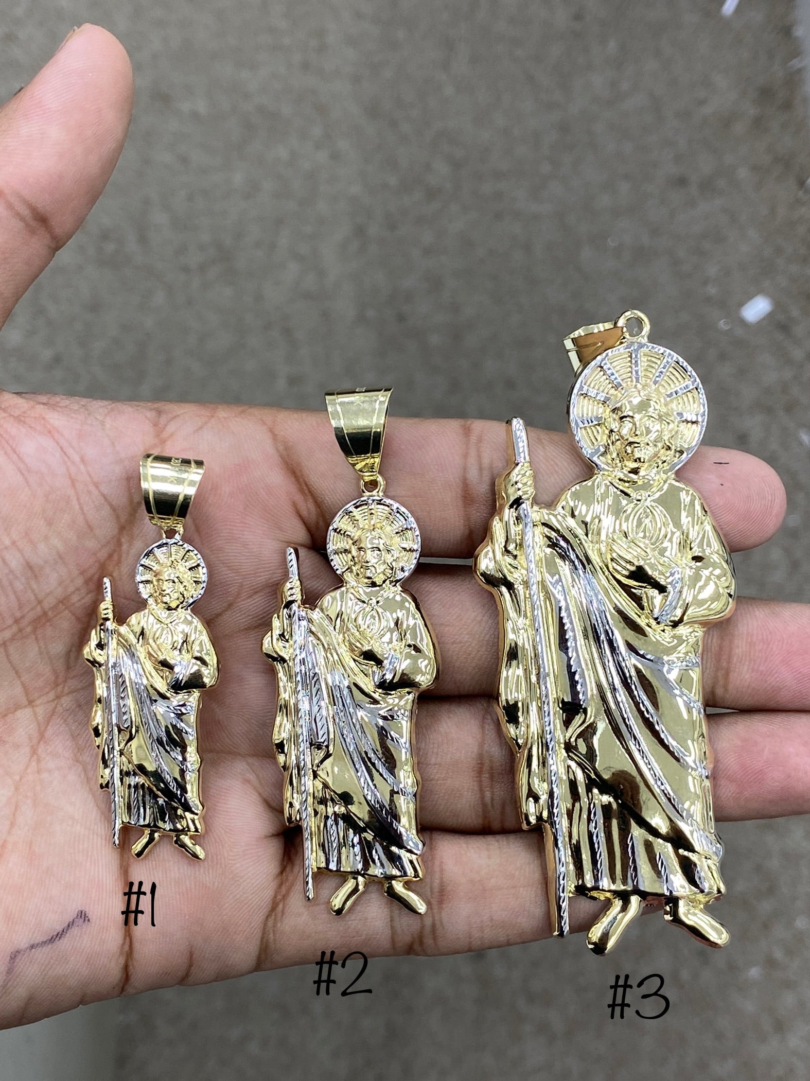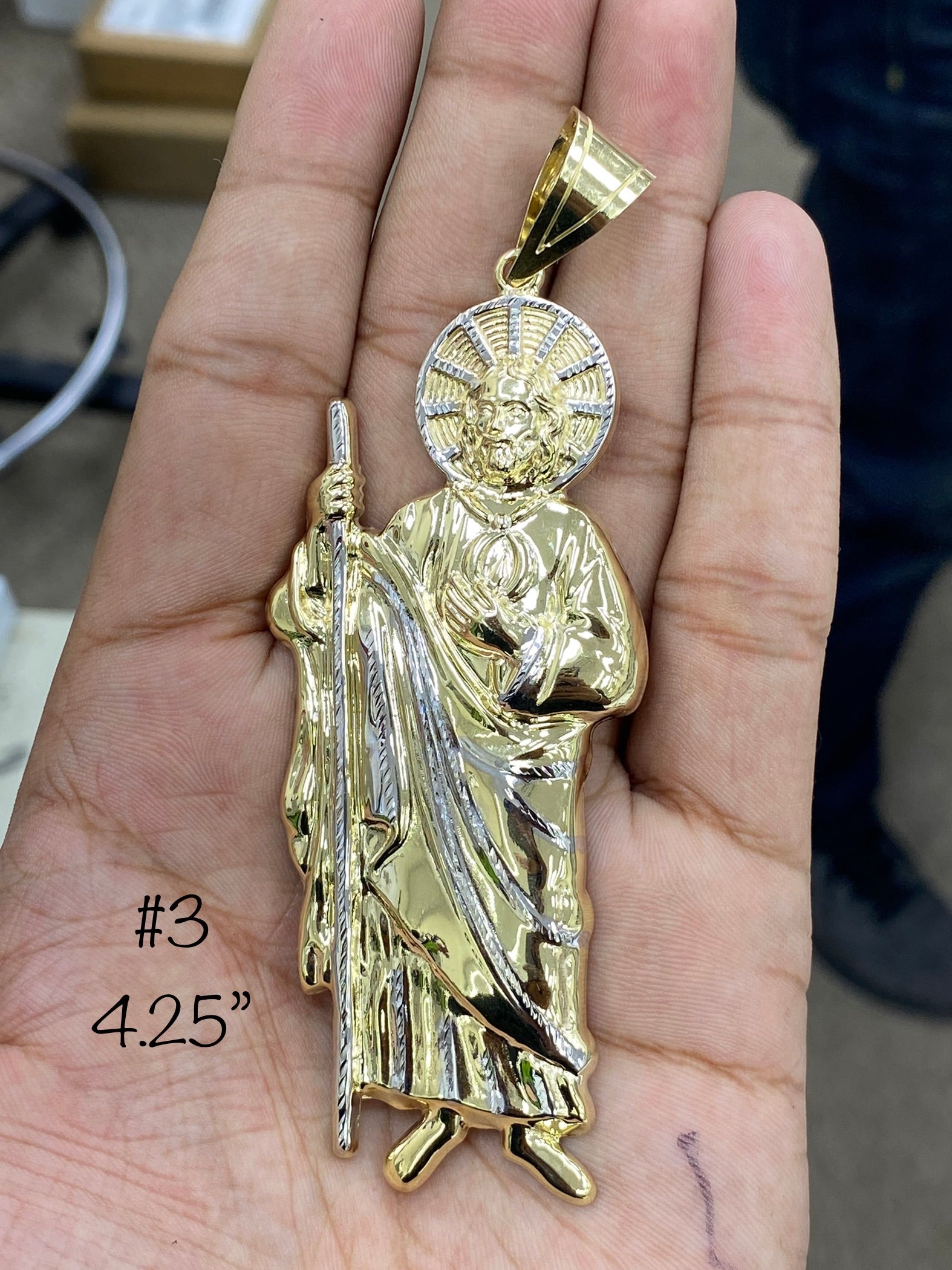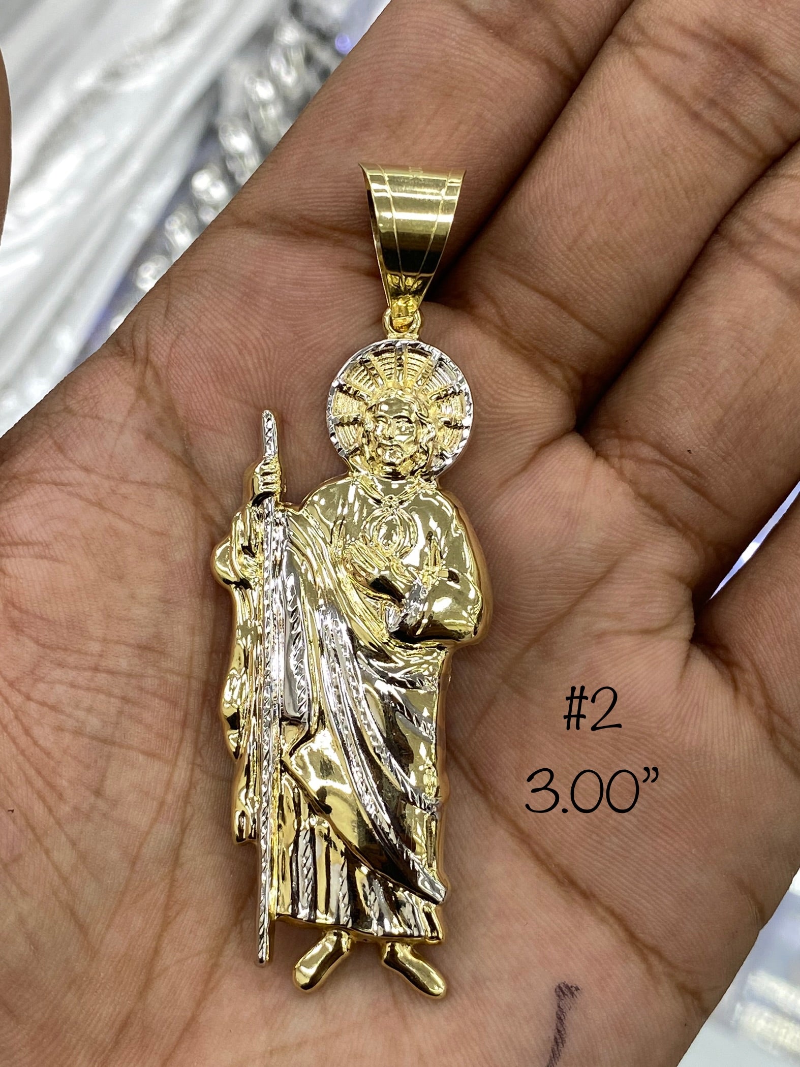 10KT 2-Tone Pave Saint Jude (Saint Judas) Pendant (3 Sizes)