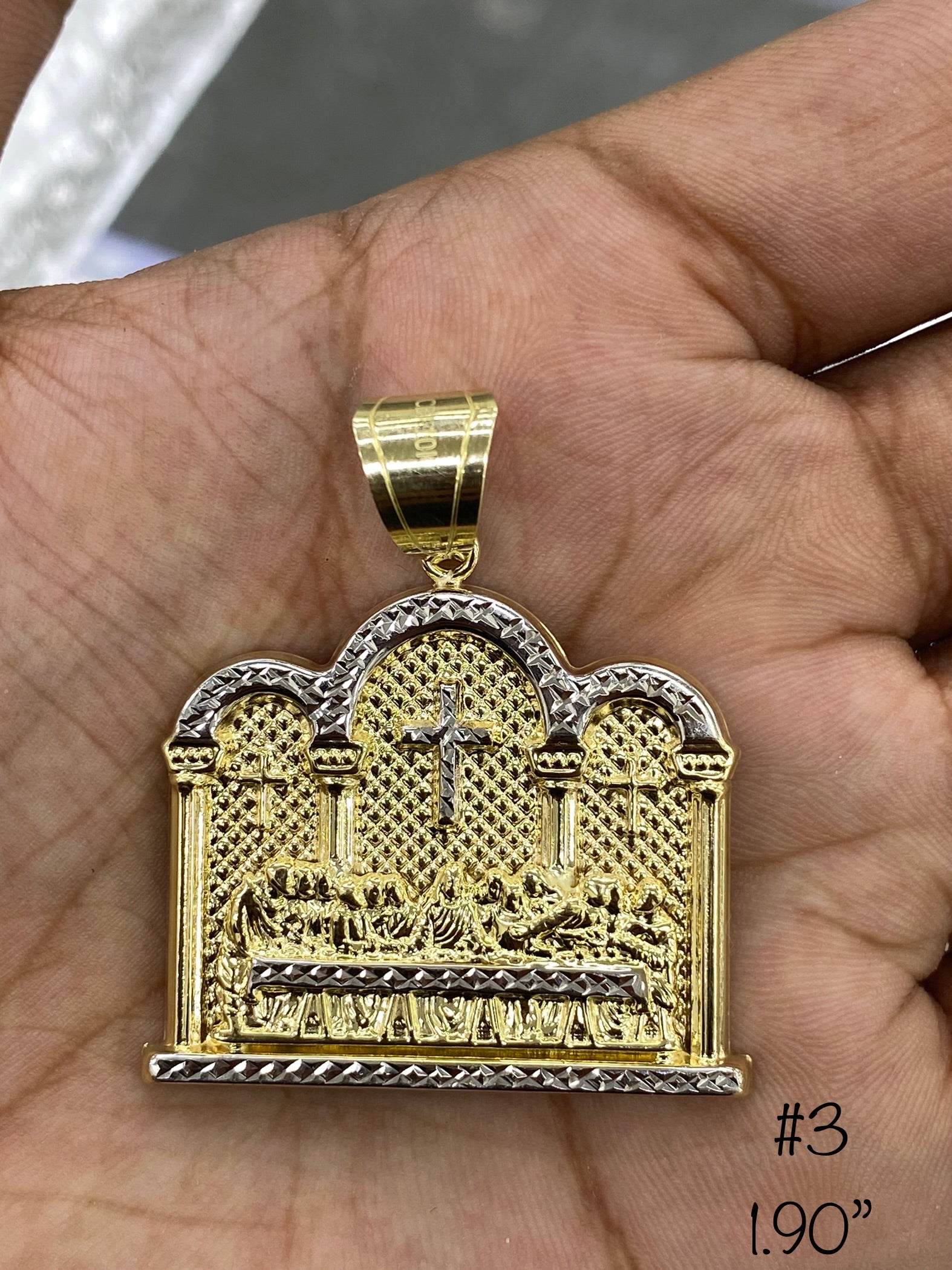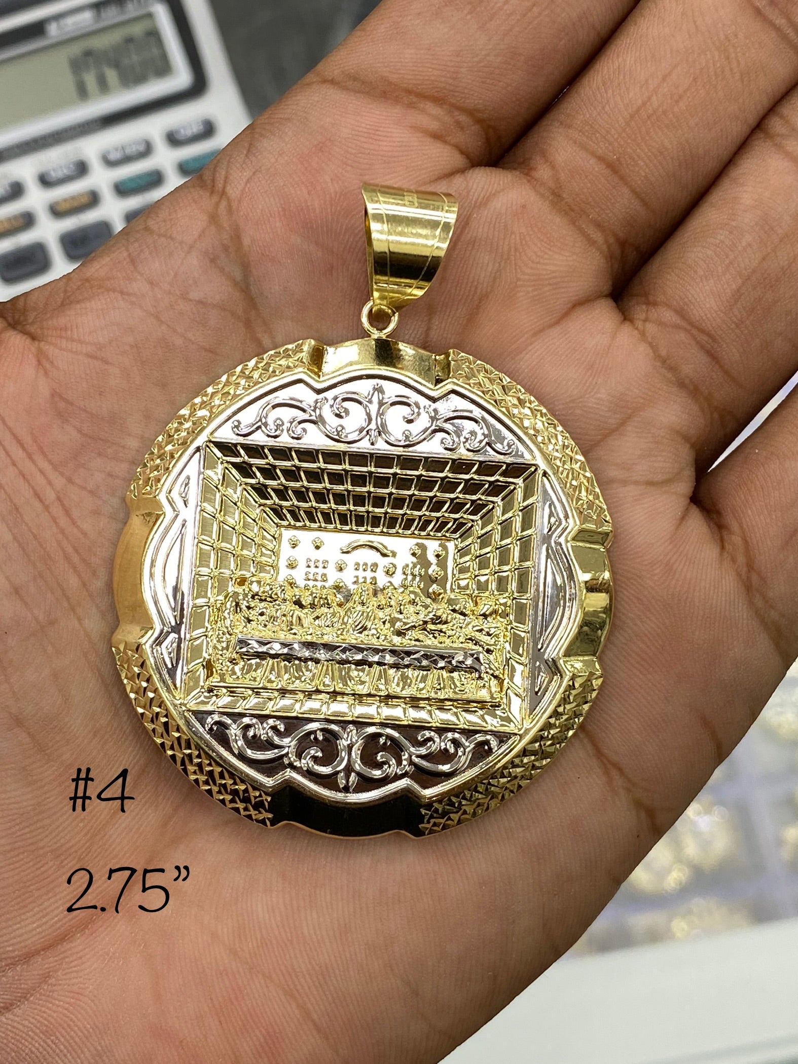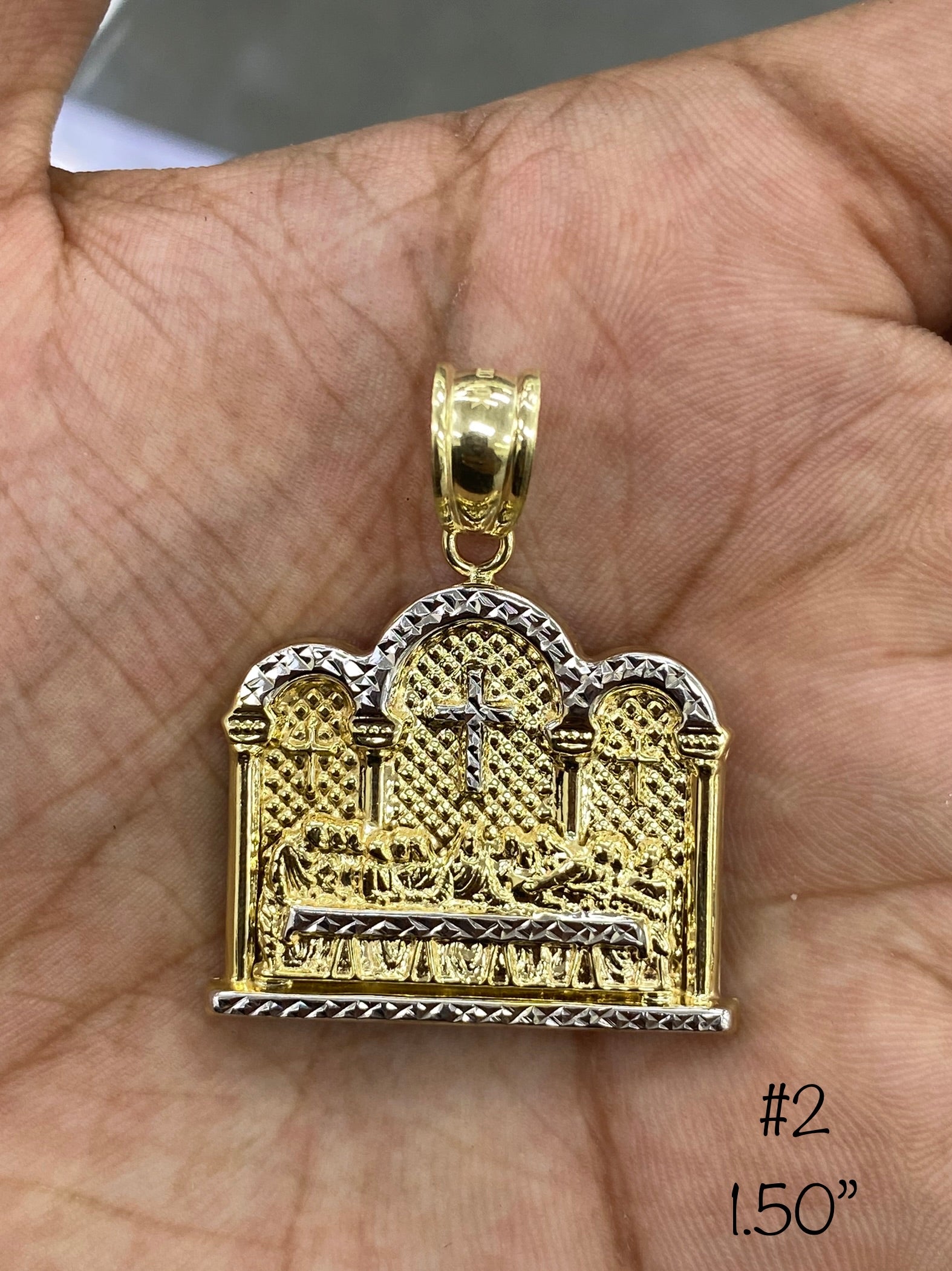 10KT 2-Tone Pave Round Last Supper Pendant ( 4 Sizes)