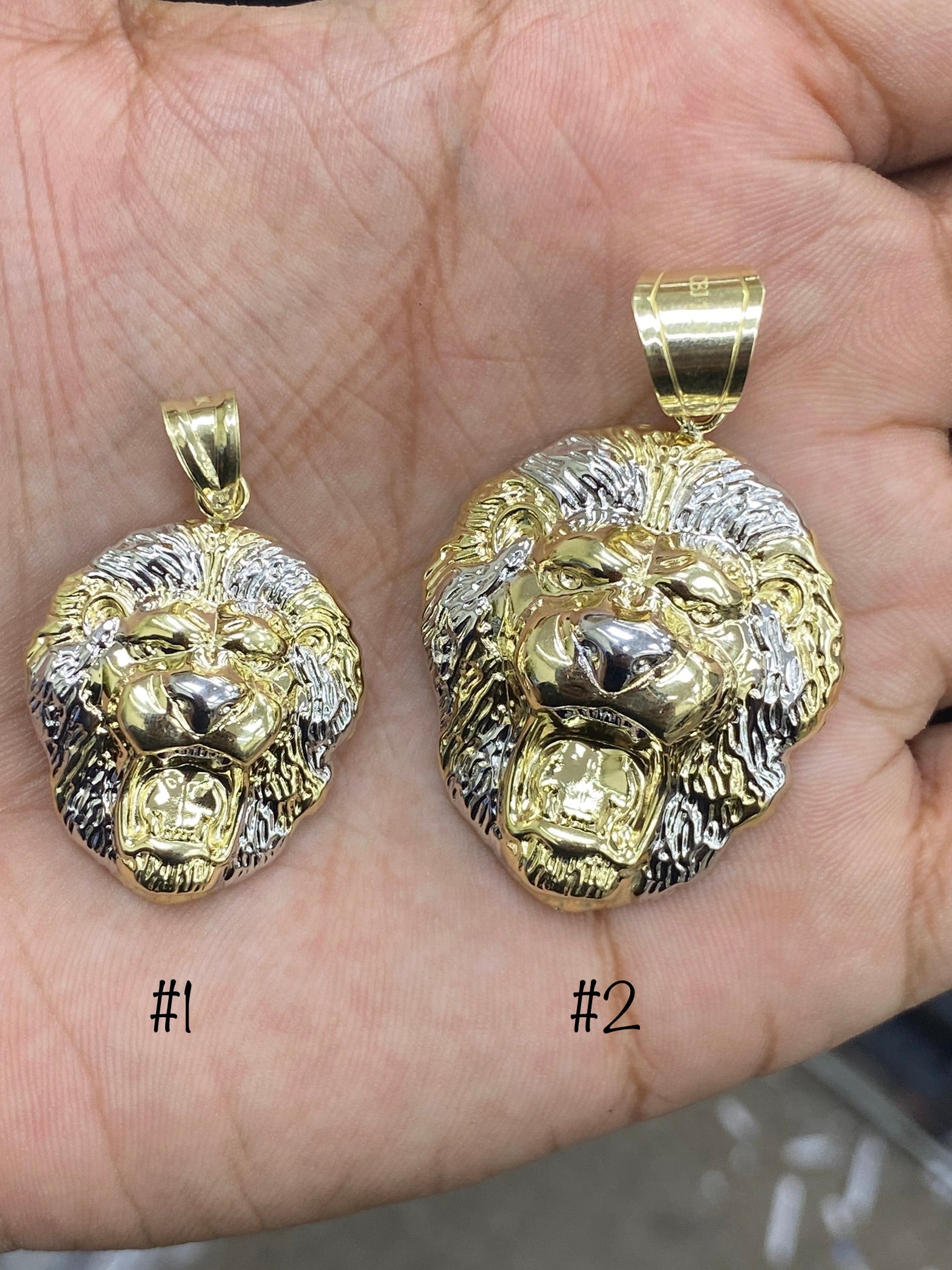 10KT 2-Tone Pave Lion Head Pendant (2 Sizes)