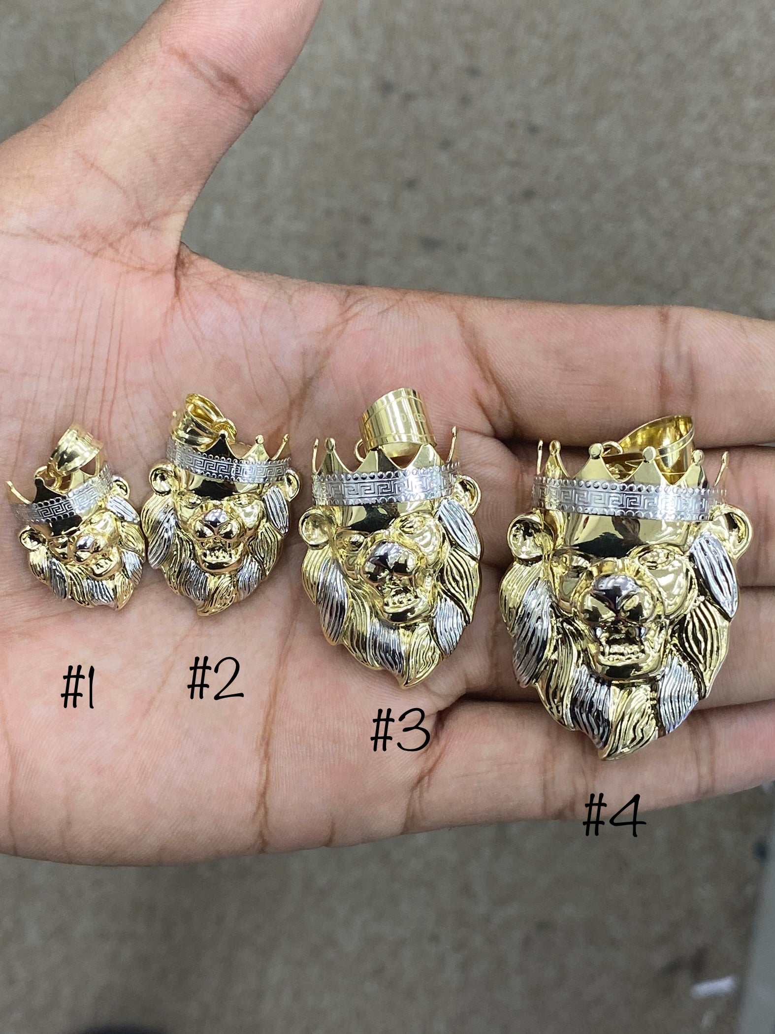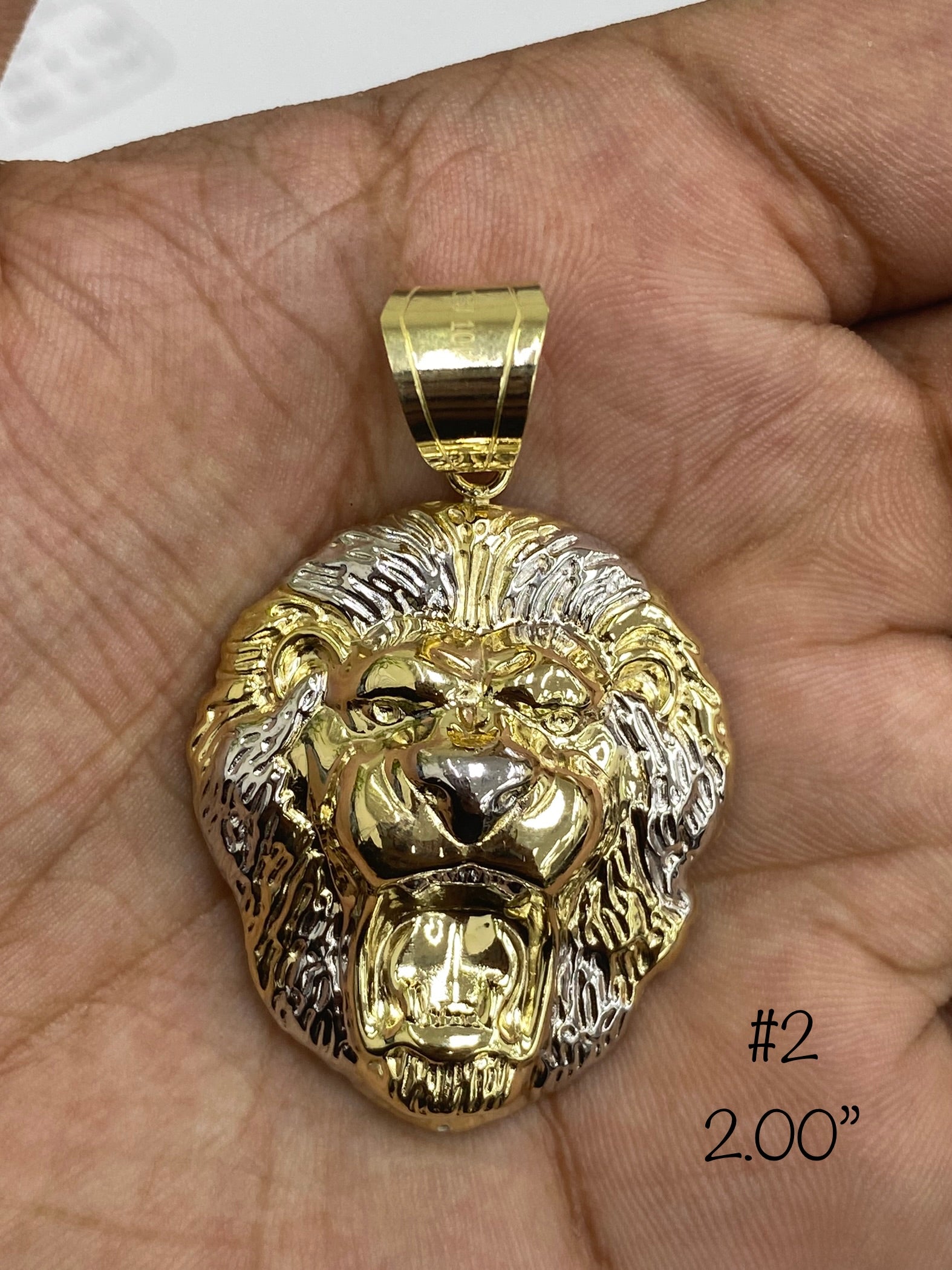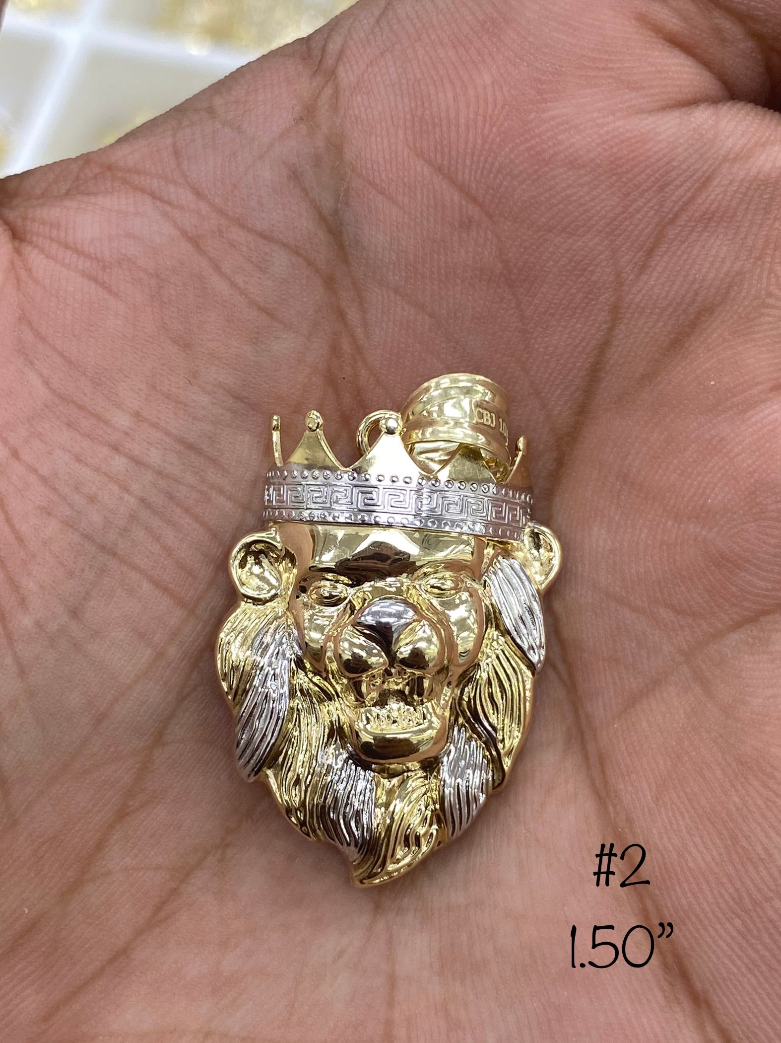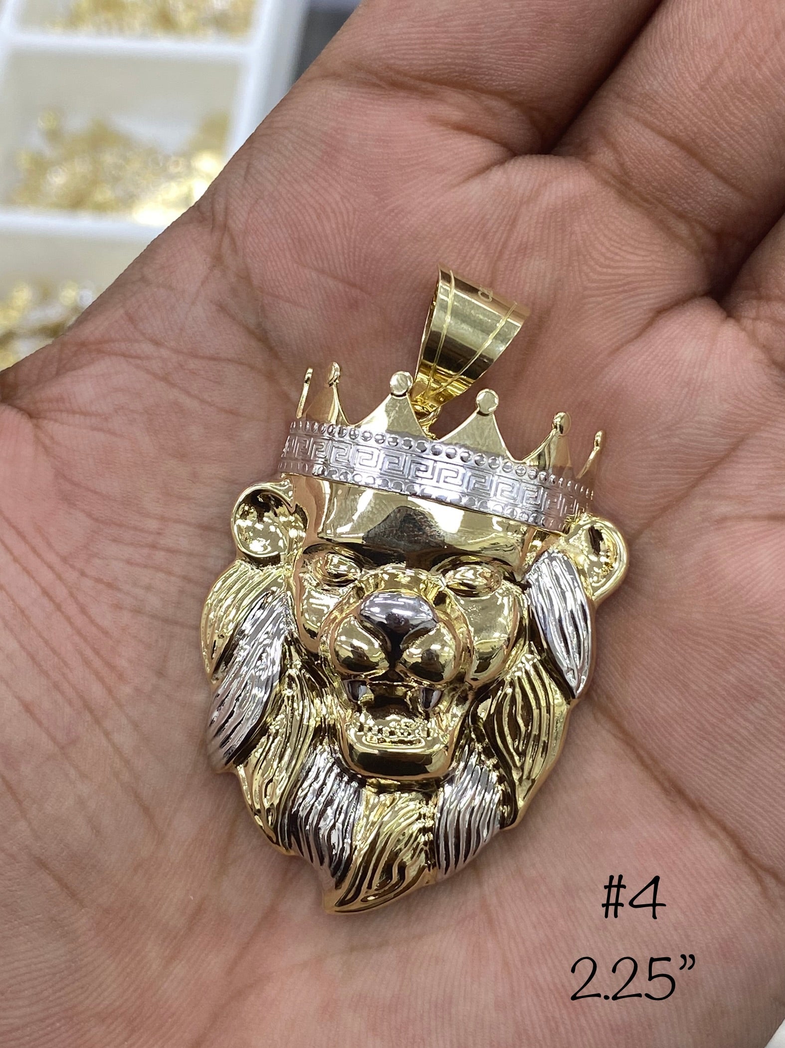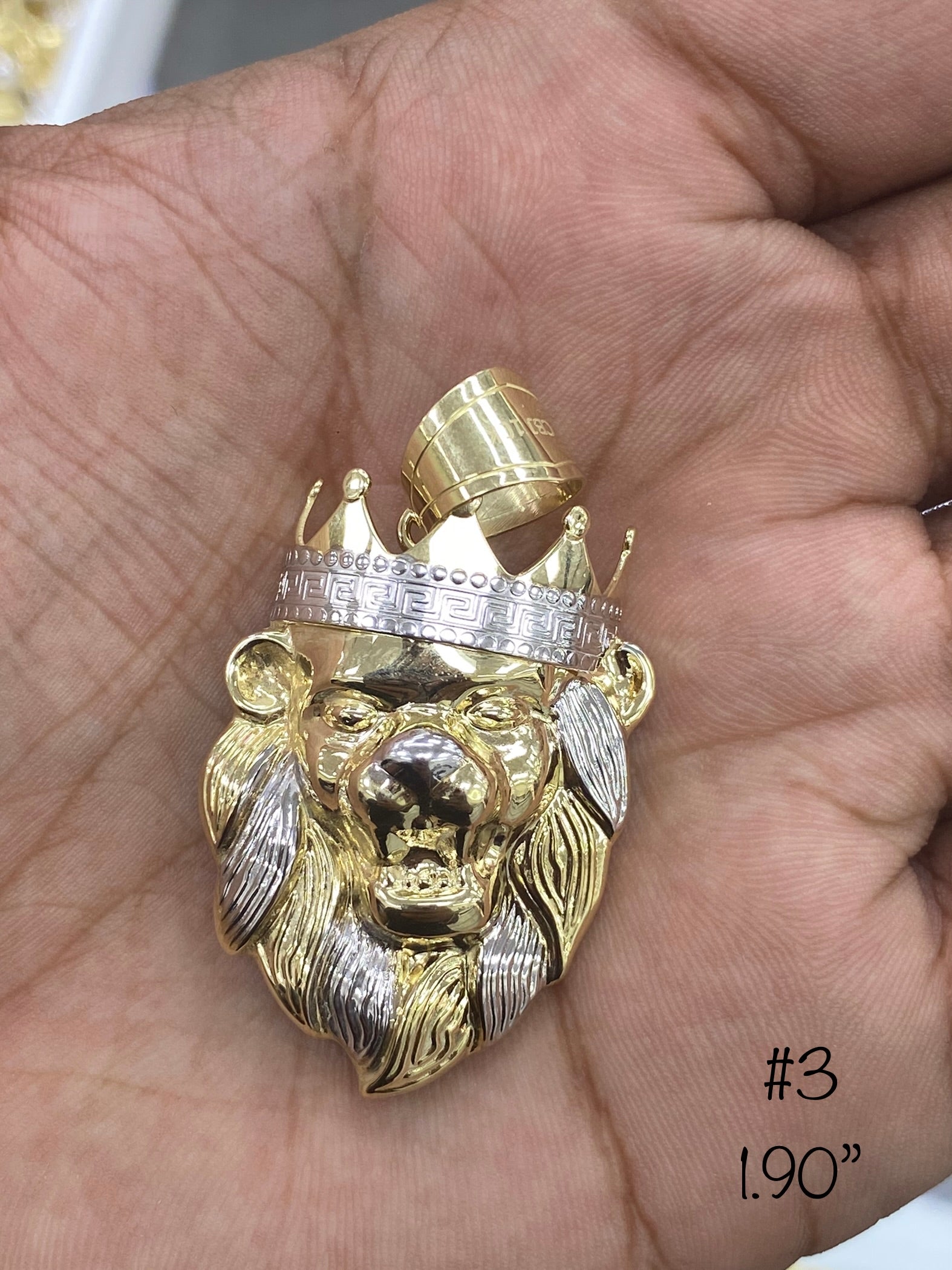 10KT 2-Tone Pave Crown Lion Pendant ( 4 Sizes)