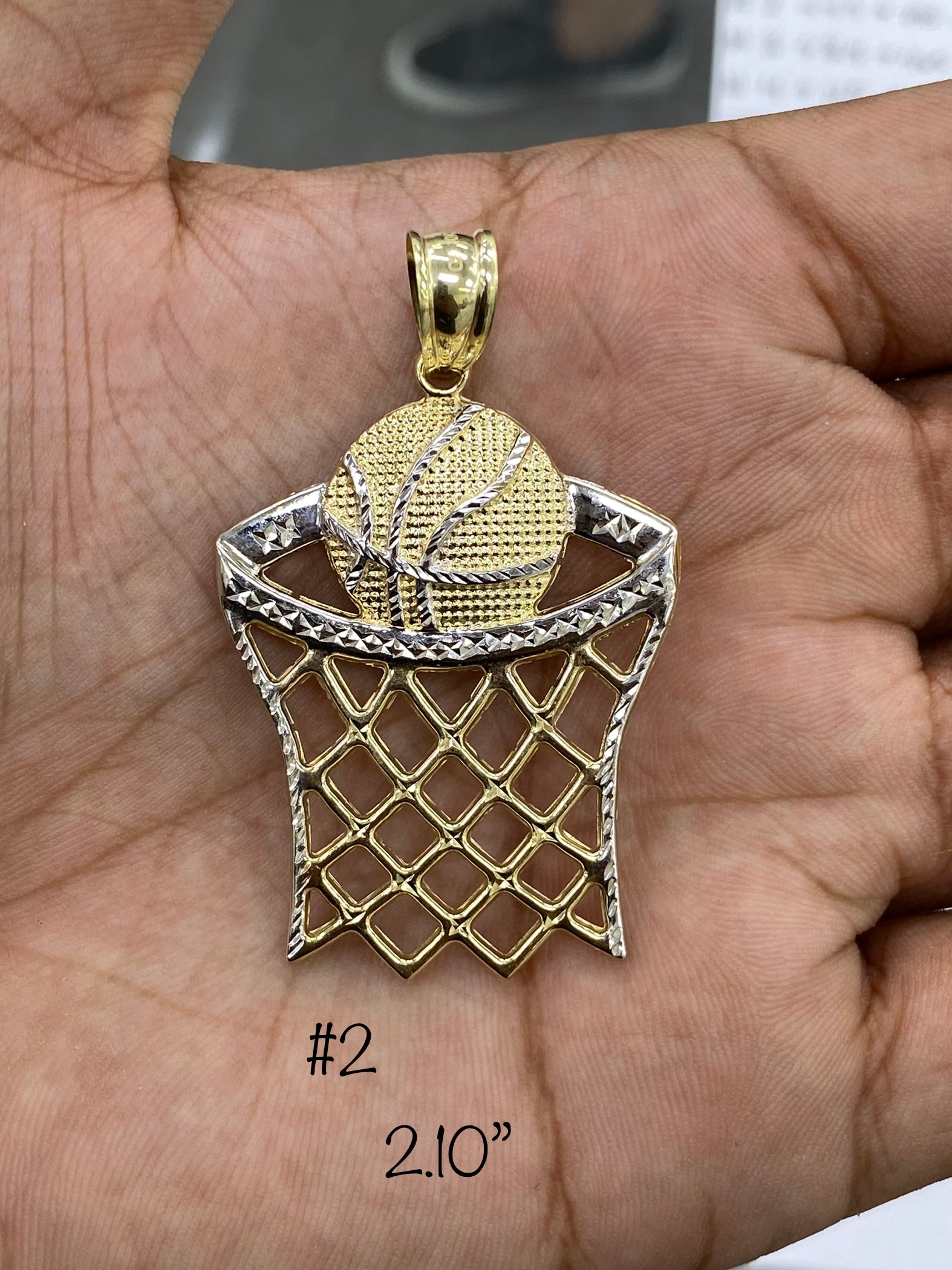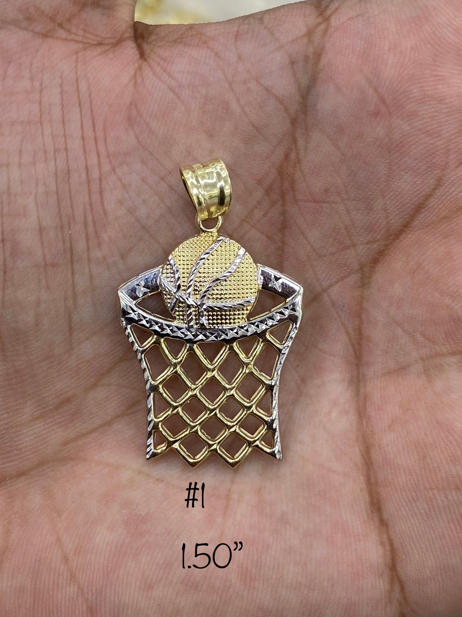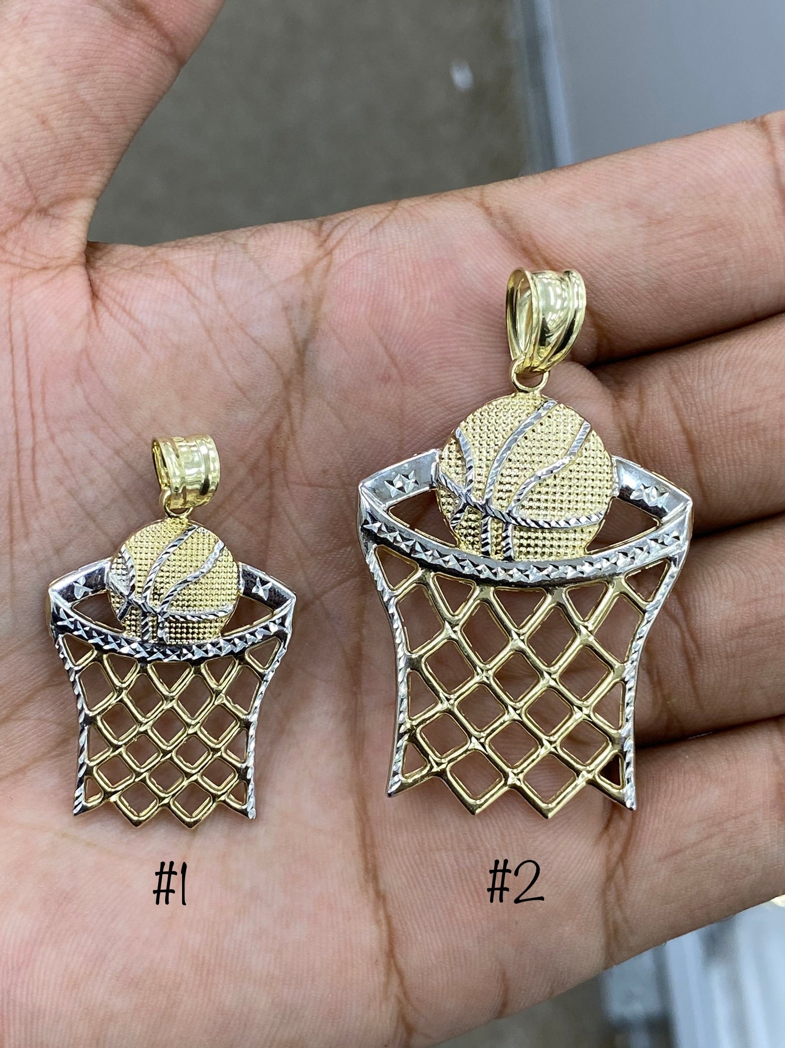 10KT 2-Tone Pave Basketball Pendant (2 Sizes)