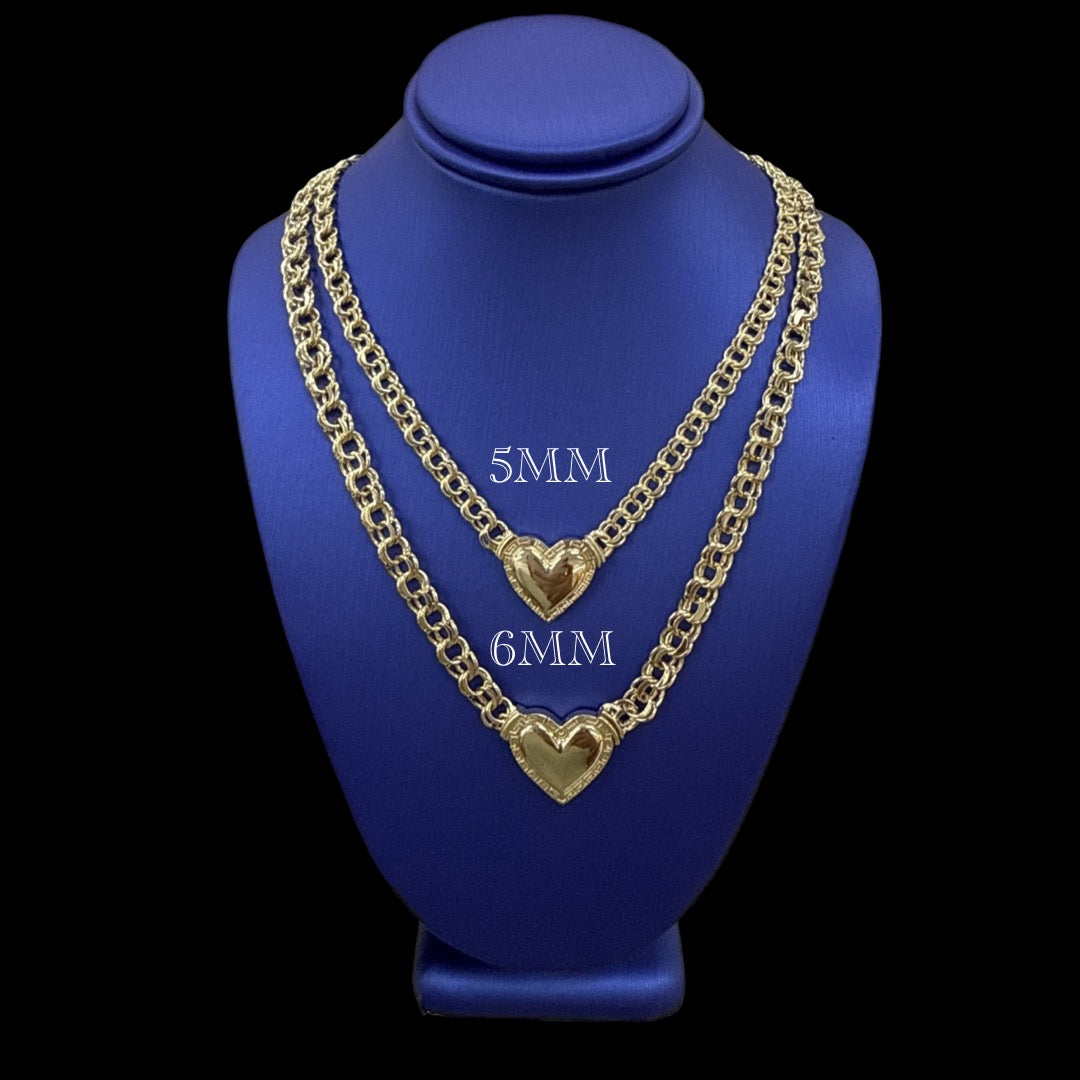 10KT Greek Heart Hollow Chino Link Necklace/Bracelet (7"/16"-20")