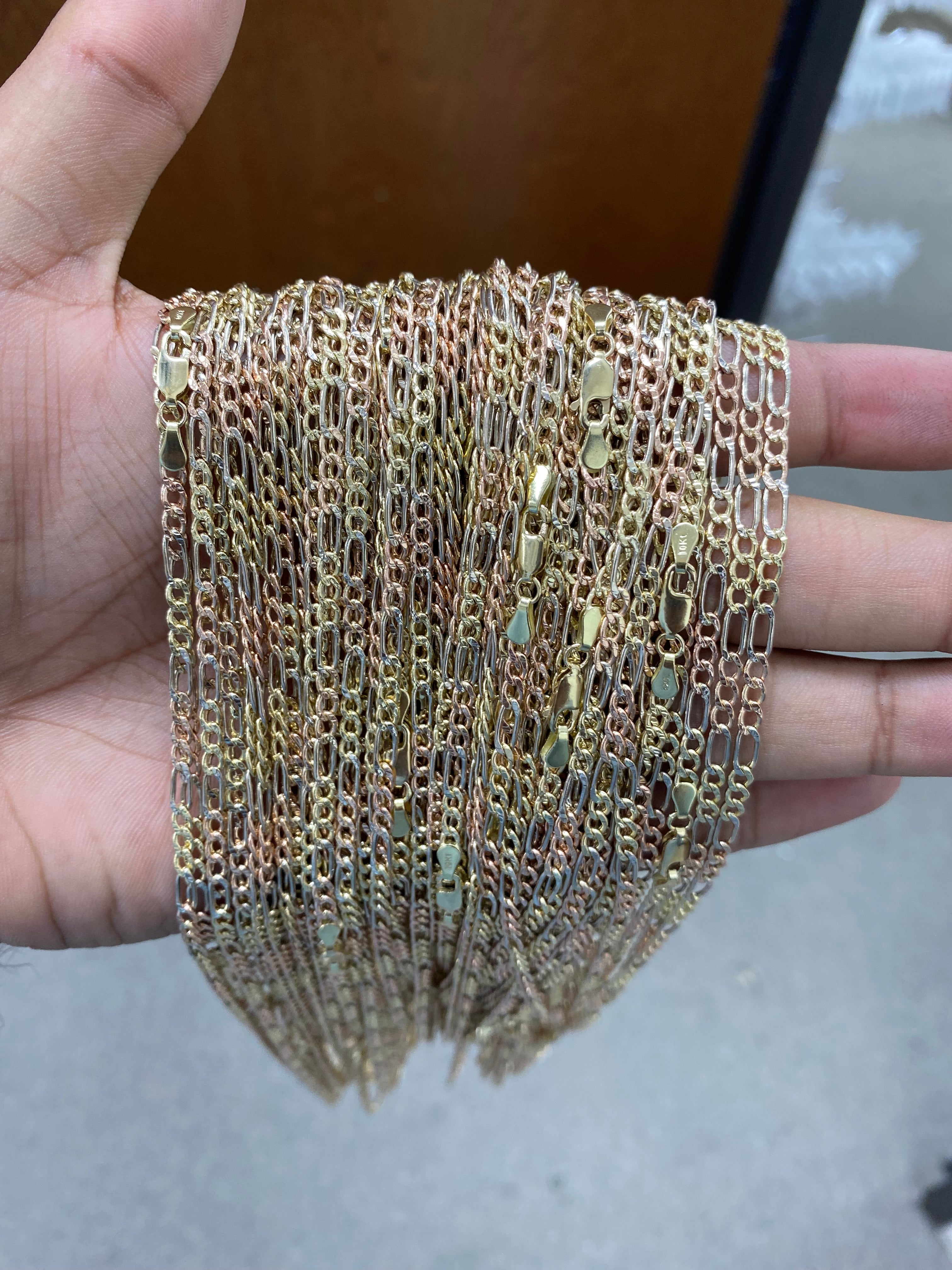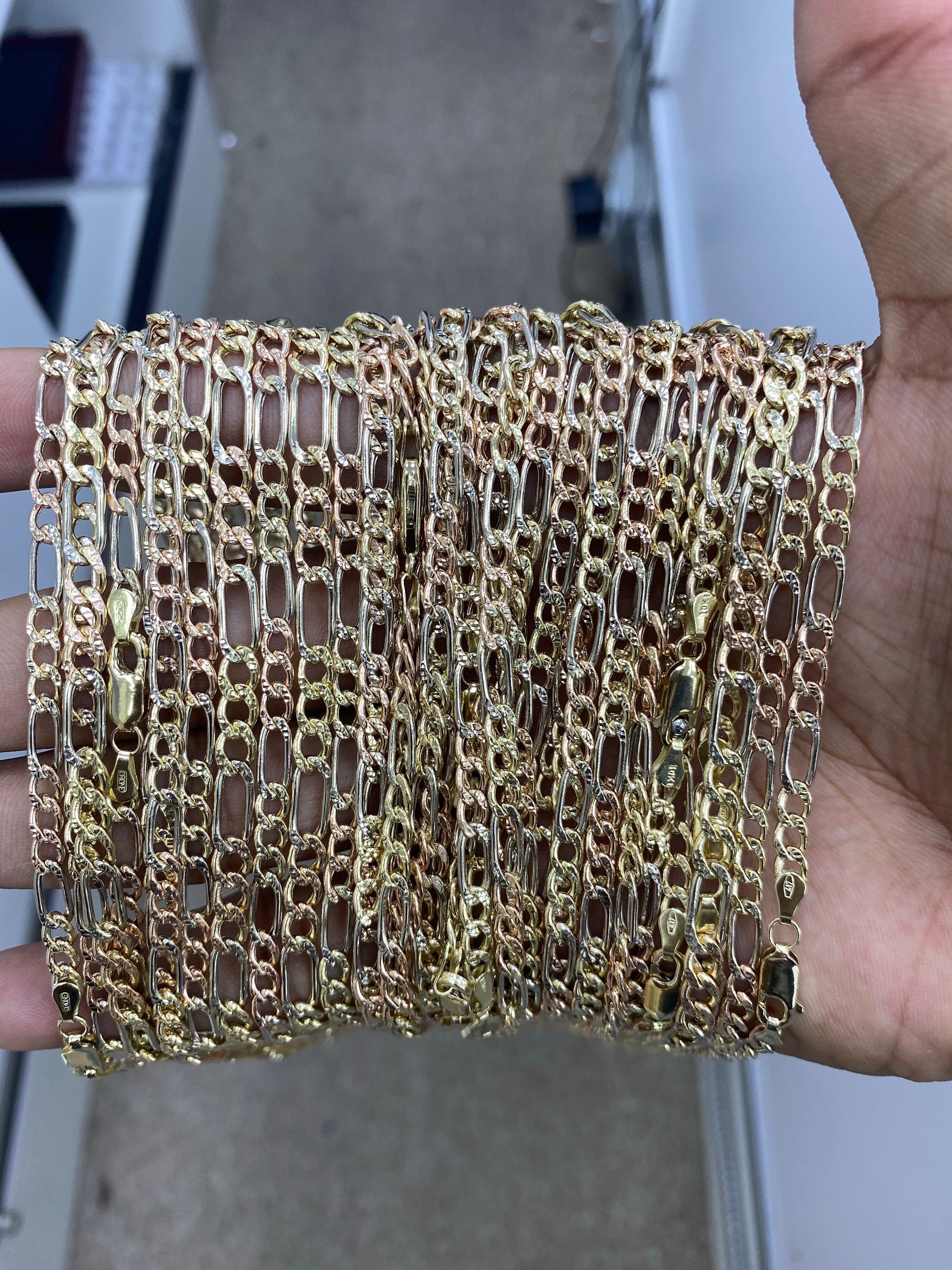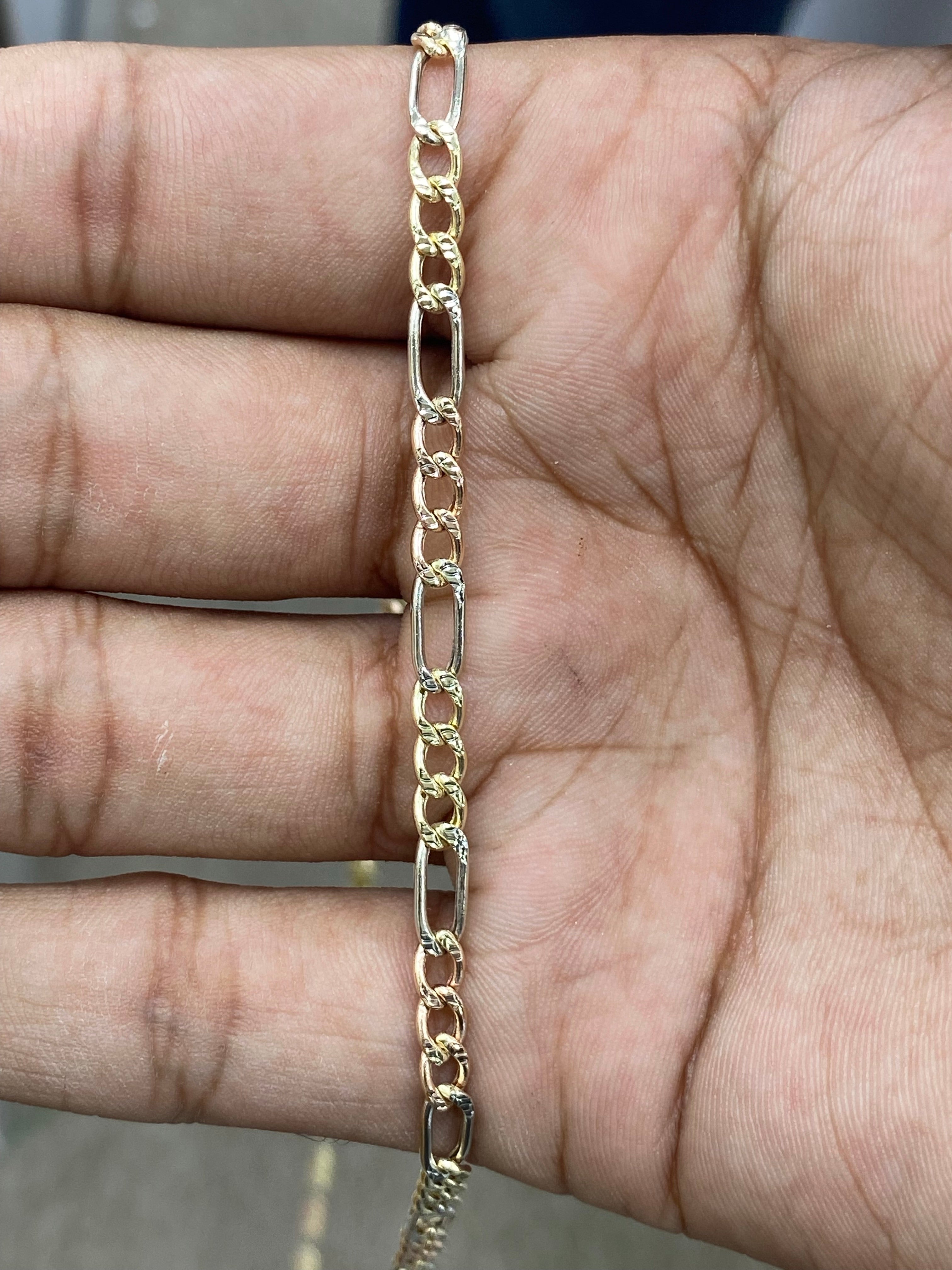 10KT 4MM Tri-Color (3 Tone) Figaro Necklace/Bracelet 7”/8” 18”-24”