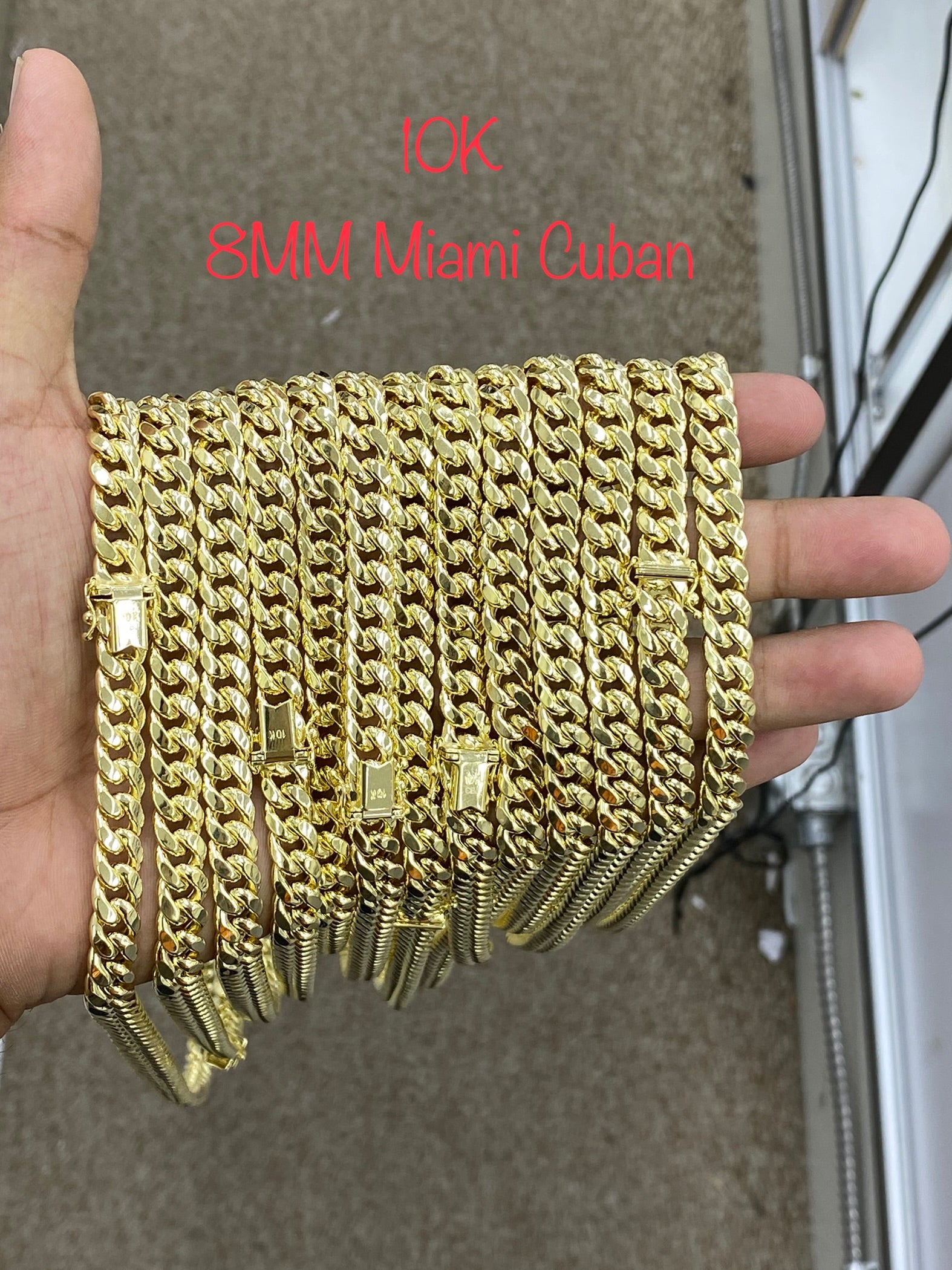 10KT 8MM Miami Cuban Necklace Diamond Cut 18”-24”
