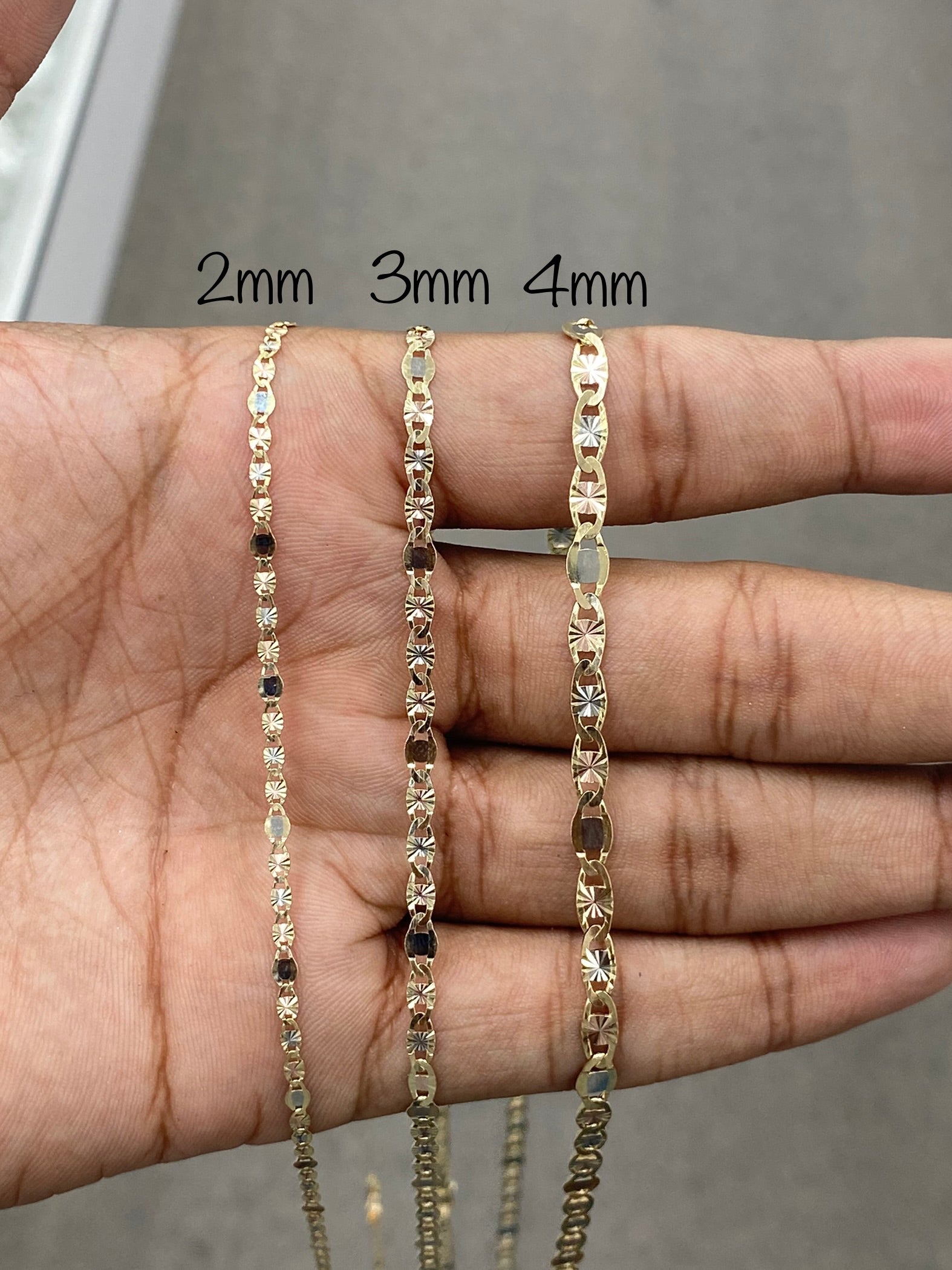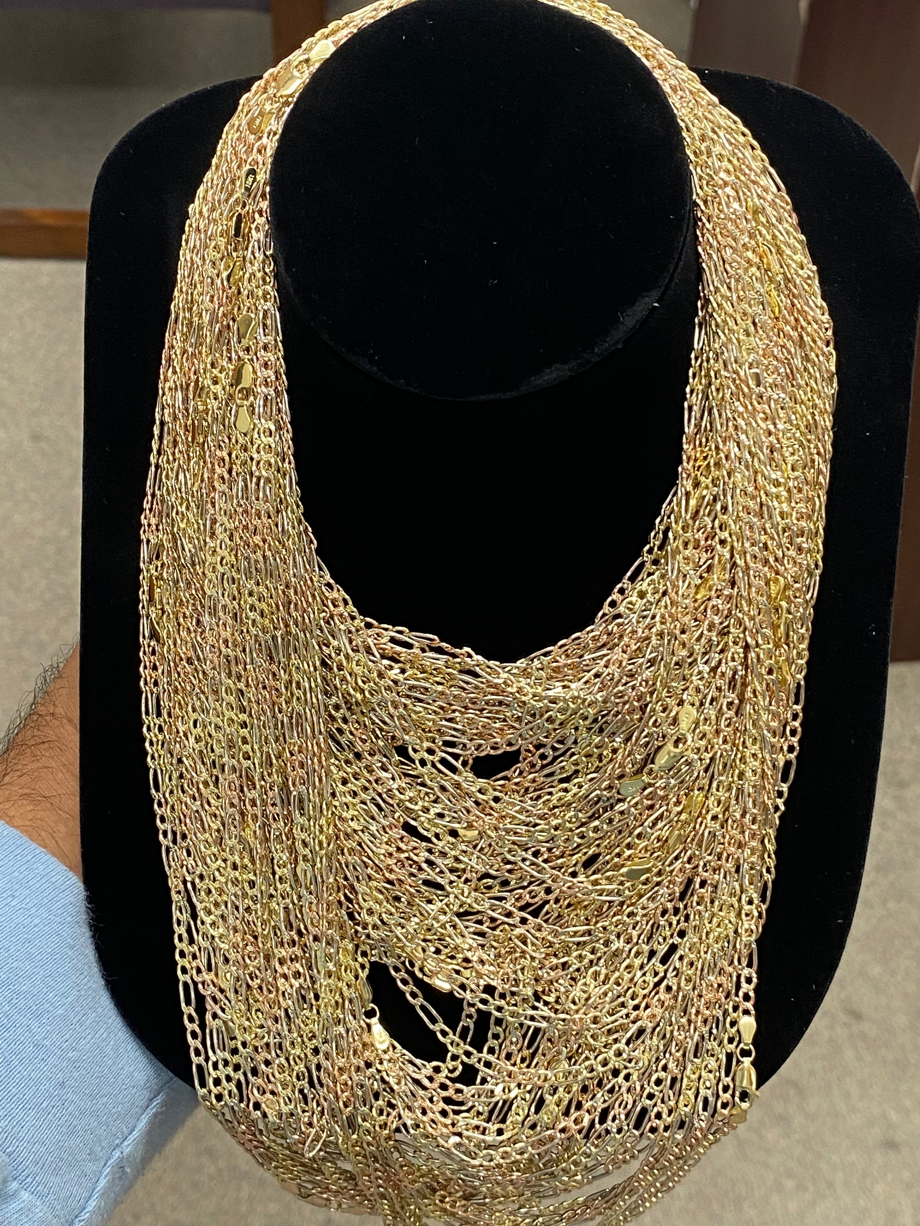 10KT 2/3/4 MIRROR(ESPEJO) DIAMOND CUT TRI COLOR VALENTINO NECKLACE (16”-26”)