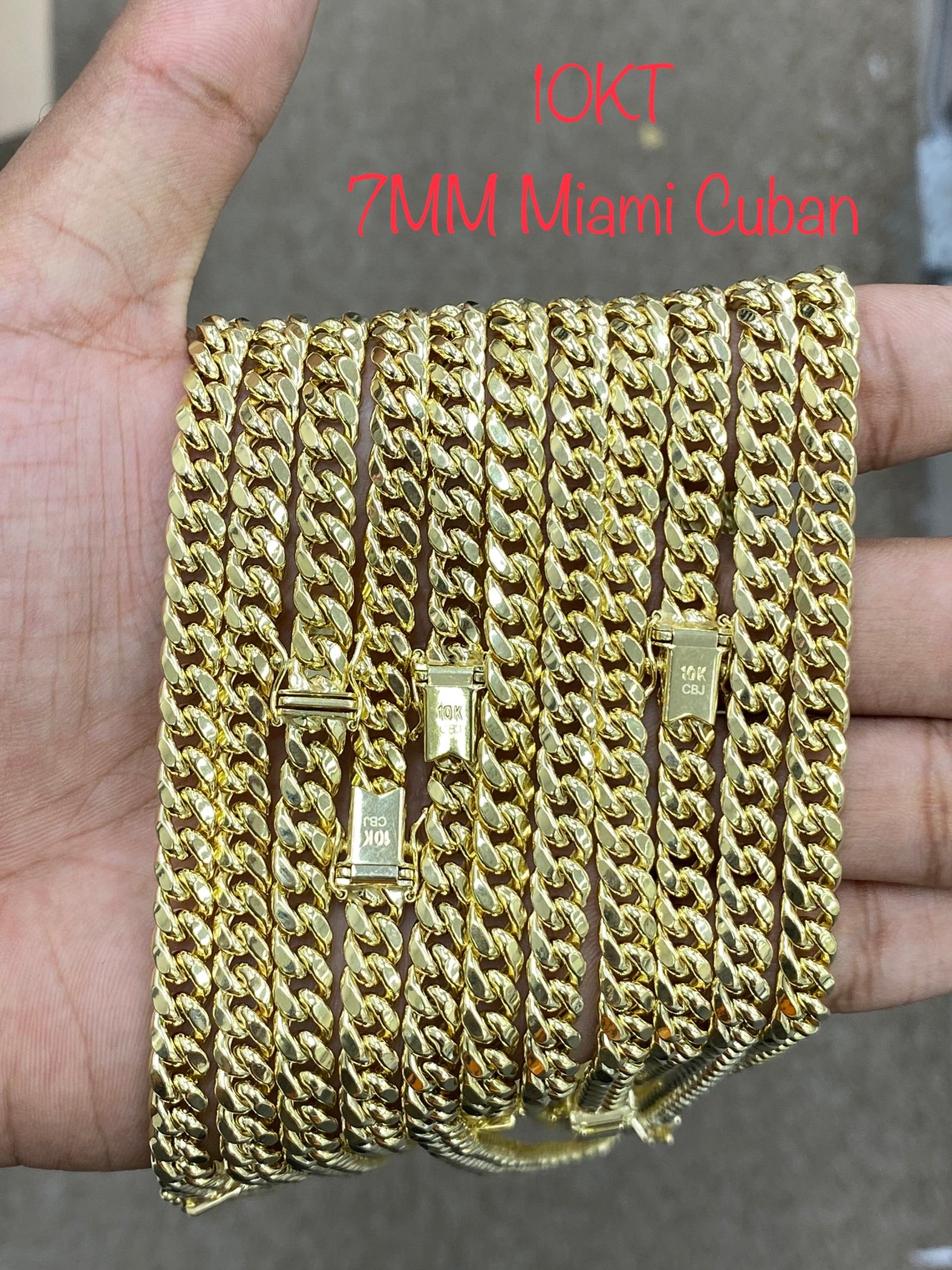 10KT 7MM Miami Cuban Necklace/Bracelet, Diamond Cut 18”-24”