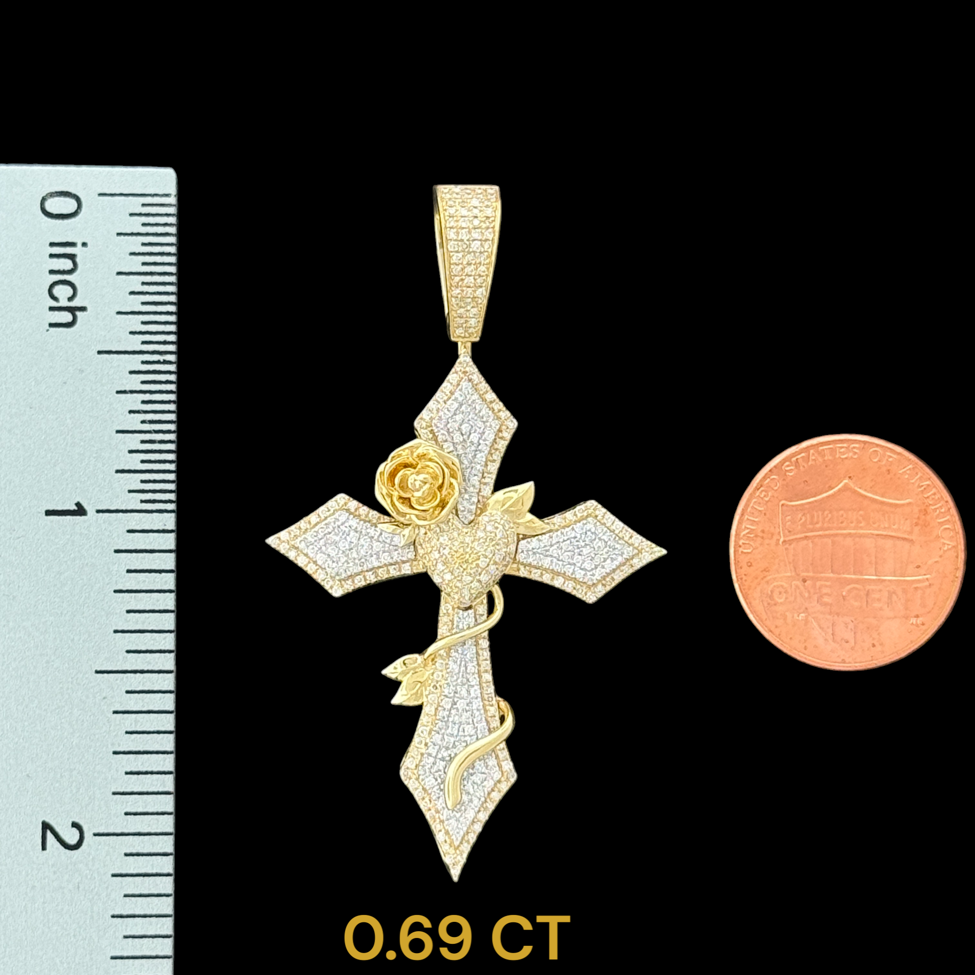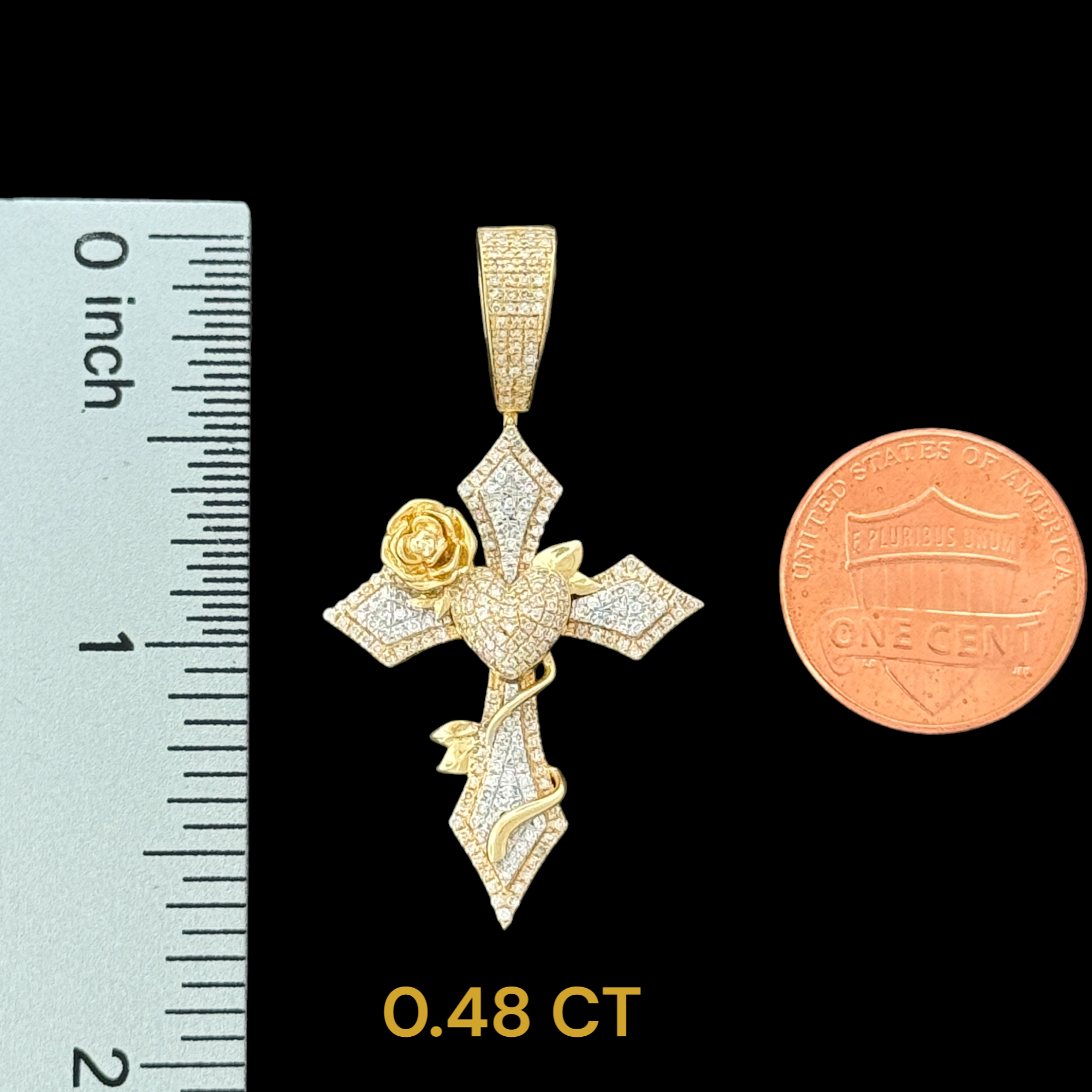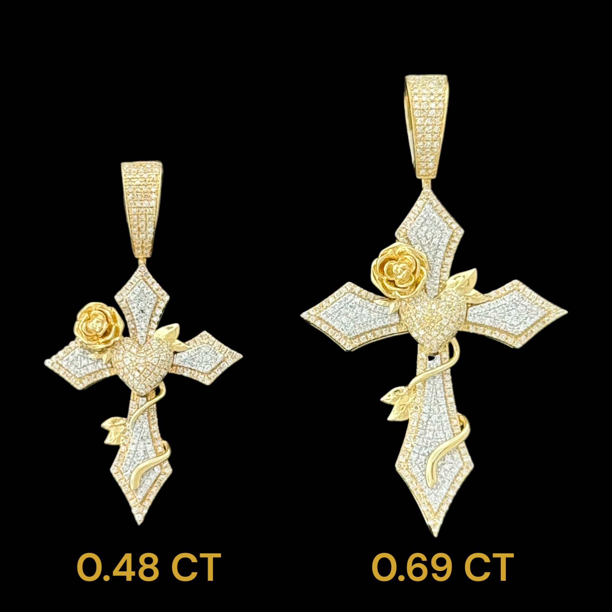 10KT Diamond Cross With Rose Pendants, Brand New (With Tags) (0.48CT & 0.69CT)