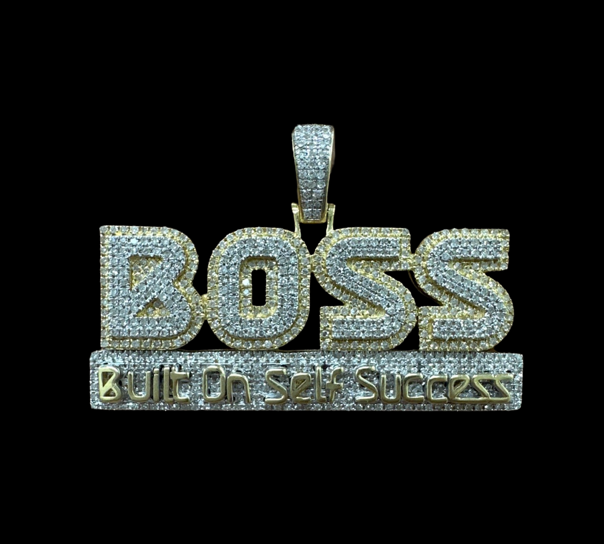 10KT Diamond Pendant, BOSS (BUILT ON SELF SUCCESS) ,Brand New (With Tags), (1.26CT)