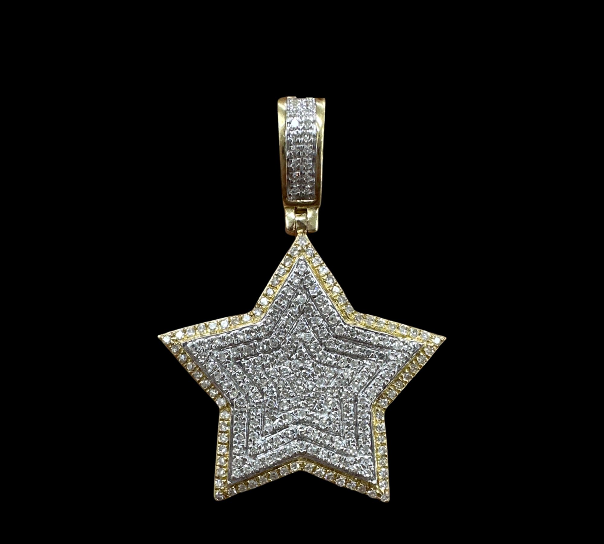 10KT Diamond Pendant, 5 POINT 2-TONE STAR, Brand New (With Tags), (1.60CT)