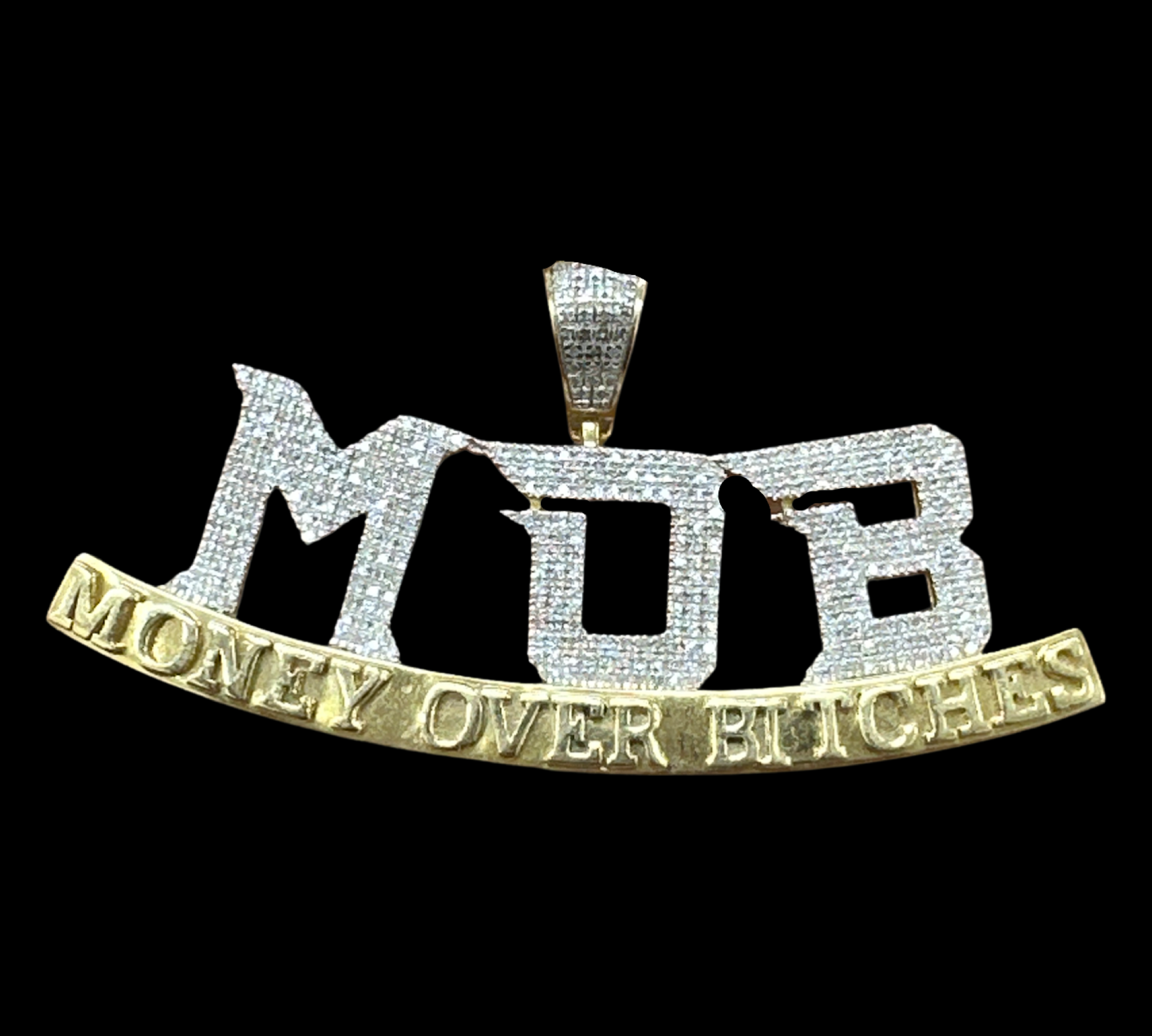 10KT Diamond Pendant, MOB (MONEY OVER BITCHES), Brand New (With Tags), (.56CT)