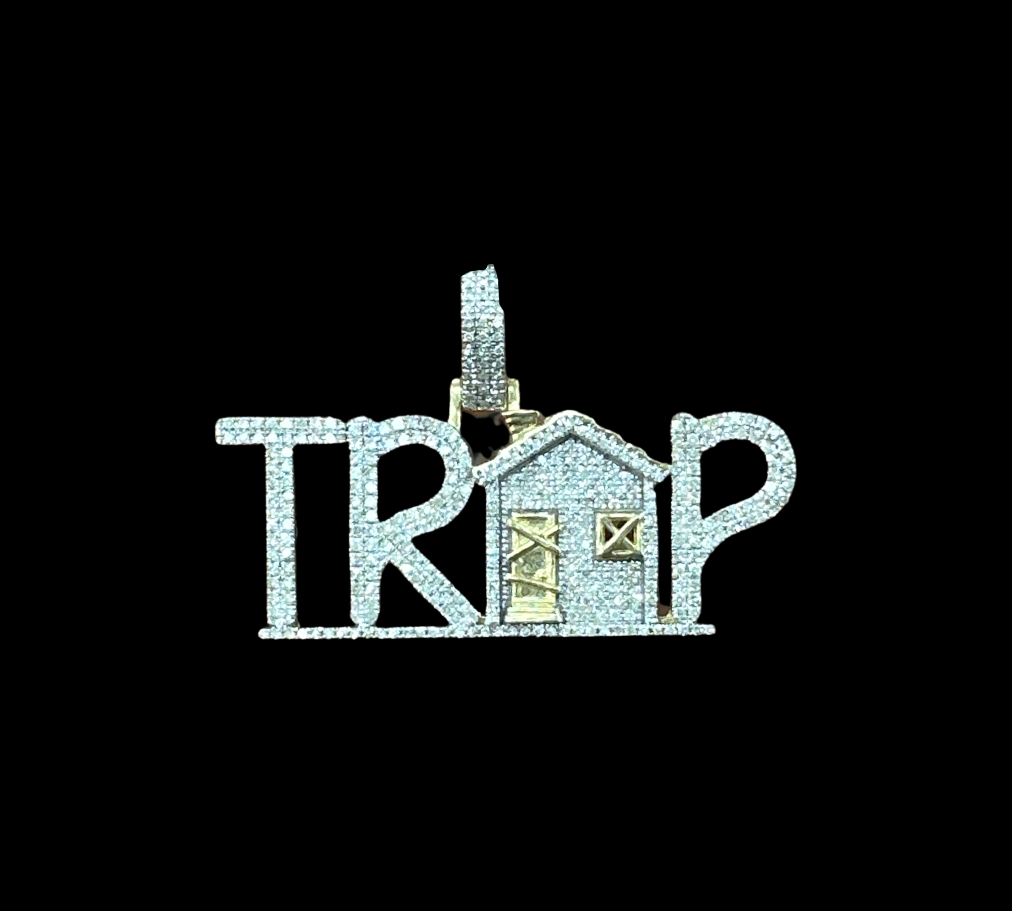 10KT Diamond Pendant, TRAP HOUSE, Brand New (With Tags), (.90CT)