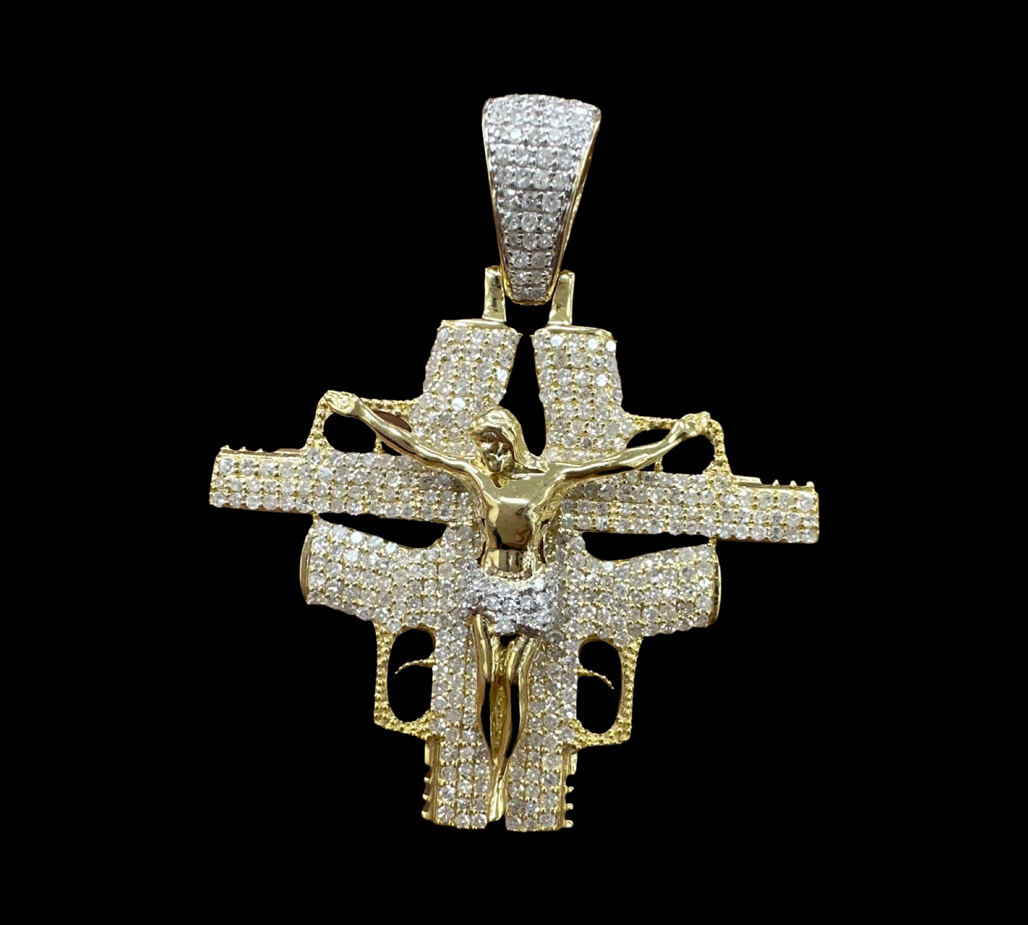10KT Diamond Pendant, JESUS WITH GUNS,Brand New (With Tags), (2.56CT)