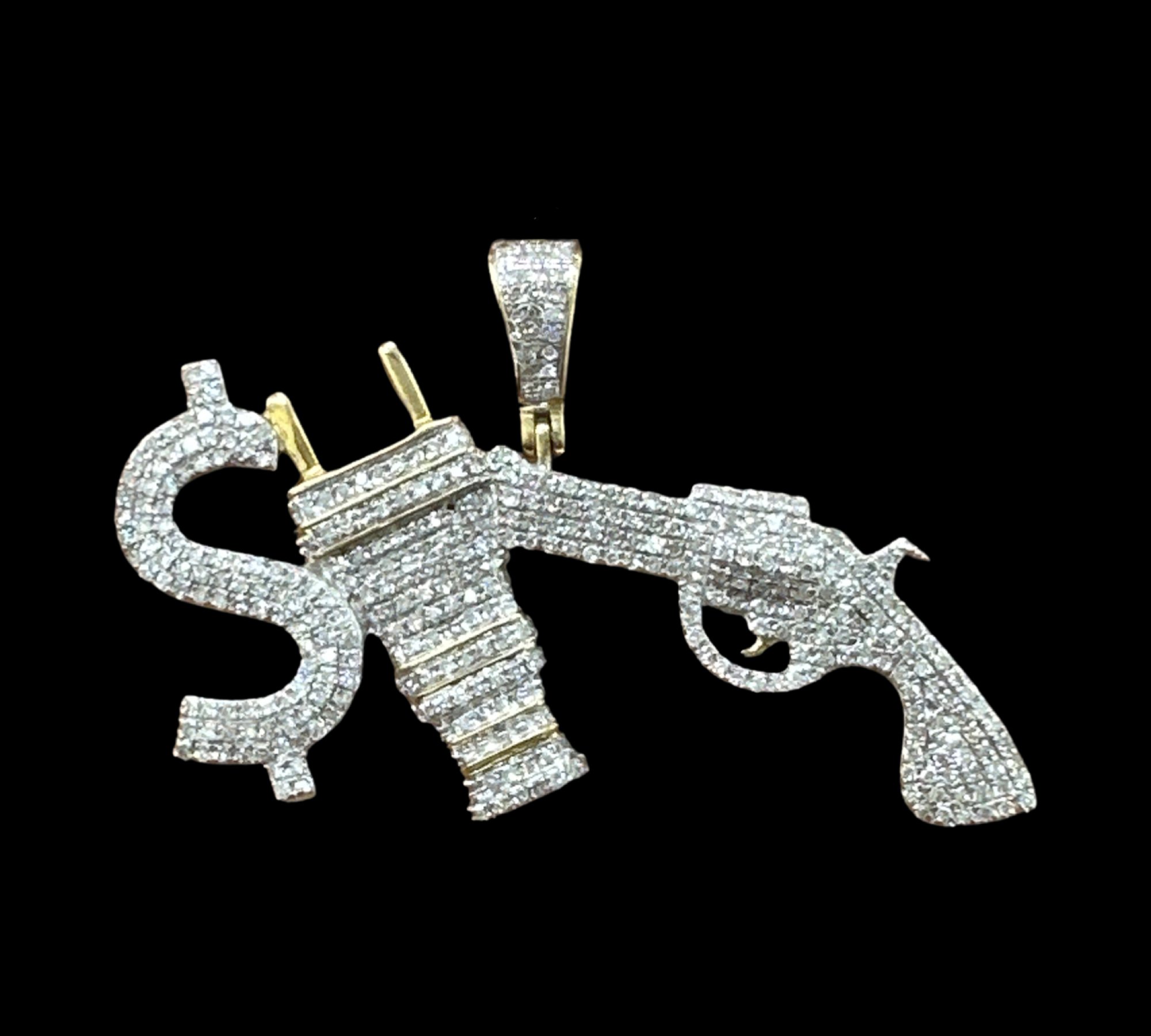 10KT Diamond Pendant, MONEY/PLUG/GUNS Brand New (With Tags), (1.07CT)