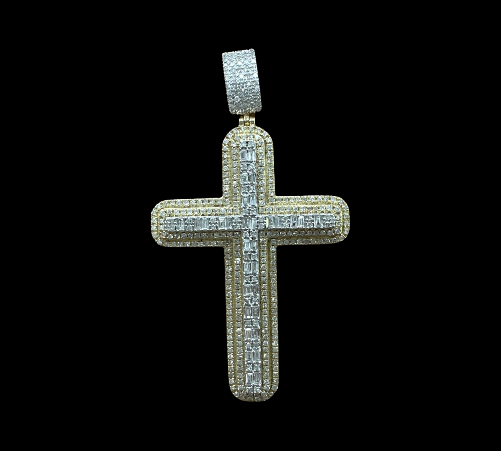 10KT 2-Tone Diamond Cross, Brand New (With Tags) (1.60CT)