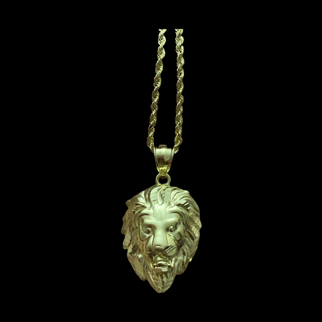 10KT Lion Head Pendant With 10KT 2MM Hollow Diamond Cut Rope Chain 16"-24"
