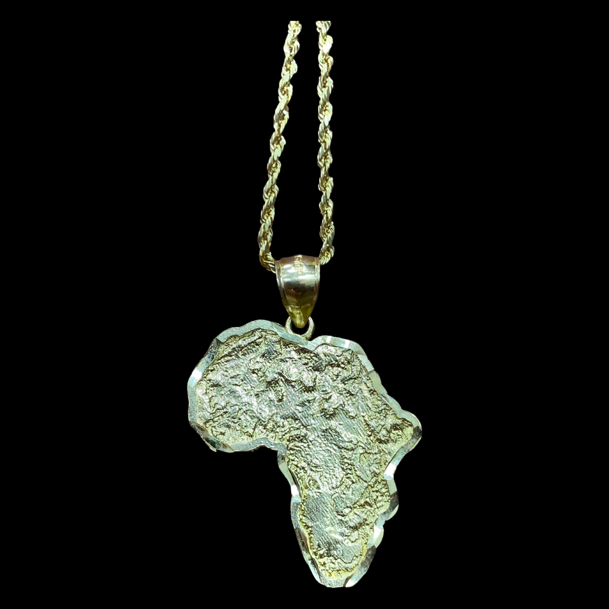 10KT Nugget Africa Pendant With 10KT 2MM Hollow Diamond Cut Rope Chain 16"-24"
