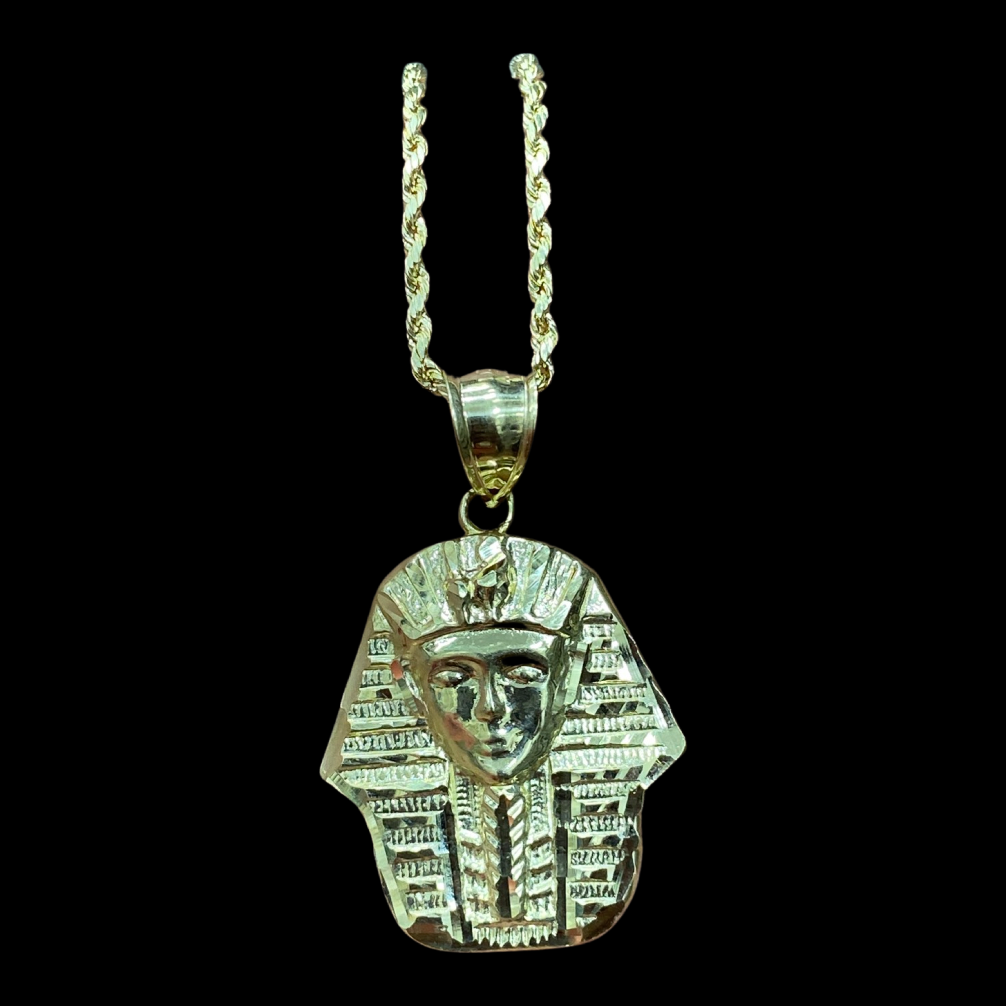 10KT Pharaoh Pendant With 10KT 2MM Hollow Diamond Cut Rope Chain 16"-24"