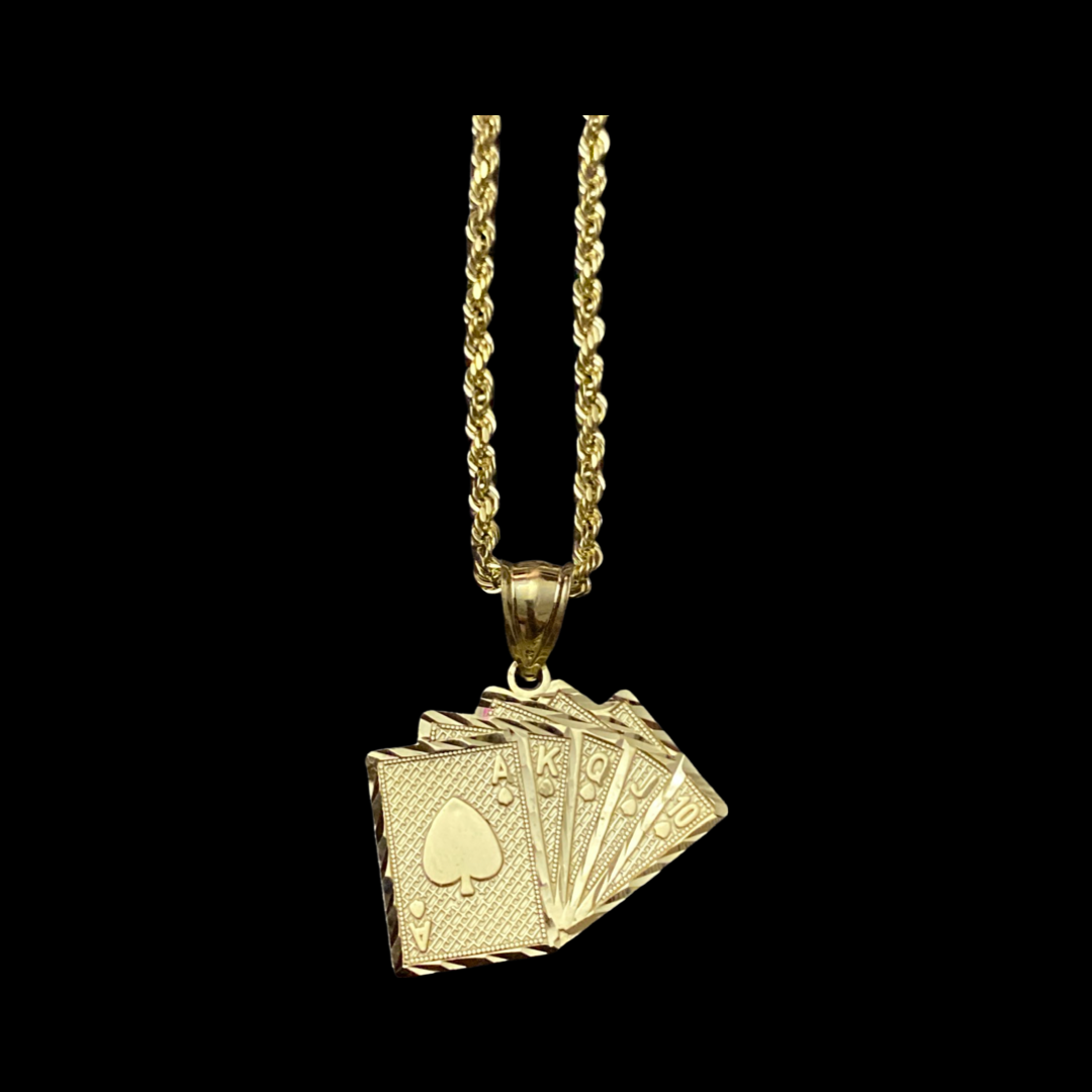 10KT Playing Cards Pendant With 10KT 2MM Hollow Diamond Cut Rope Chain 16"-24"