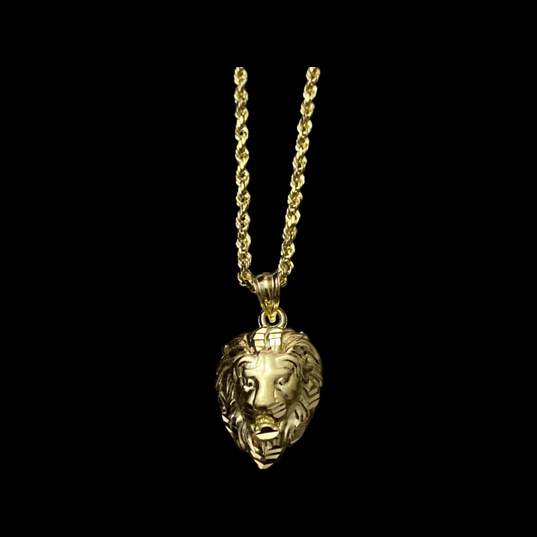 10KT Small Lion Head Pendant With 10KT 2MM Hollow Diamond Cut Rope Chain 16"-24"