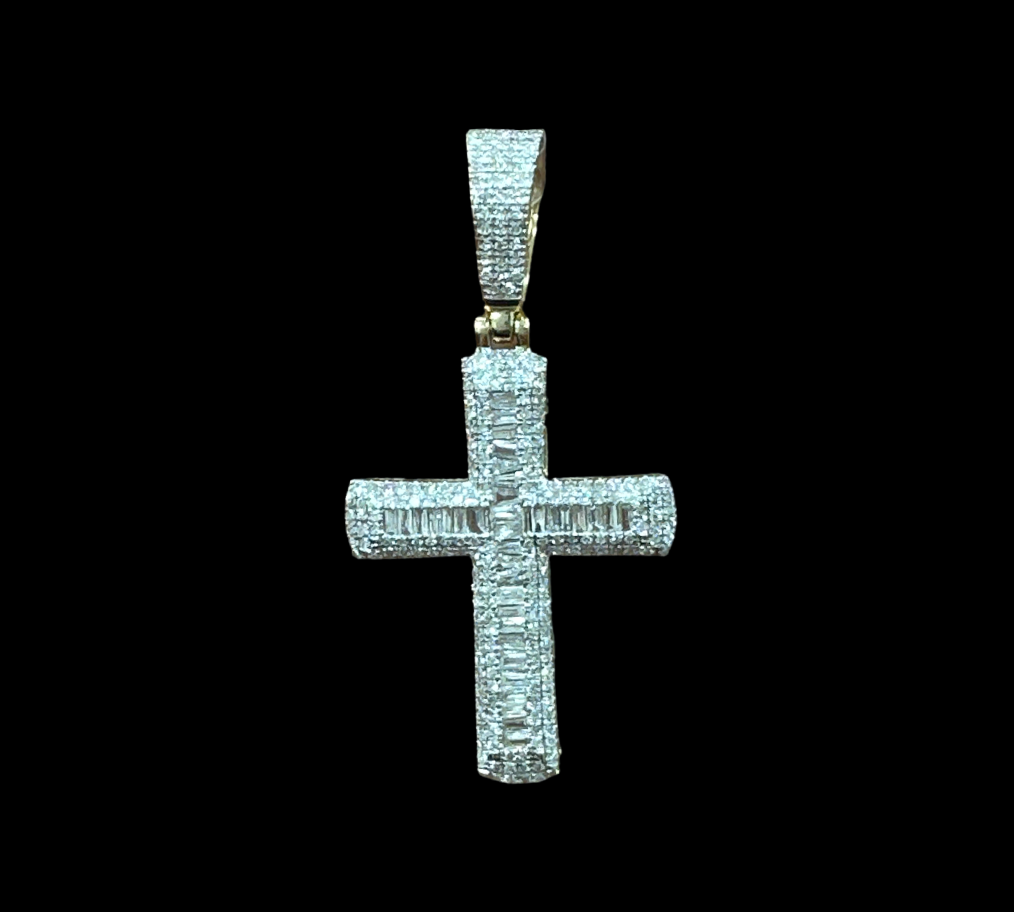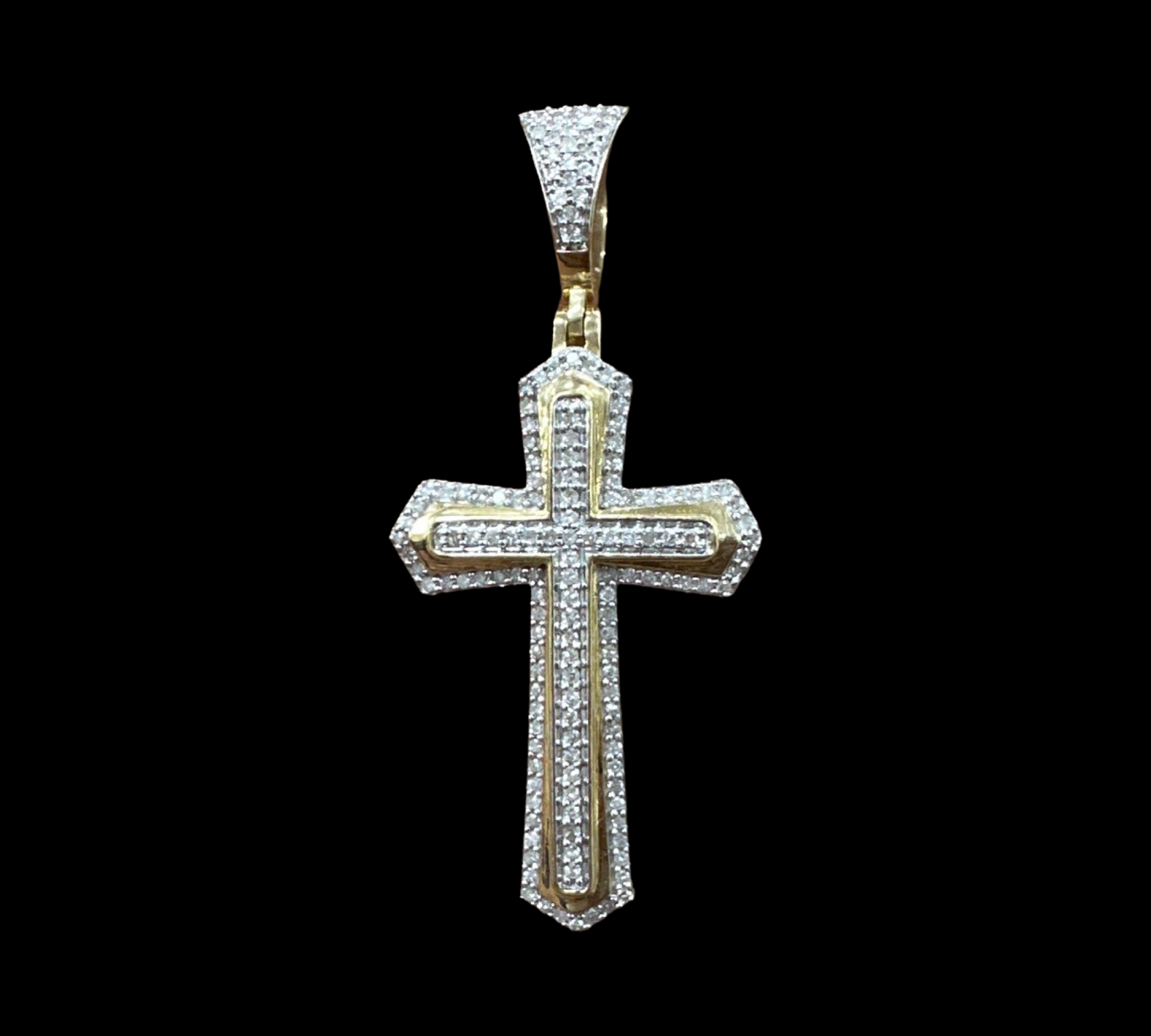 10KT Yellow Gold Diamond Cross, Brand New (With Tags) (.65CT)