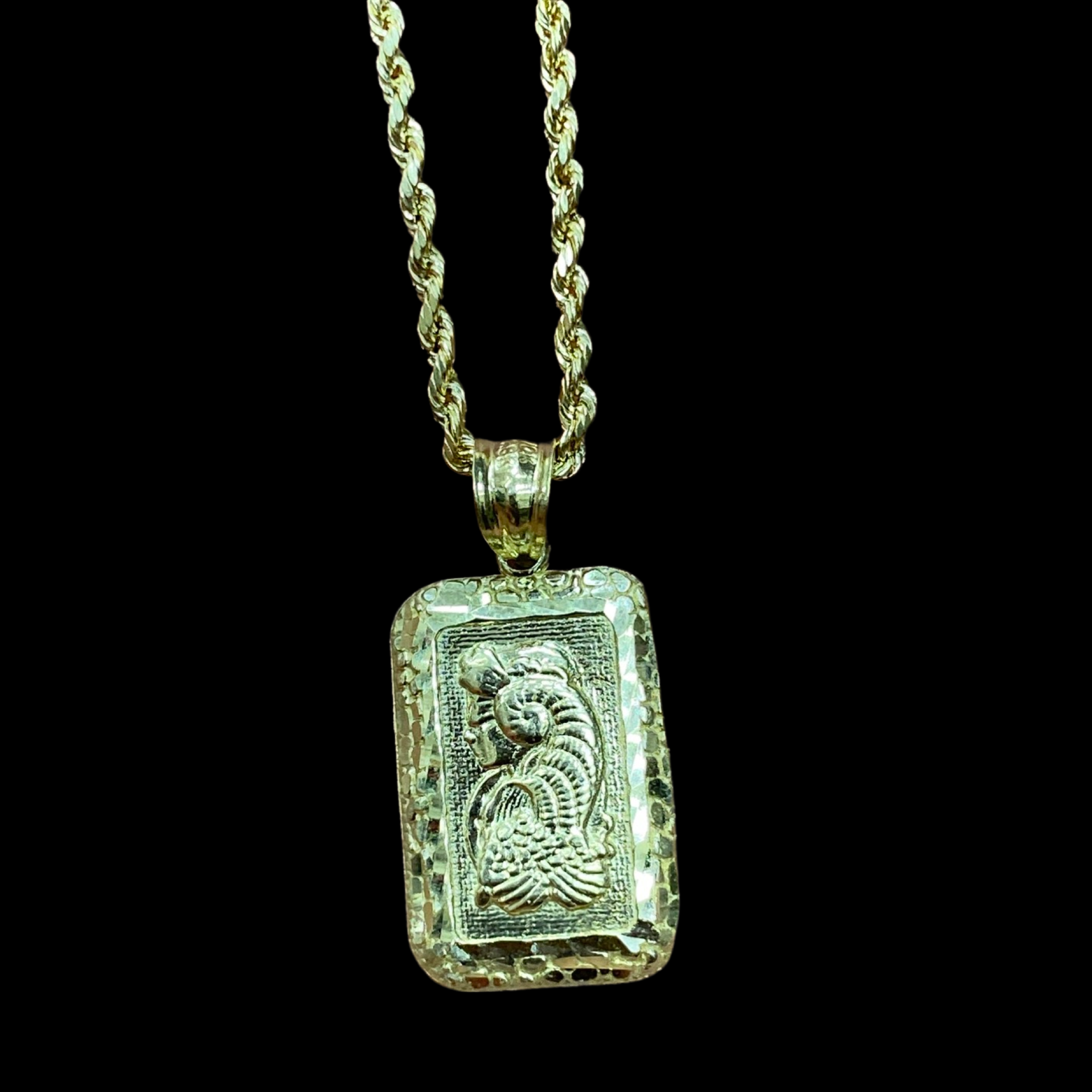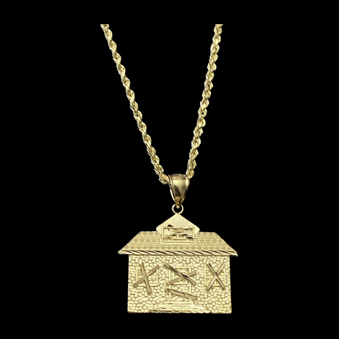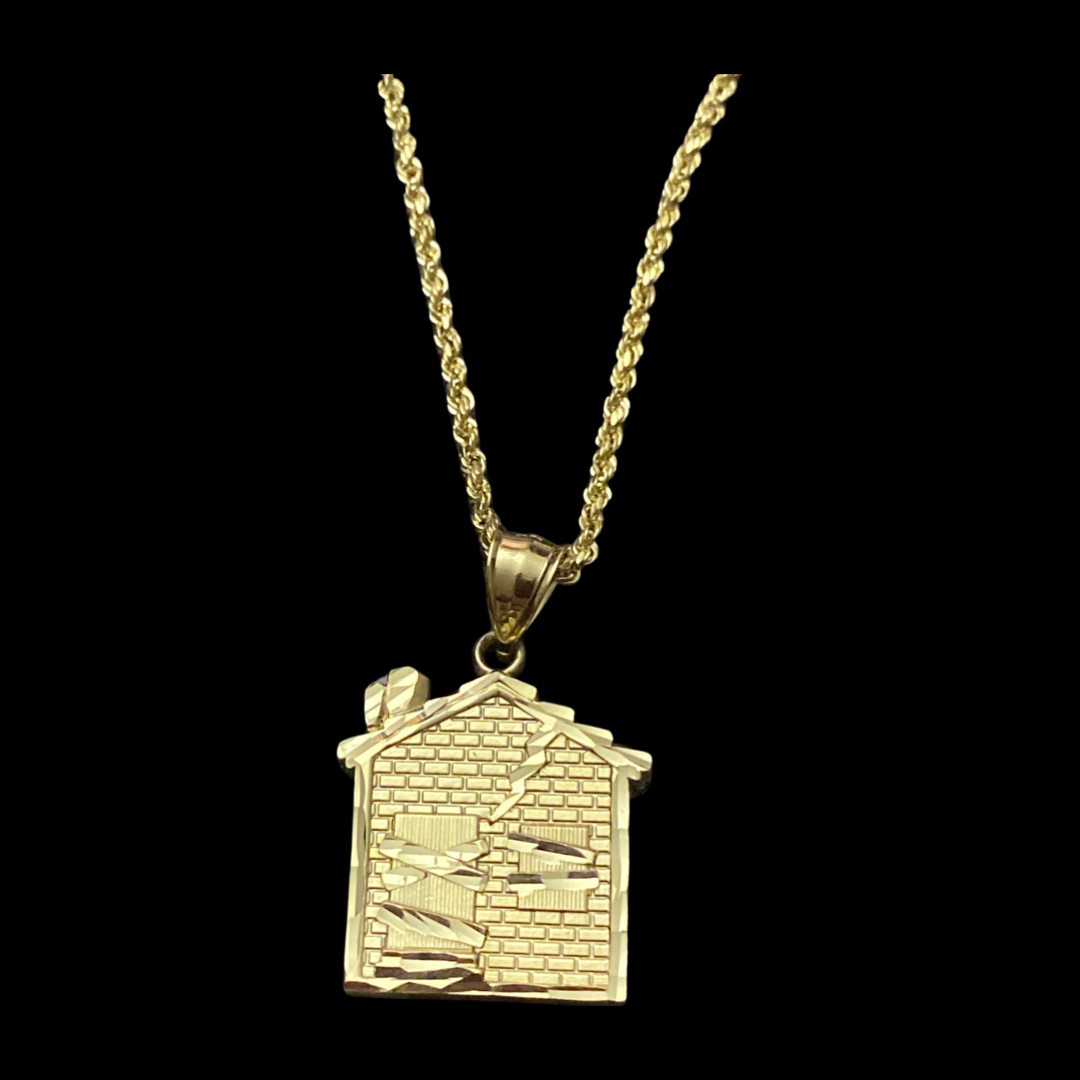 10KT Trap House Bando Pendant With 10KT 2MM Hollow Diamond Cut Rope Chain 16"-24"