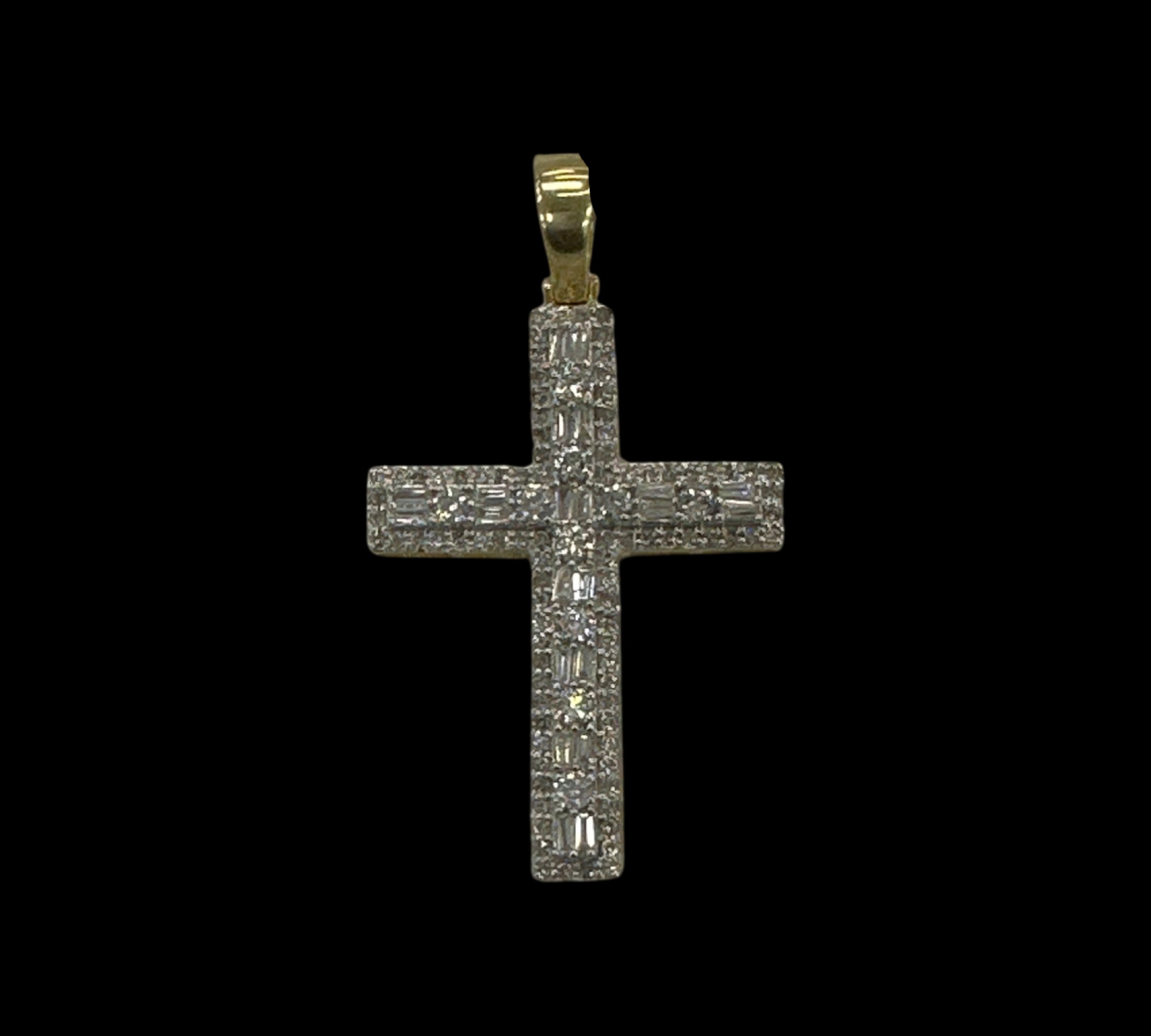 10KT Yellow Gold Diamond Cross, Brand New (With Tags) (1.07CT)
