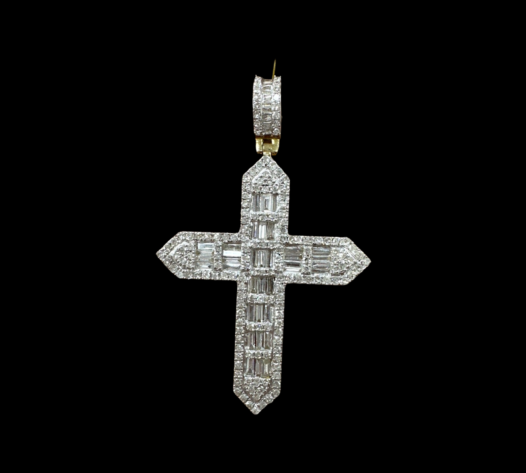 10KT Yellow Gold Diamond Cross, Brand New (With Tags) (1.54CT)