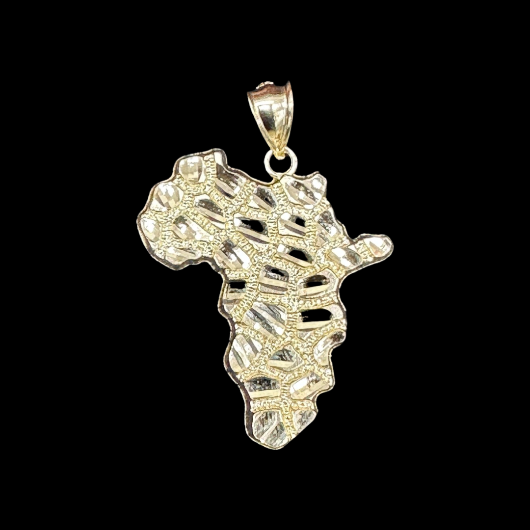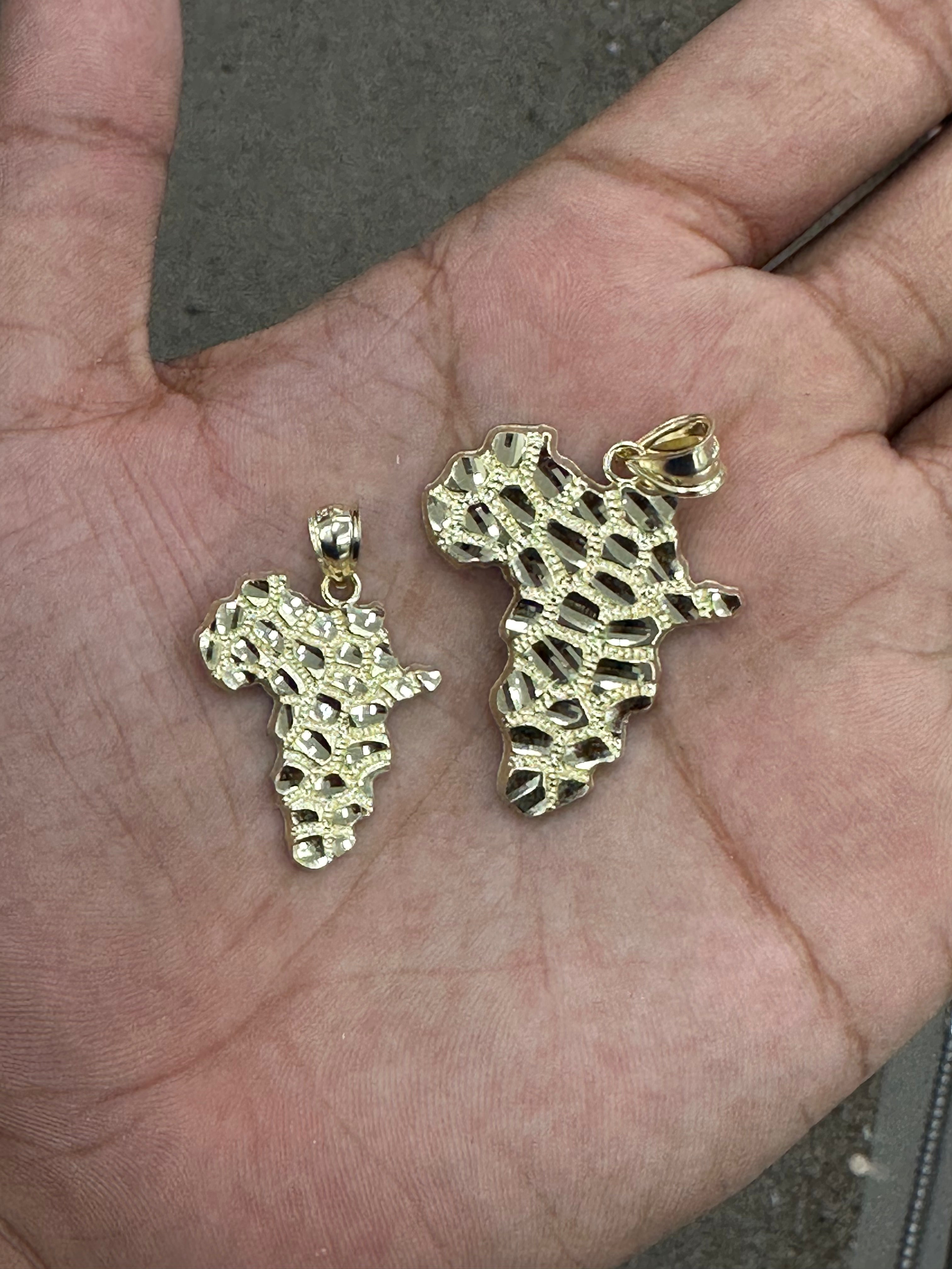 10KT Yellow Gold Diamond Cut Nugget Africa Pendant, Brand New (2 Sizes)