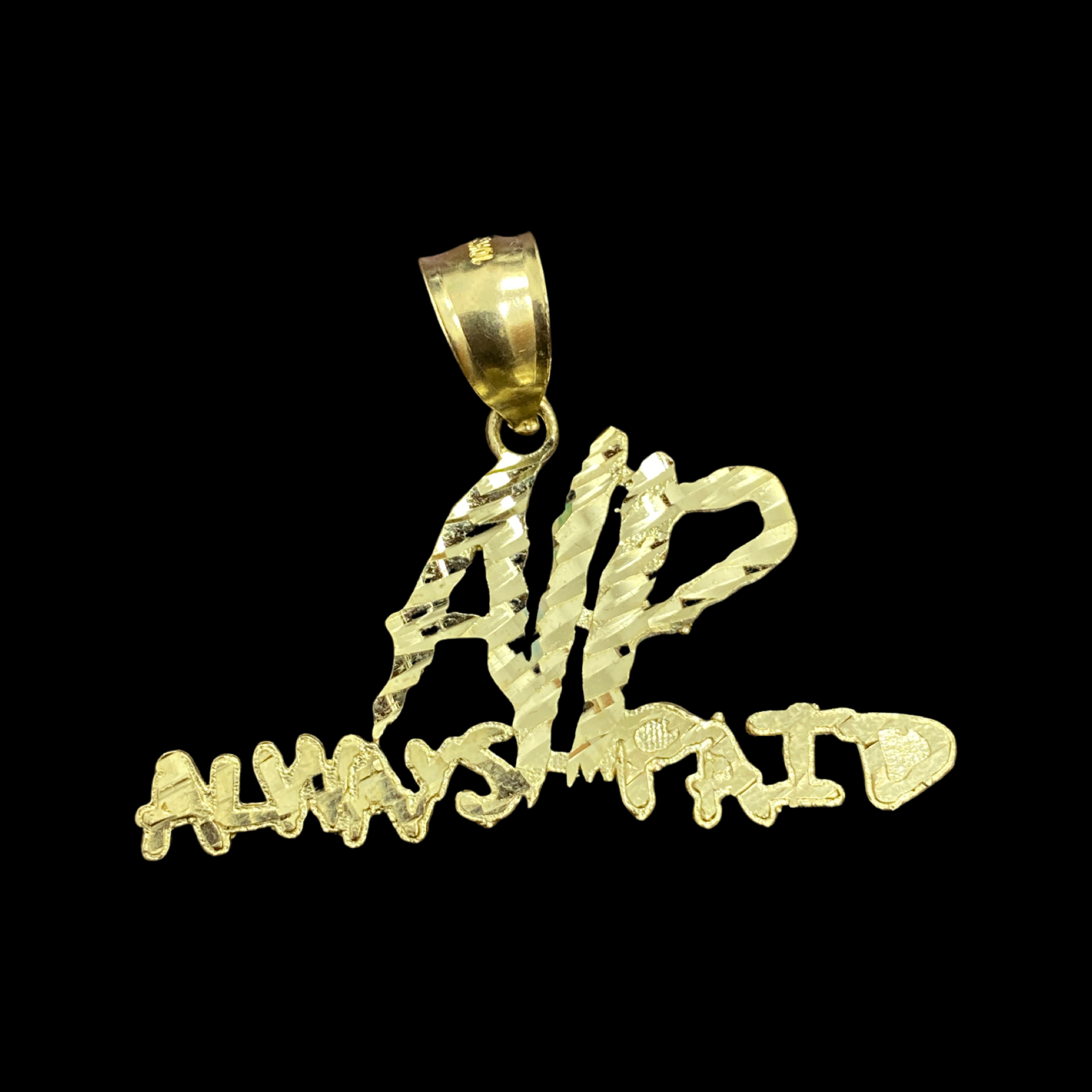 10KT Yellow Gold Diamond Cut Always Paid Pendant, Brand New