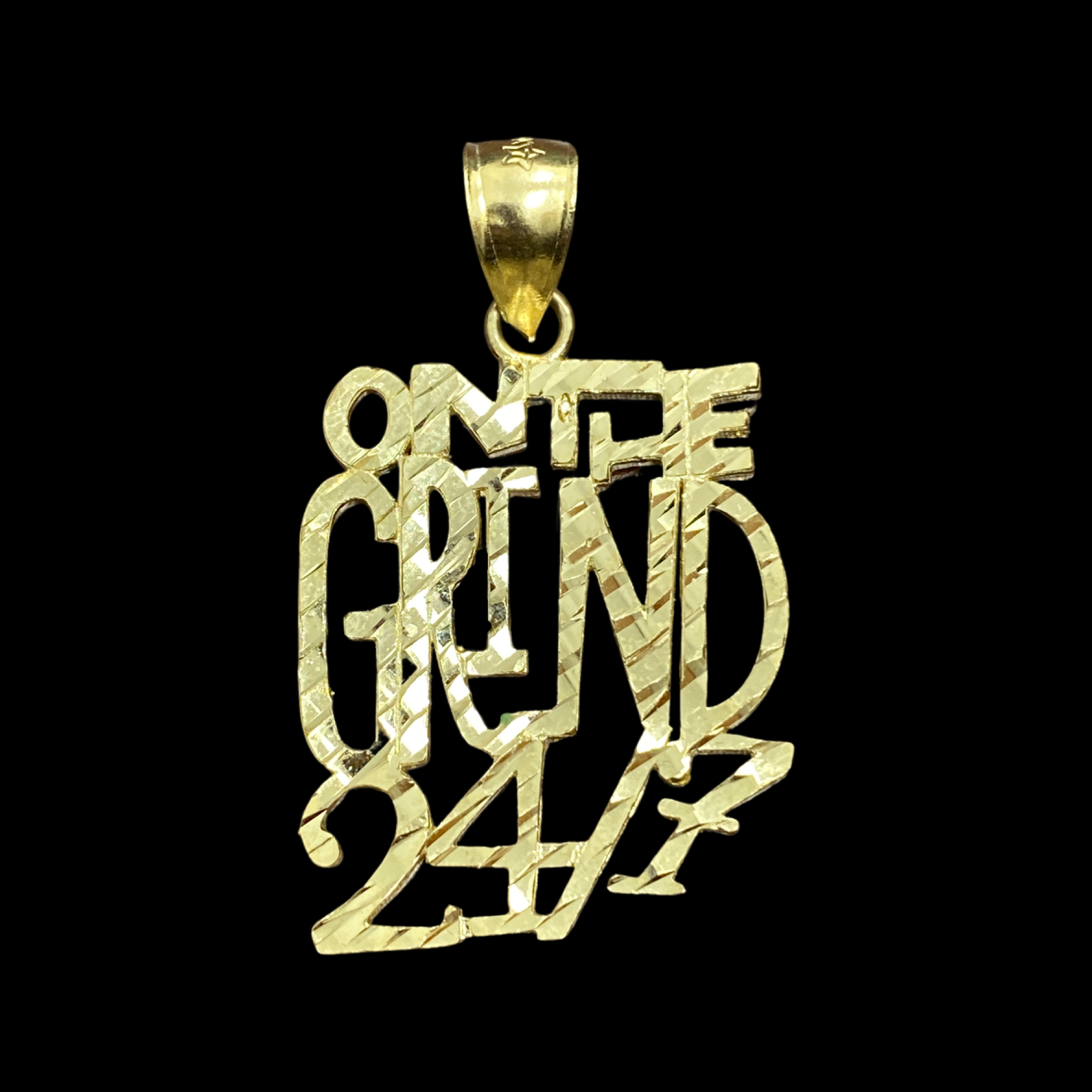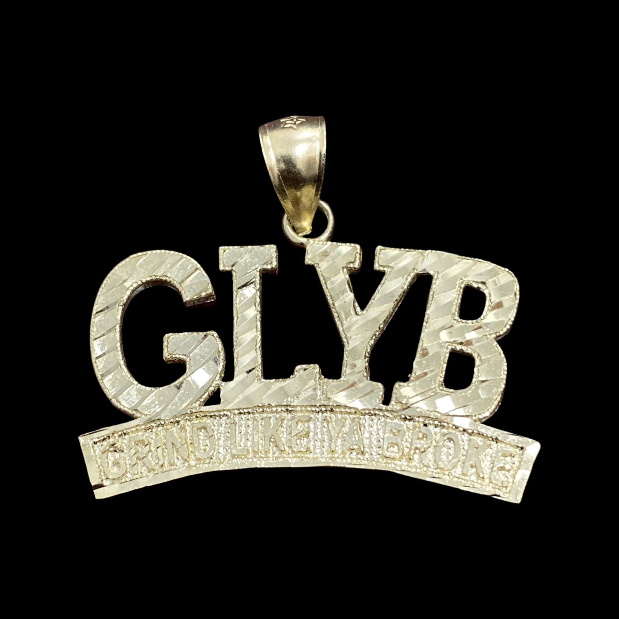 10KT Yellow Gold Diamond Cut G.L.Y.B. (Grind Like You Broke) Pendant, Brand New
