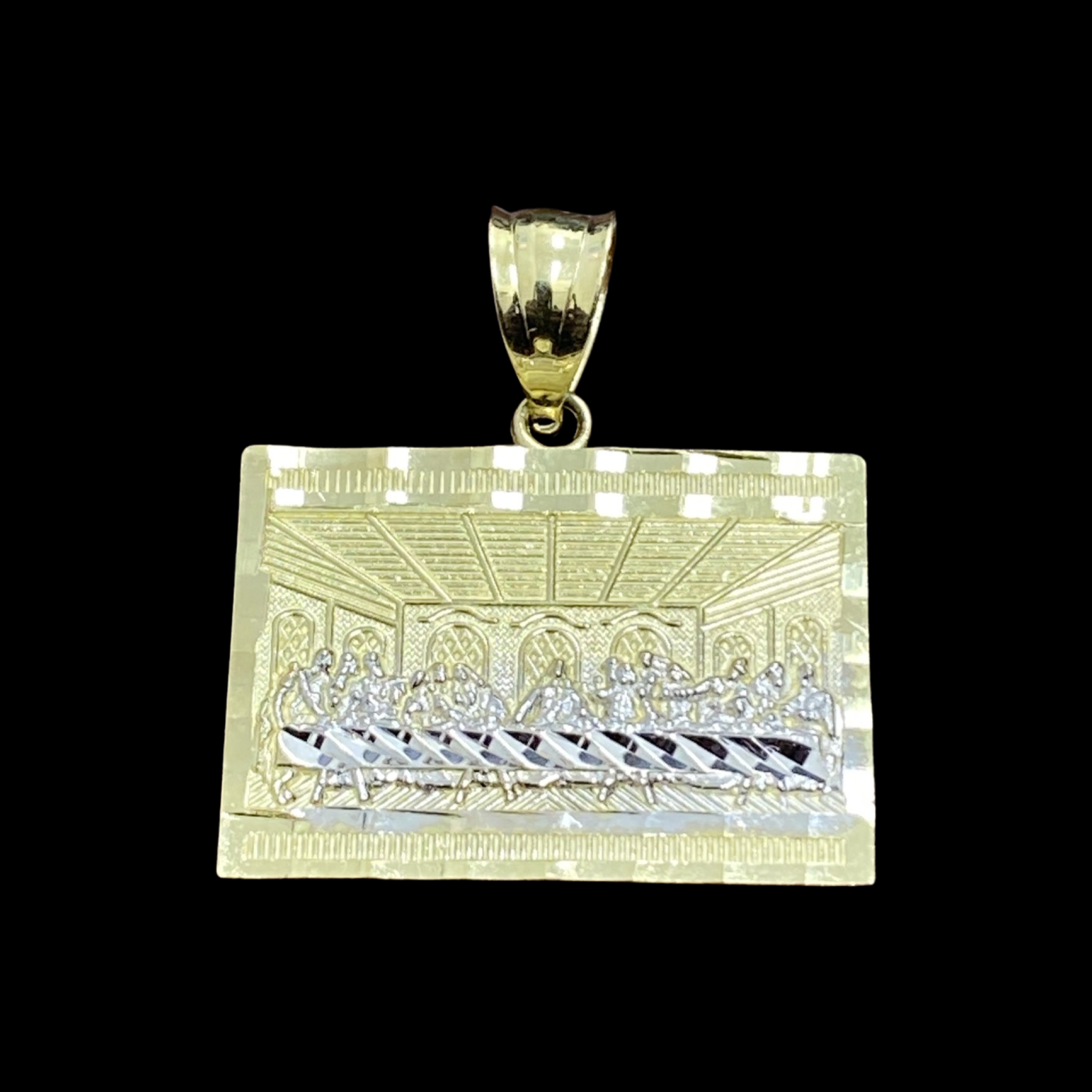 10KT Yellow Gold Diamond Cut Pave Last Supper Pendant, Brand New