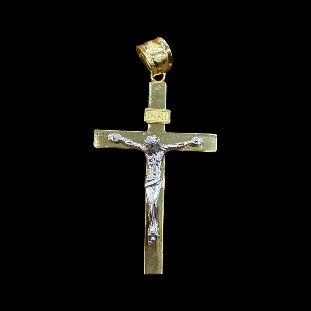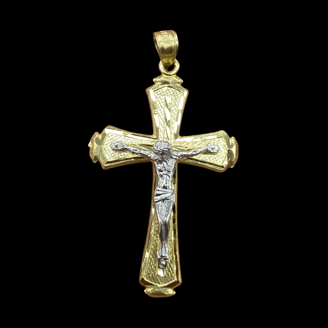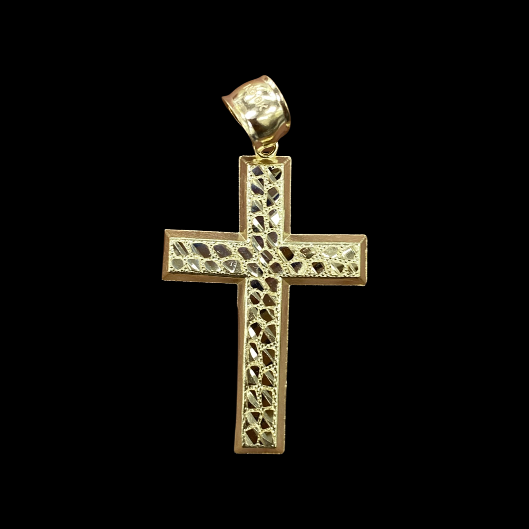10KT Yellow Gold Men's Nugget Cross Pendant, High Polish Diamond Cut, Brand New
