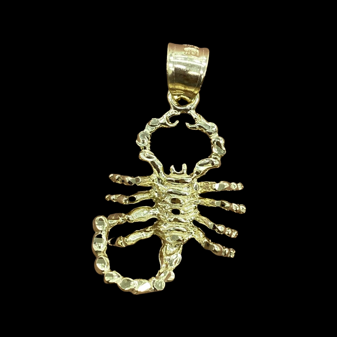 10KT Yellow Gold Men's Medium Scorpion Pendant, High Polish Diamond Cut, Brand New