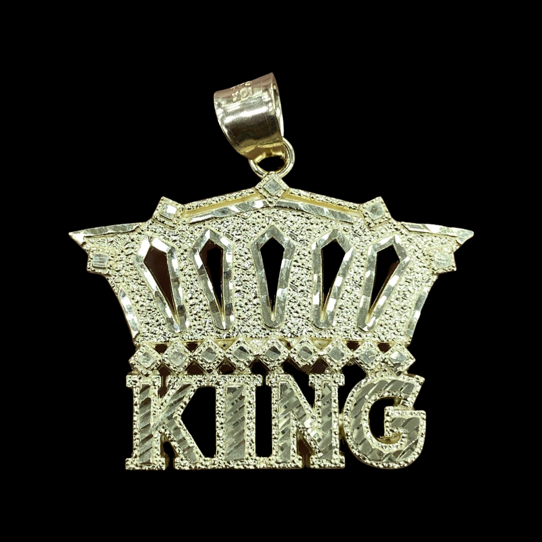 10KT Yellow Gold Men's King Crown Pendant, High Polish Diamond Cut, Brand New
