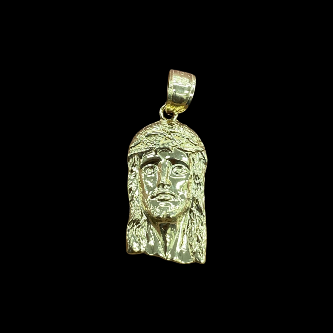 10KT Yellow Gold Men's Small Jesus Head Pendant, High Polish Diamond Cut, Brand New