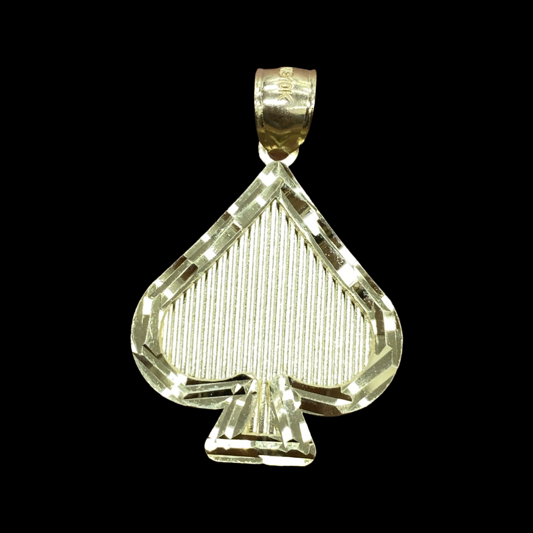 10KT Yellow Gold Men's Spade Pendant, High Polish Diamond Cut, Brand New