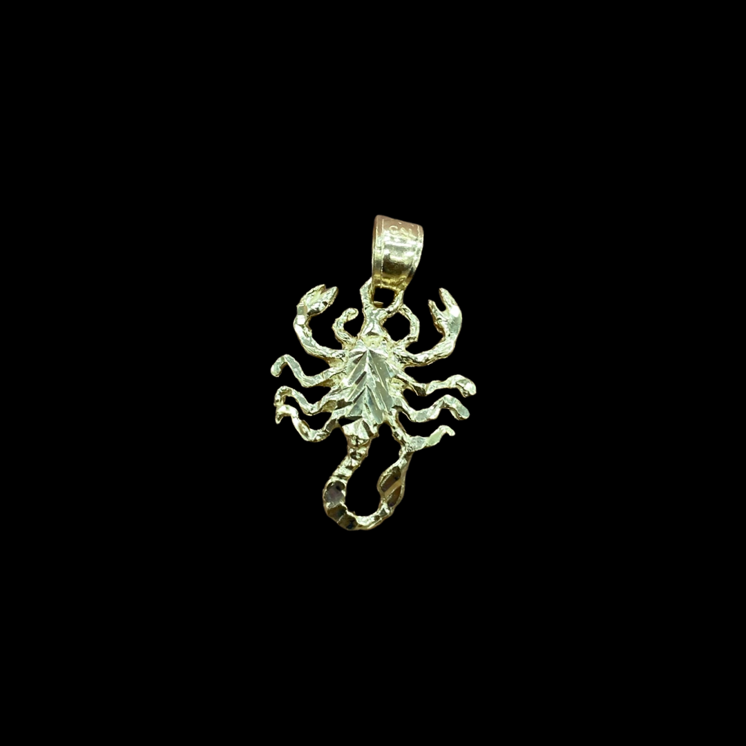 10KT Yellow Gold Men's Small Scorpion Pendant, High Polish Diamond Cut, Brand New