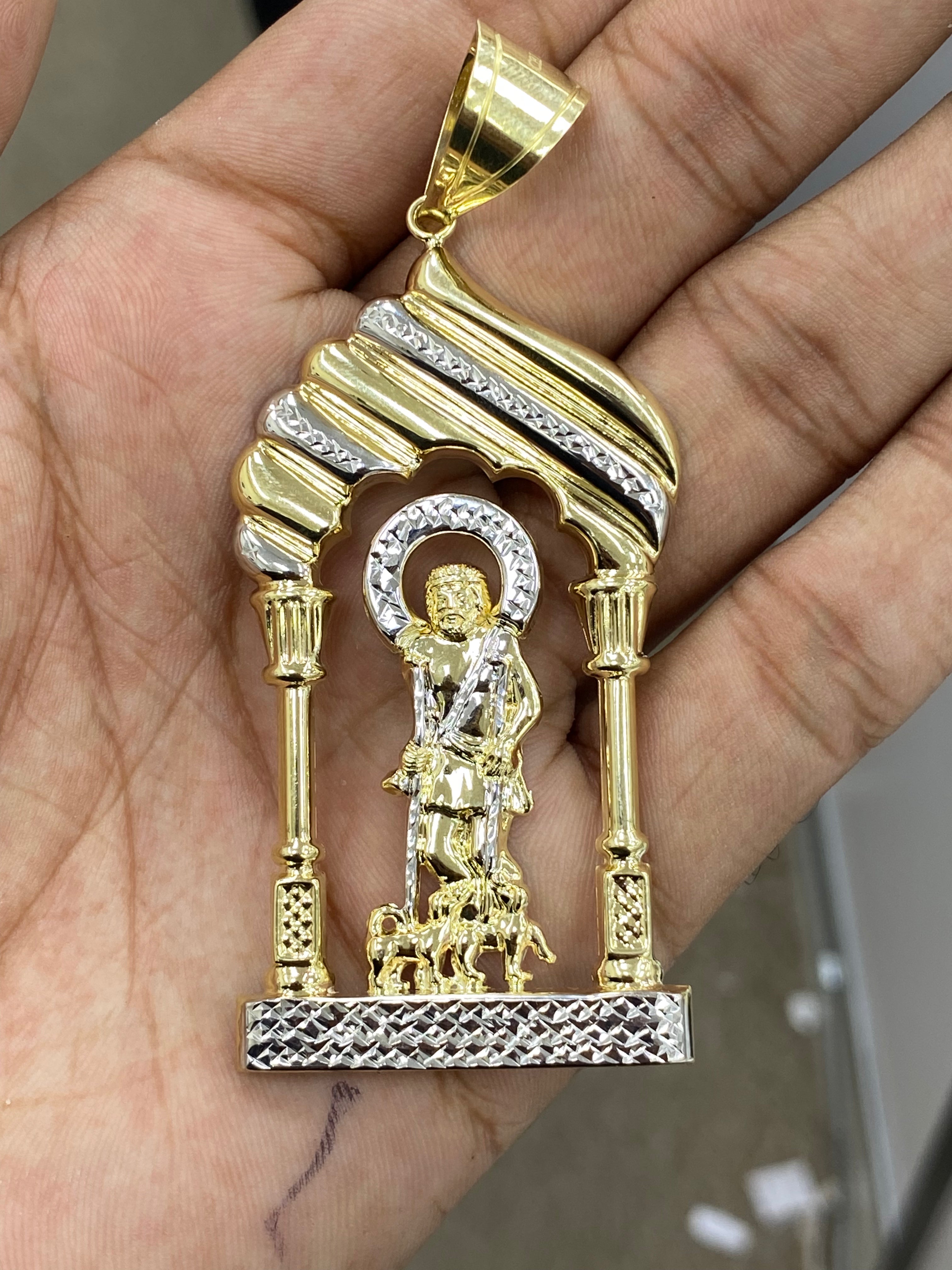 10KT 2-Tone Pave Saint Lazarus Pendant
