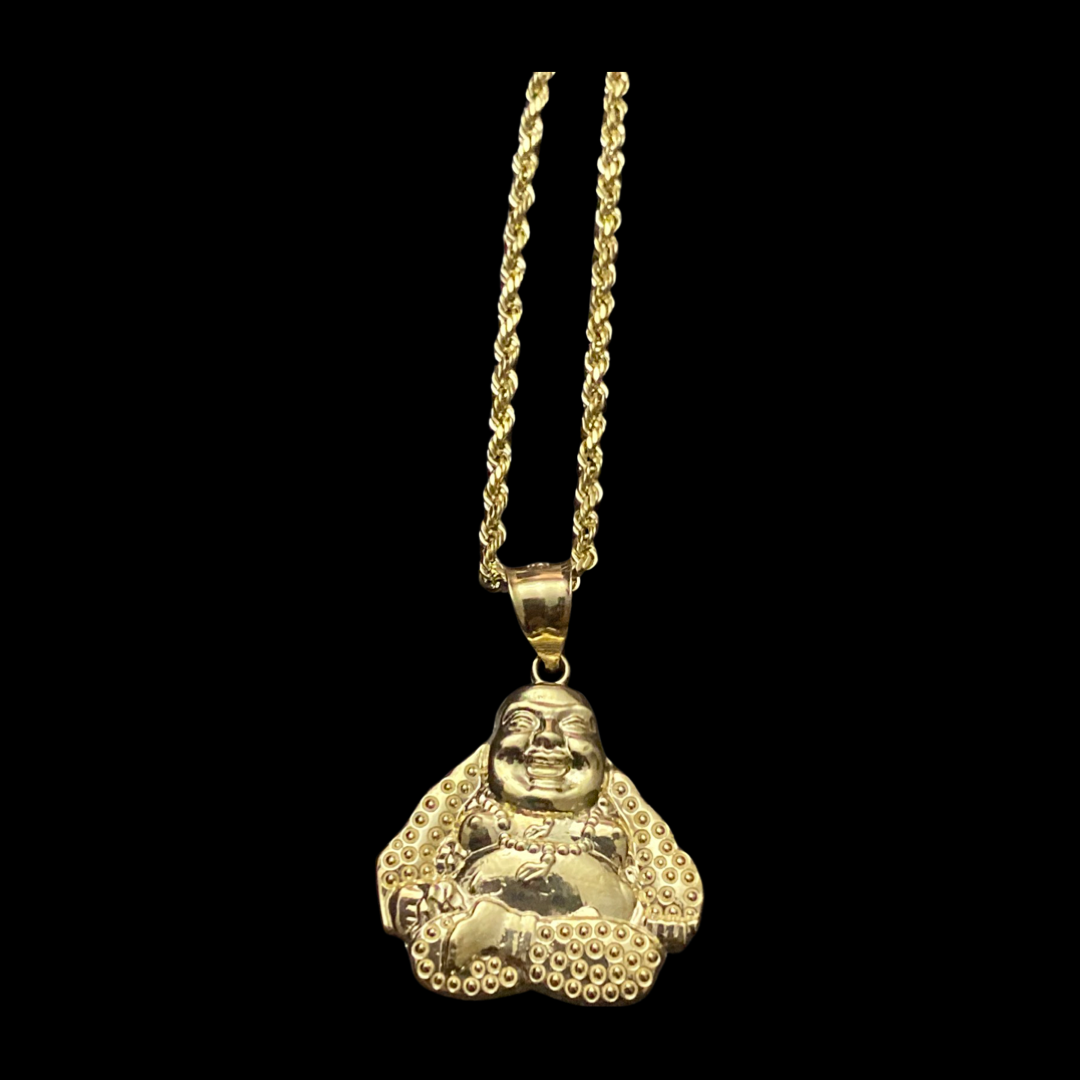 10KT Buddha Pendant With 10KT 2MM Hollow Diamond Cut Rope Chain 16"-24"
