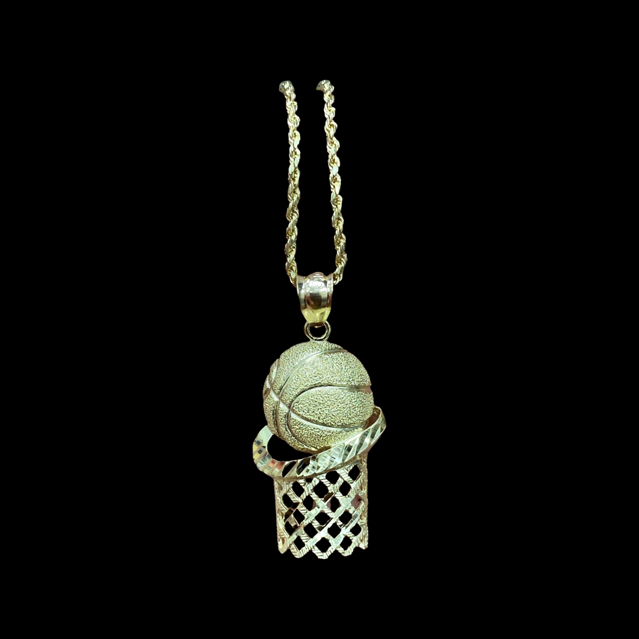10KT Basketball pendant with solid rope and Singapore chain
