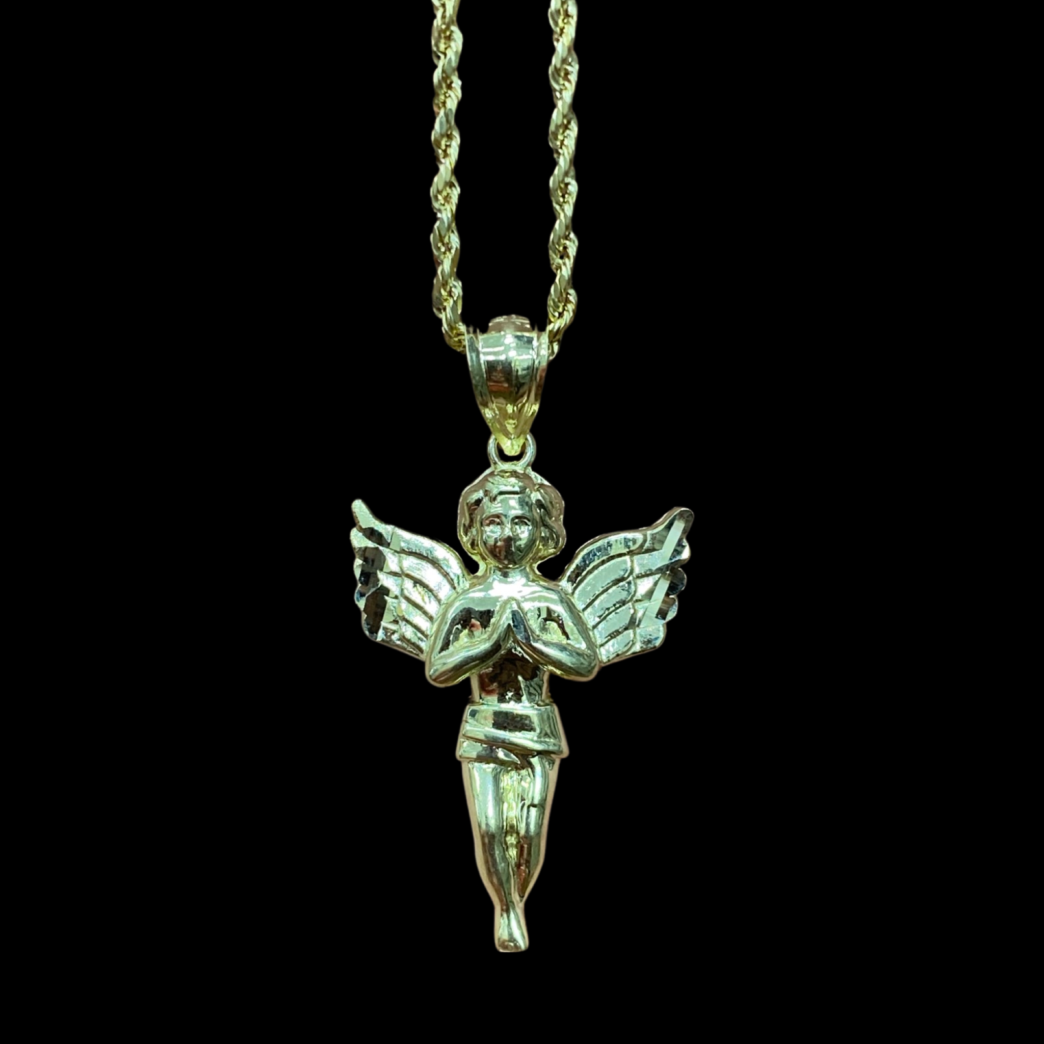 10KT Angel Pendant With 10KT 2MM Hollow Diamond Cut Rope Chain 16"-24"