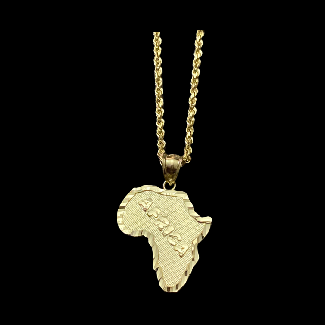 10KT Africa Pendant With 10KT 2MM Hollow Diamond Cut Rope Chain 16"-24"